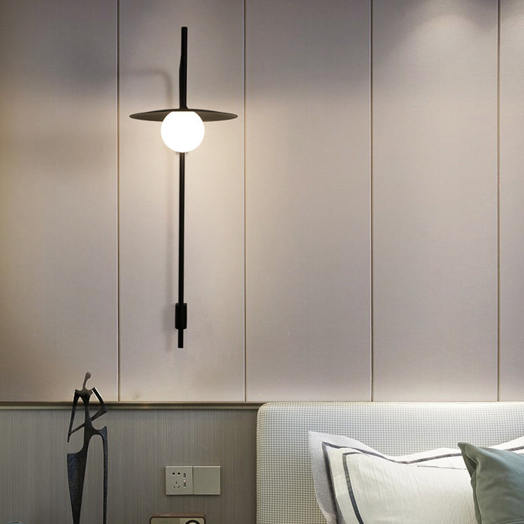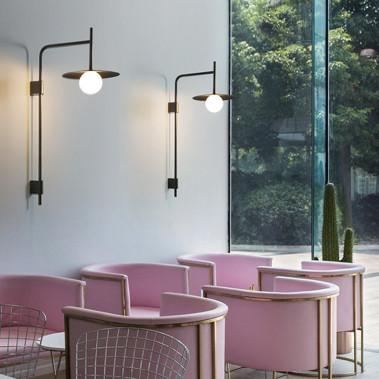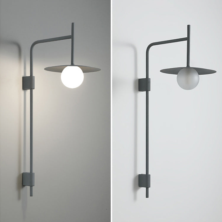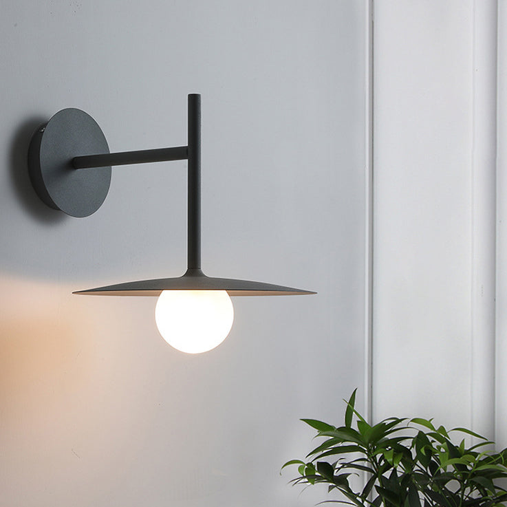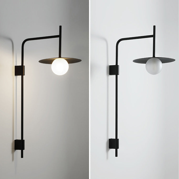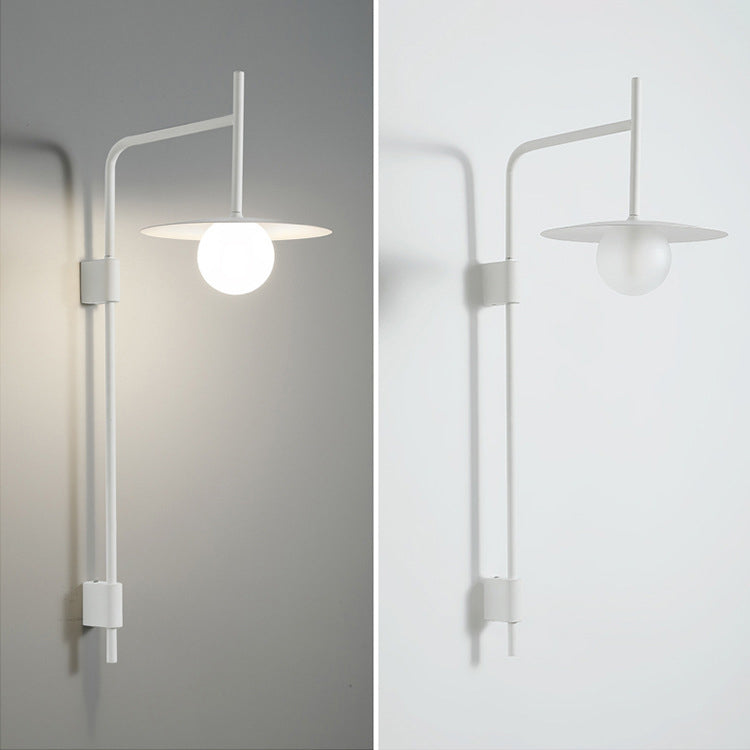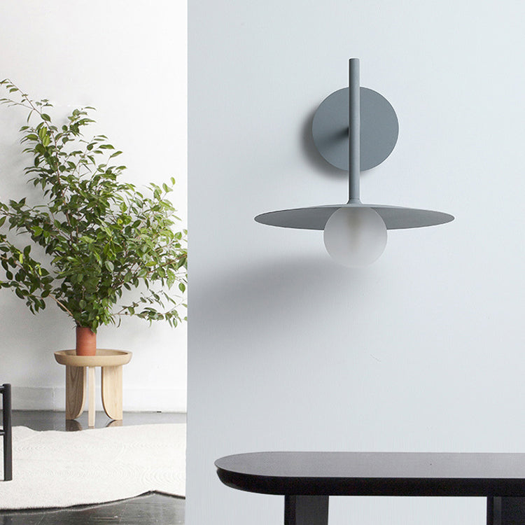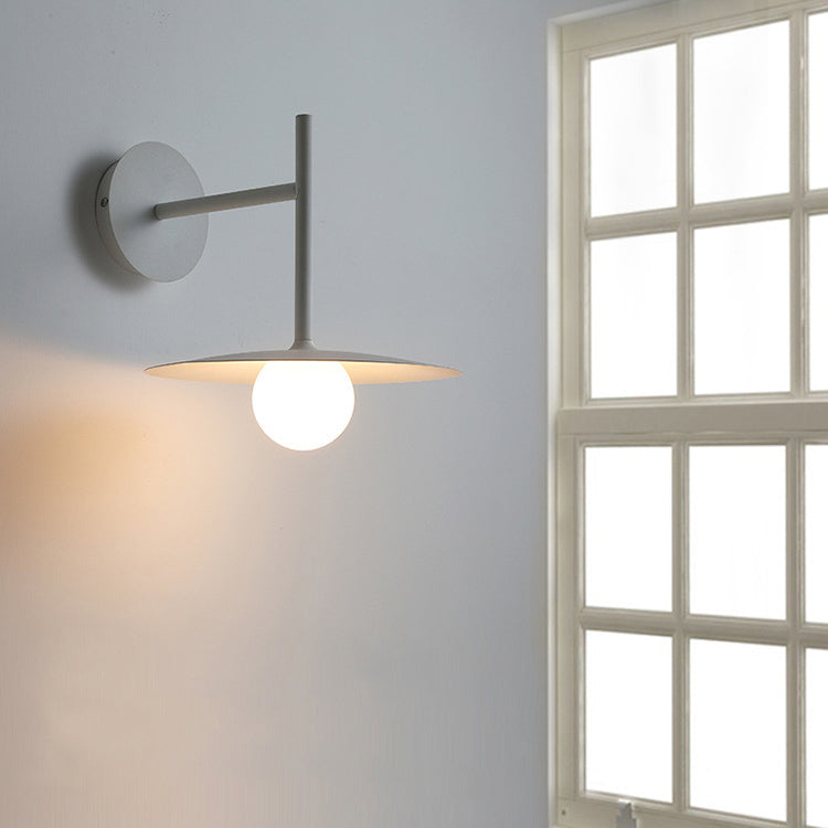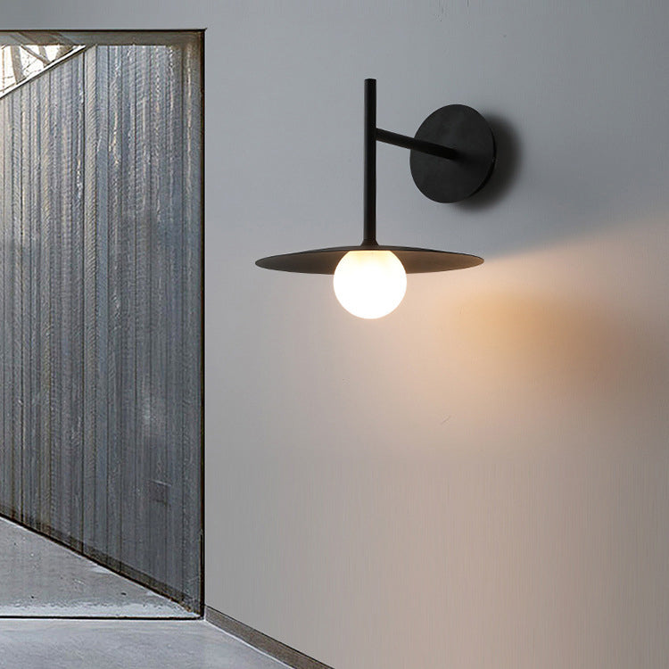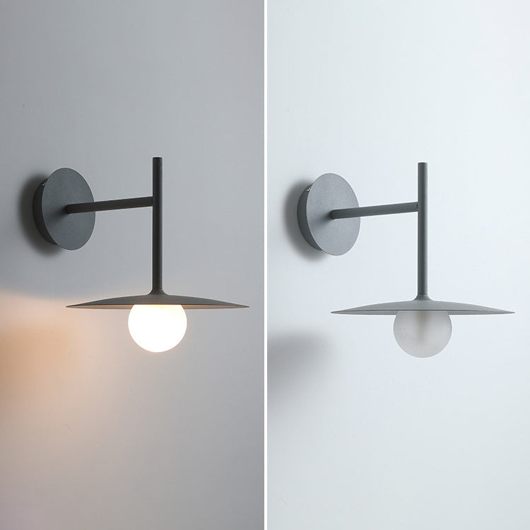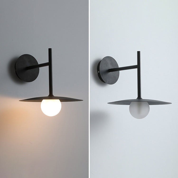 مصباح حائطي عصري بسيط مصنوع من الحديد والزجاج، مزود بلوحة دائرية، ومصباح واحد لغرفة المعيشة