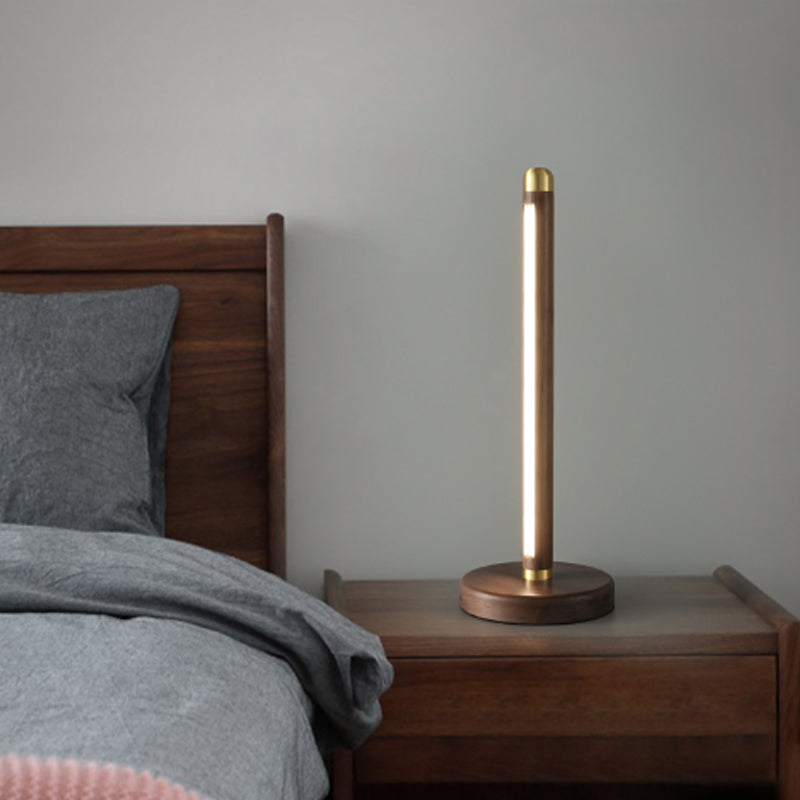 Modern Minimalist Linear Wood Copper Acrylic LED Table Lamp For Bedroom