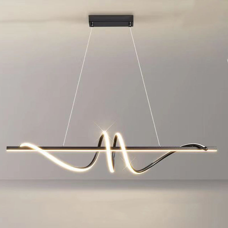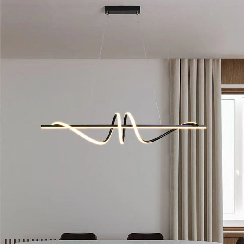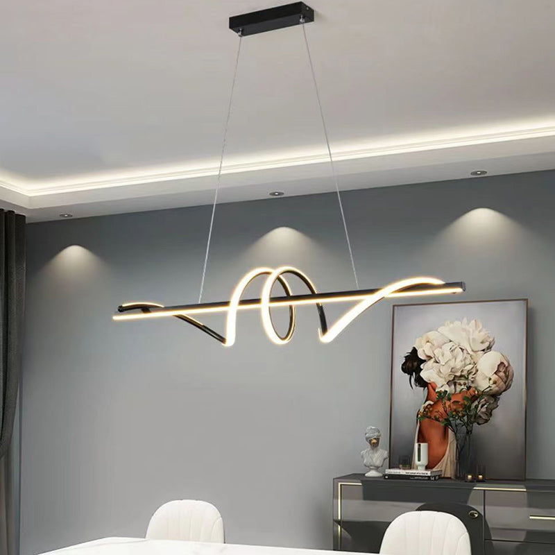 ثريات LED من الأكريليك الحديدي ذات الخطوط المنحنية الطويلة ذات الطراز الحديث البسيط لغرفة الطعام