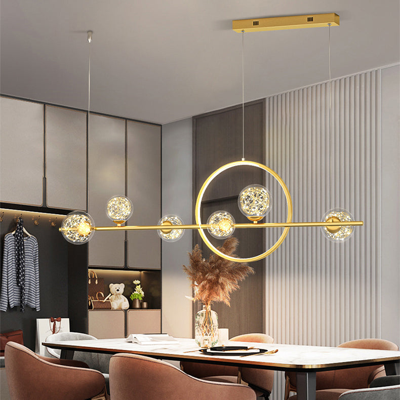 ثريا جزيرة LED دائرية طويلة من السيليكون والزجاج بتصميم عصري بسيط لغرفة الطعام