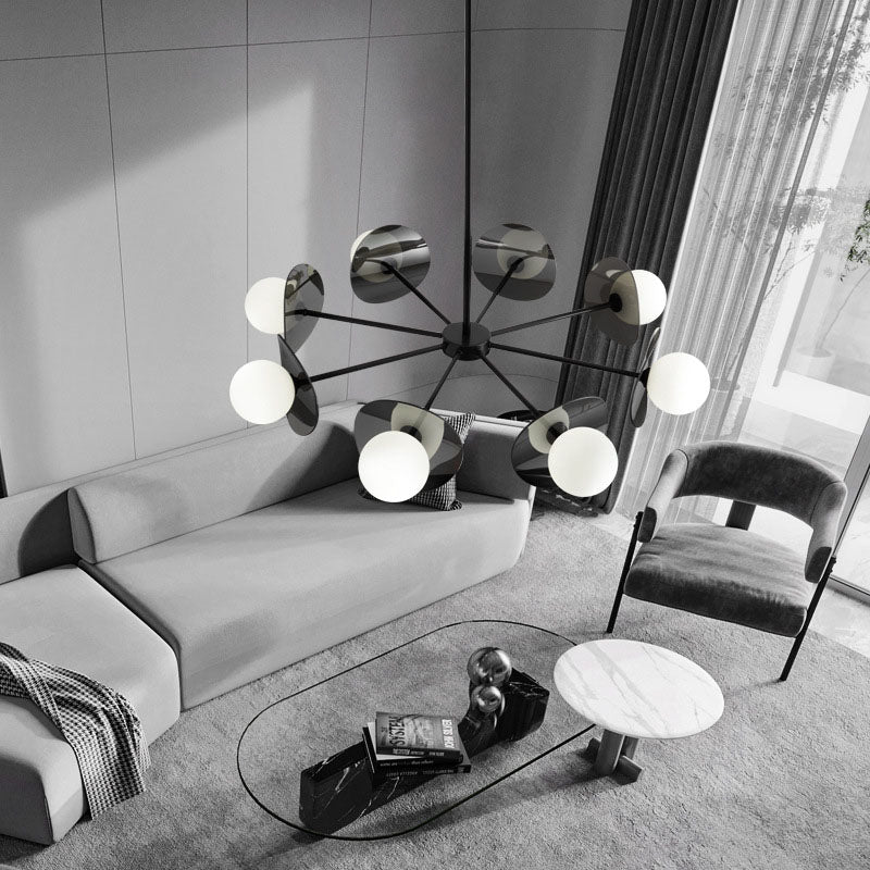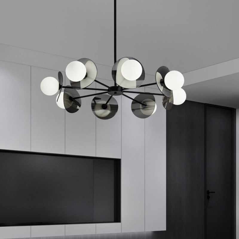 ثريا عصرية بسيطة من النحاس والزجاج بثلاثة أو خمسة أو ثمانية مصابيح لغرفة المعيشة