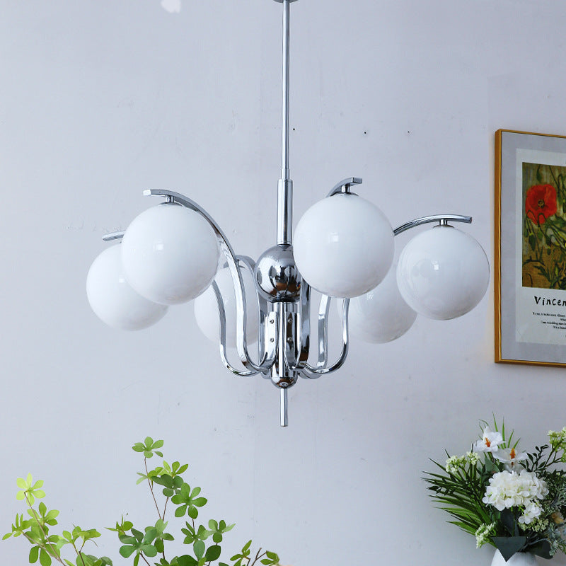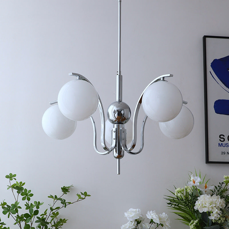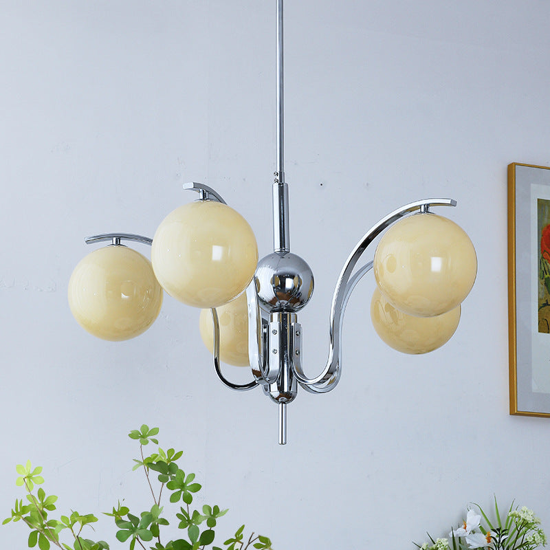 ثريا زجاجية حديدية بيضاوية الشكل بتصميم عصري بسيط، بثلاثة مصابيح ونصف لغرفة المعيشة