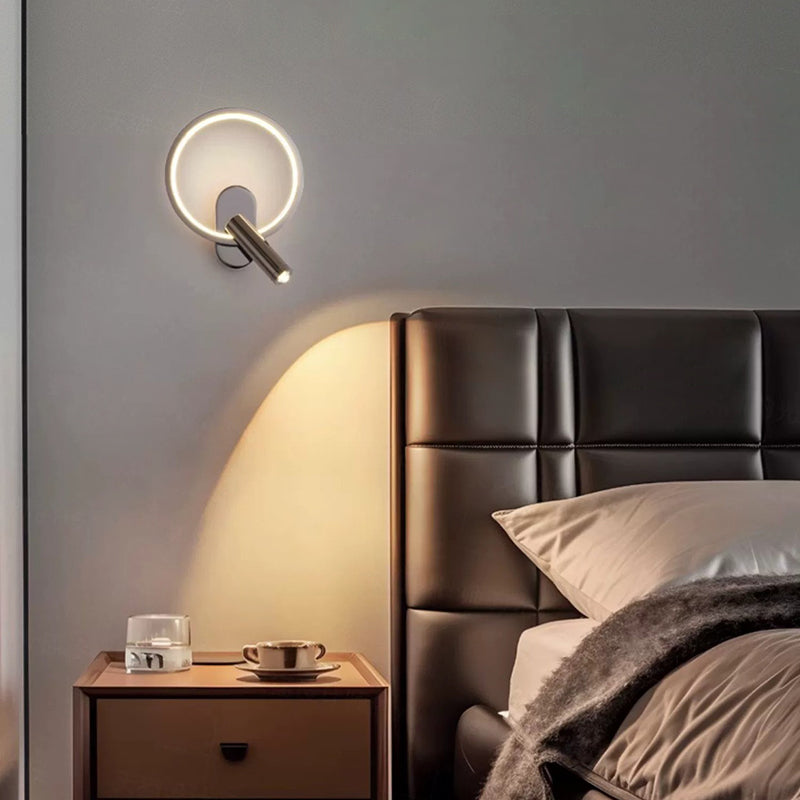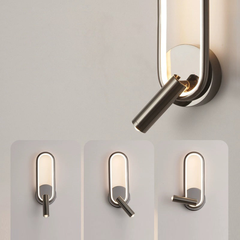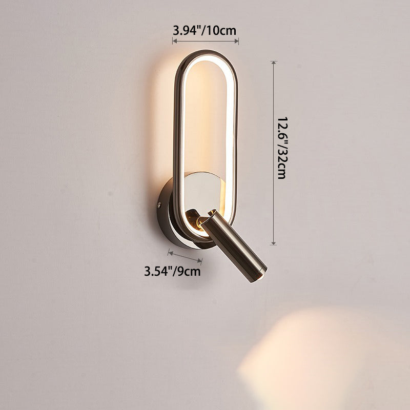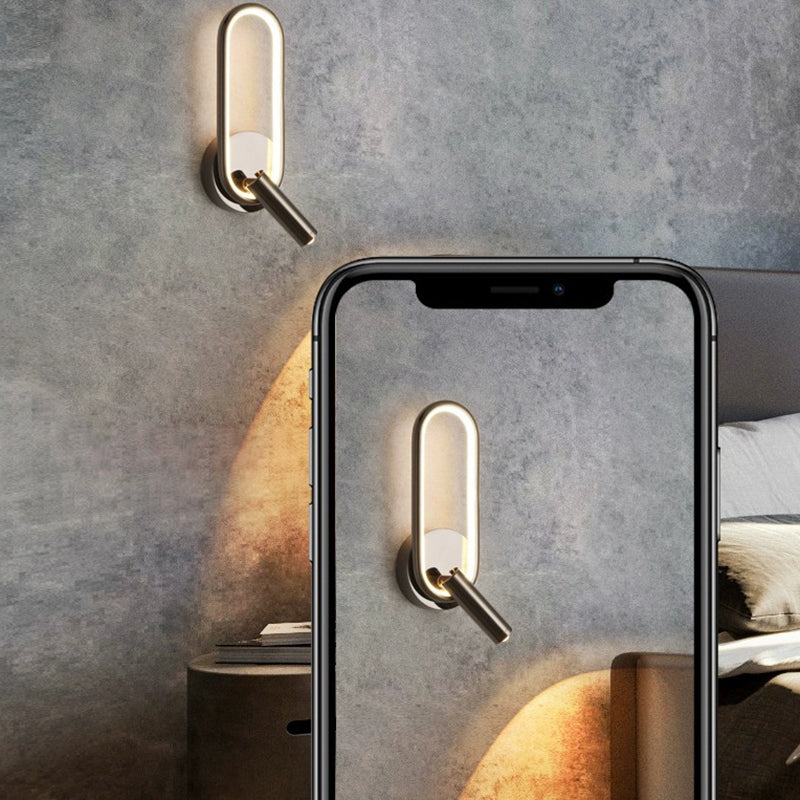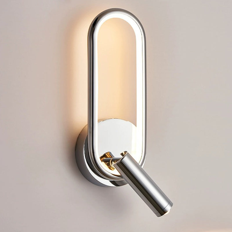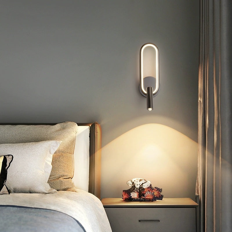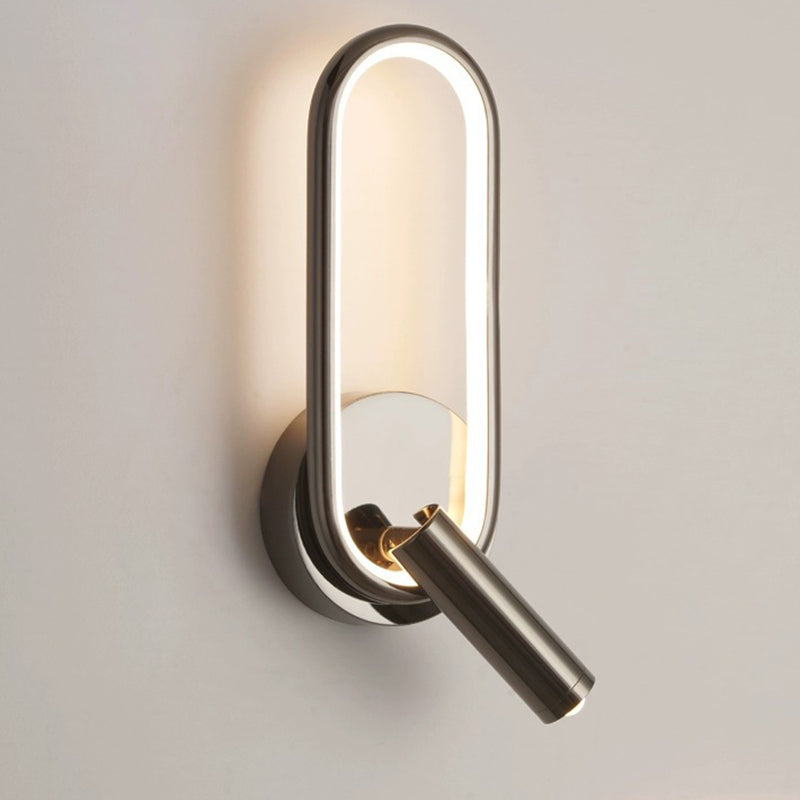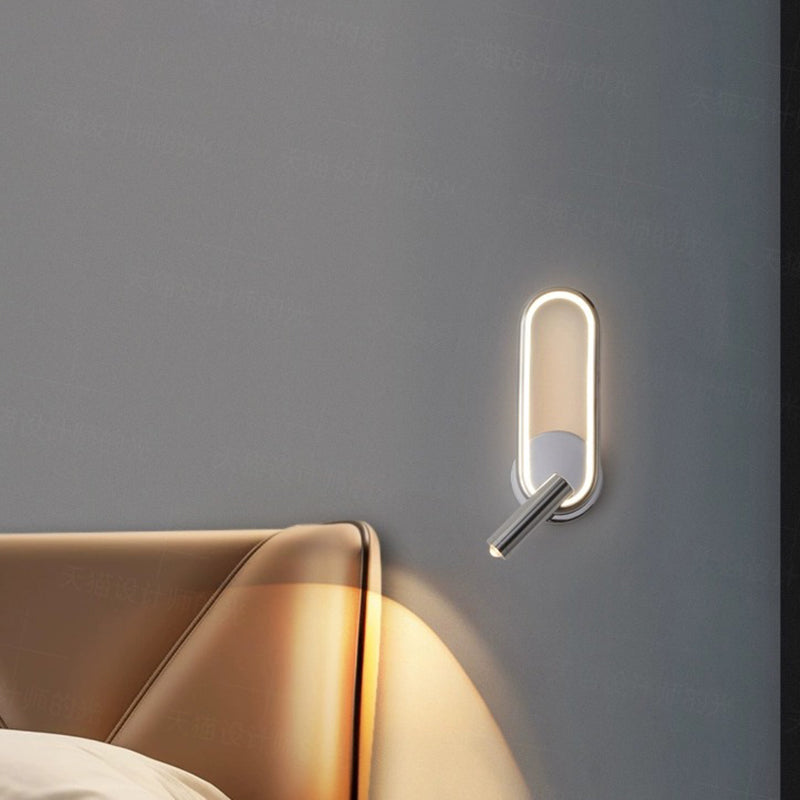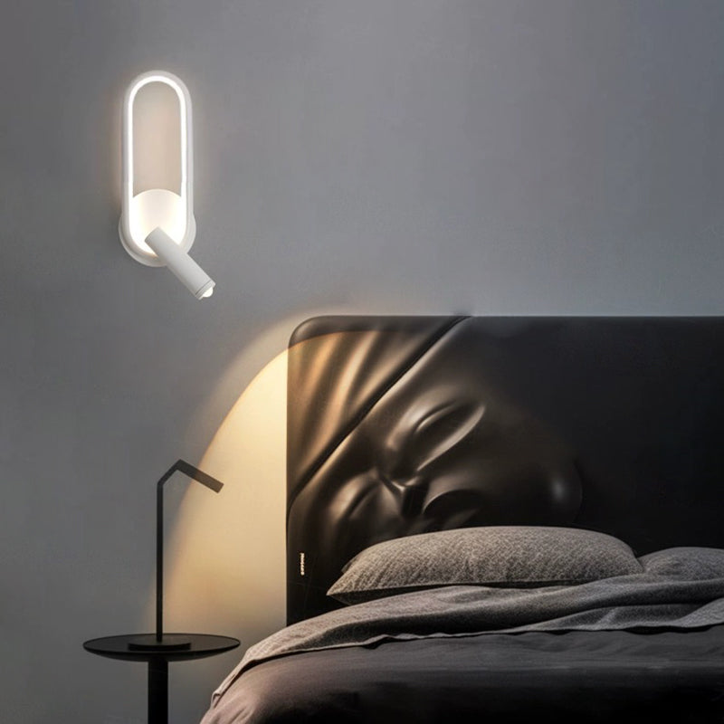 مصباح حائط LED دائري بيضاوي الشكل عصري بسيط مصنوع من الحديد والألومنيوم والزجاج لغرفة النوم