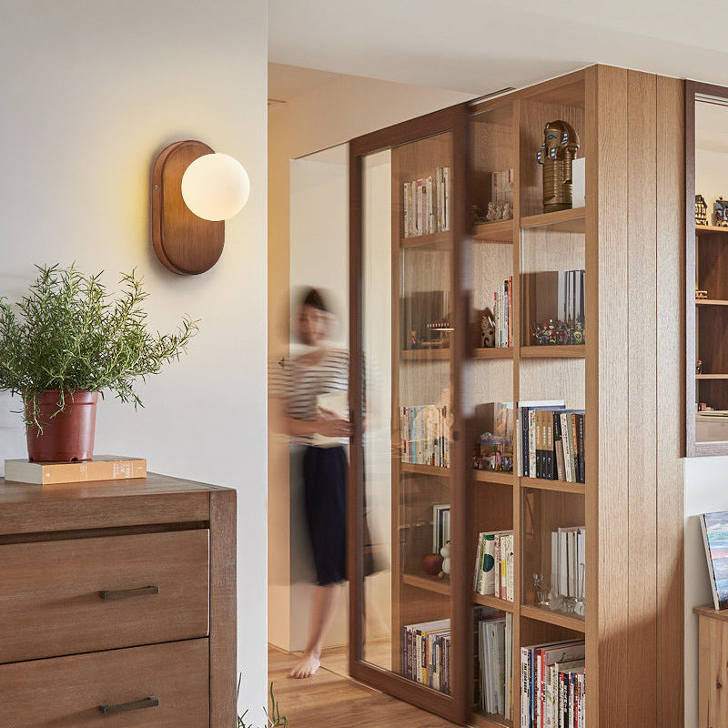 مصباح حائطي بيضاوي خشبي زجاجي حديث بسيط لغرفة المعيشة