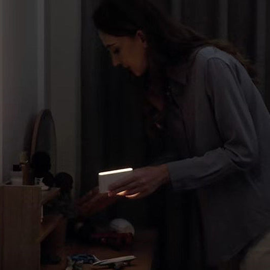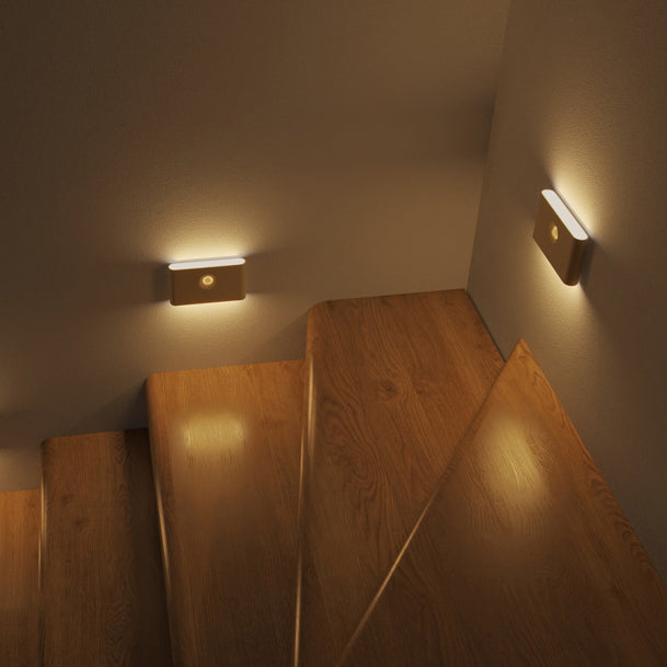 مصباح حائط LED مغناطيسي مستطيل الشكل قابل لإعادة الشحن من ABS بتصميم عصري بسيط مزود بمستشعر بشري، مصباح ليلي للممر