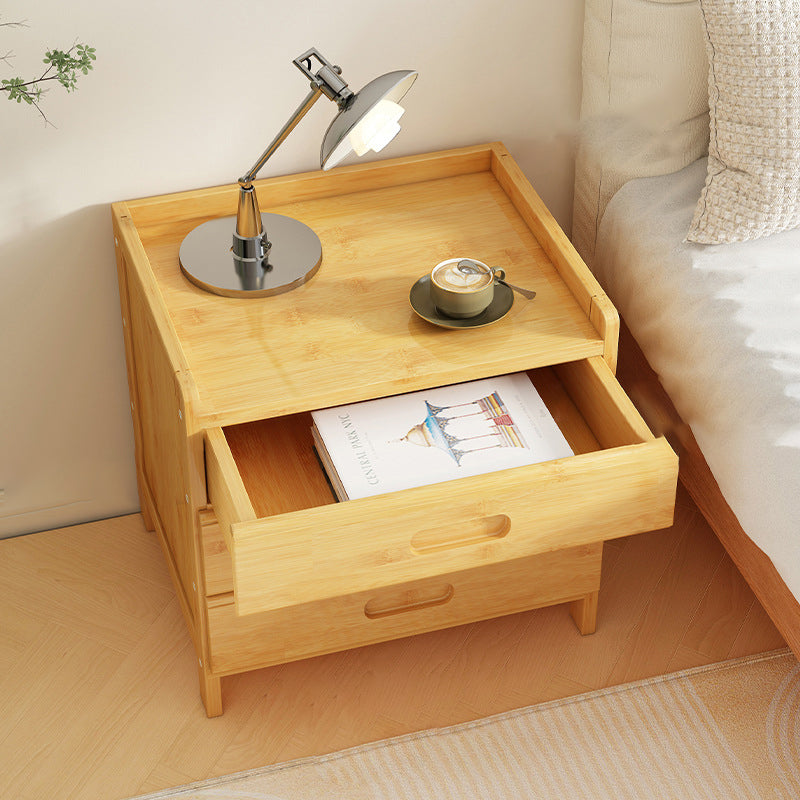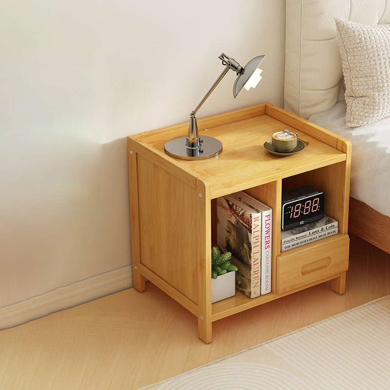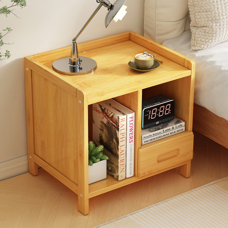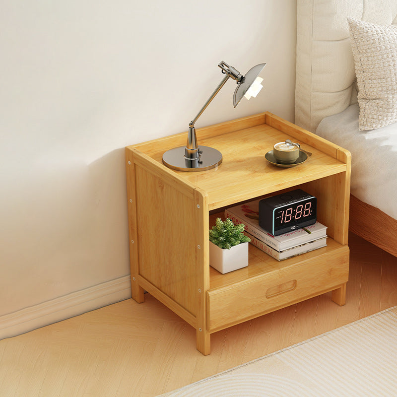 Modern Minimalist Rectangular Bamboo Density Panel Nightstand 1/3 Drawer For Bedroom