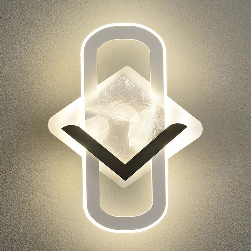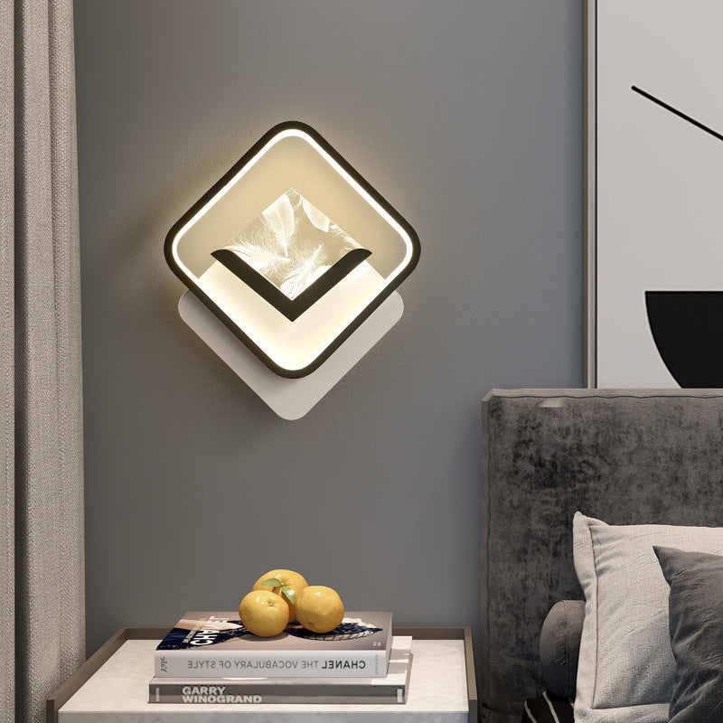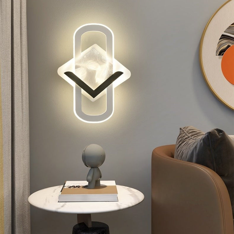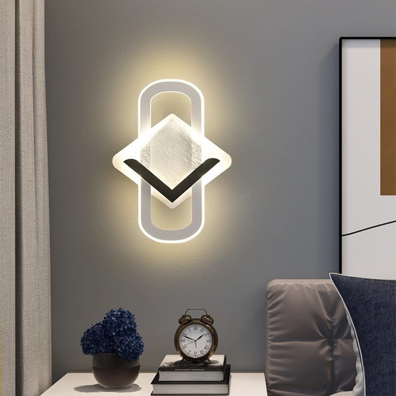 مصباح حائط LED من الأكريليك البلاستيكي المصنوع من الحديد والبلاستيك على شكل معين بيضاوي بتصميم عصري بسيط لغرفة النوم