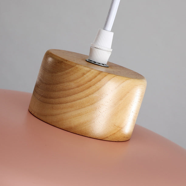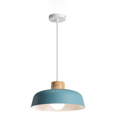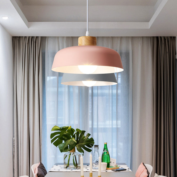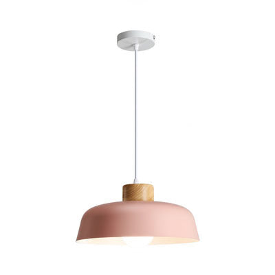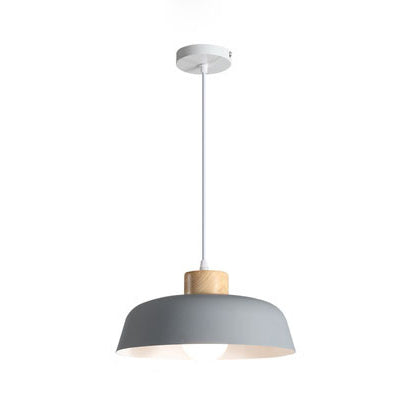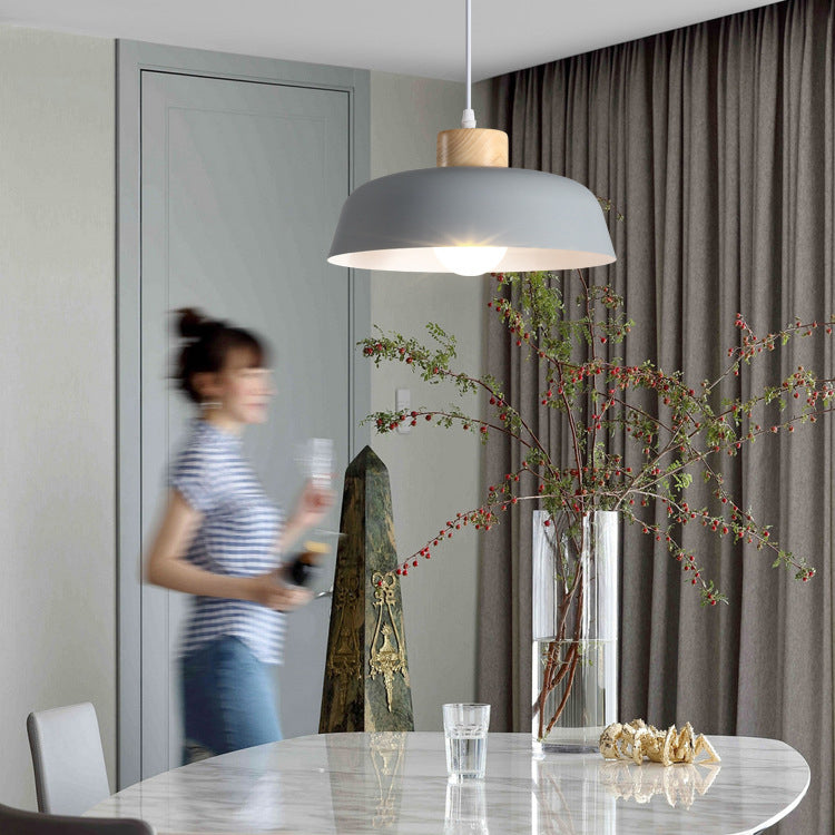 مصباح معلق خشبي دائري عصري بسيط من الألومنيوم مزود بمصباح واحد لغرفة الطعام