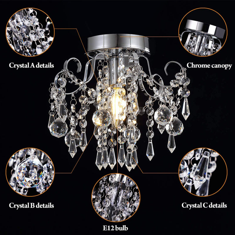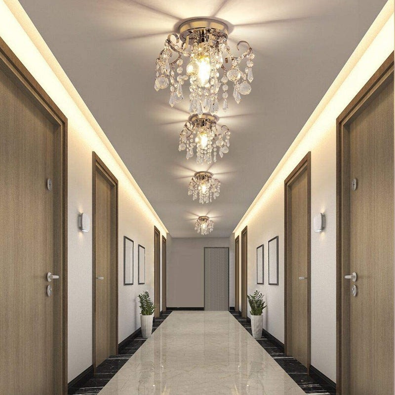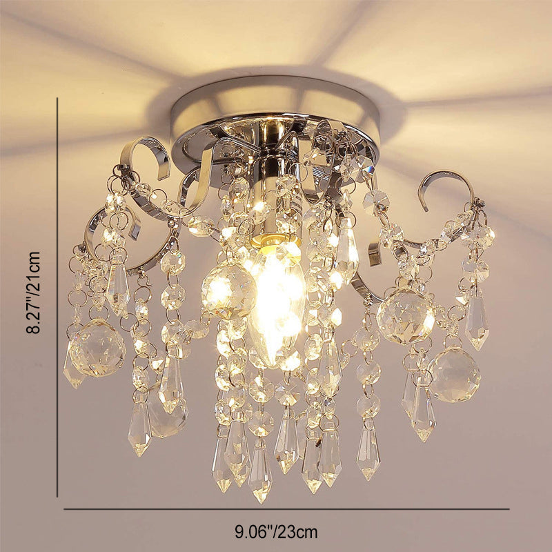 مصباح سقف دائري عصري بسيط من الحديد الكريستالي، مزود بمصباح واحد، مثبت بشكل شبه مسطح، لغرفة المعيشة