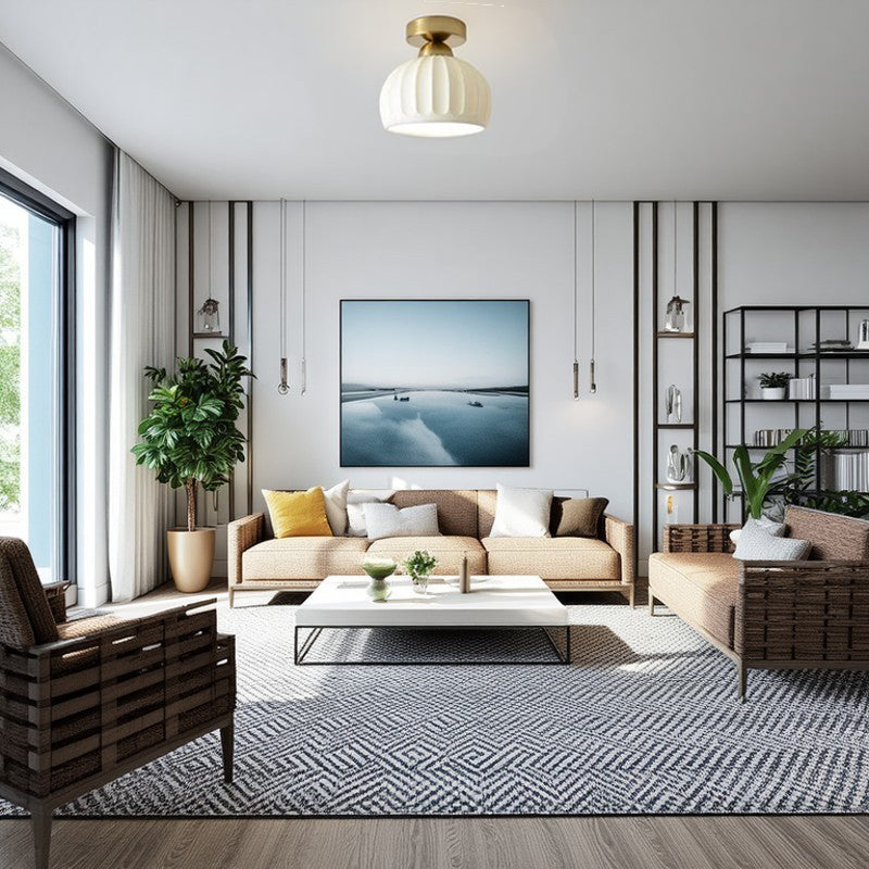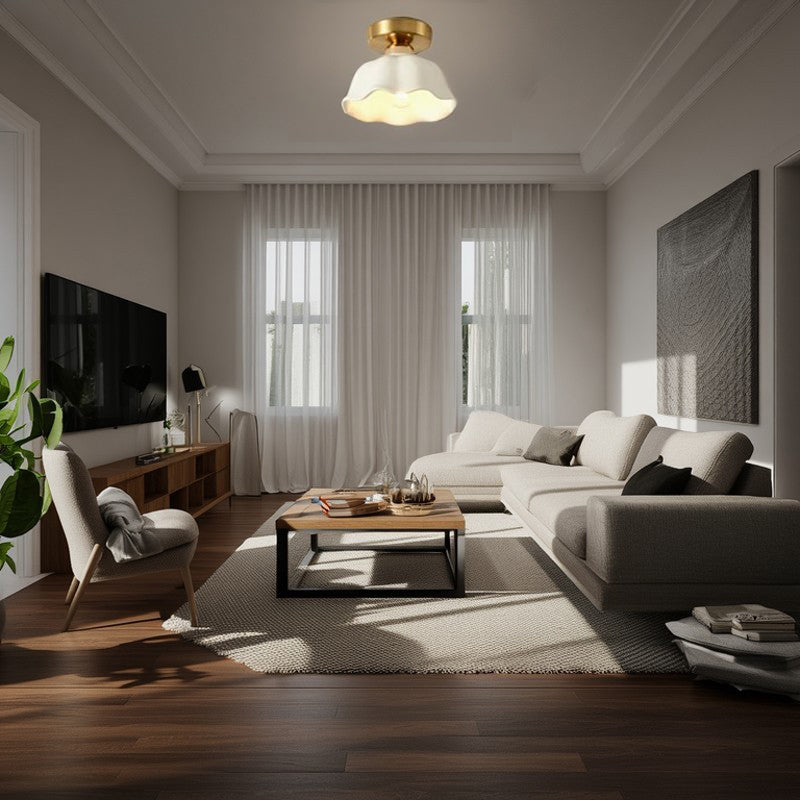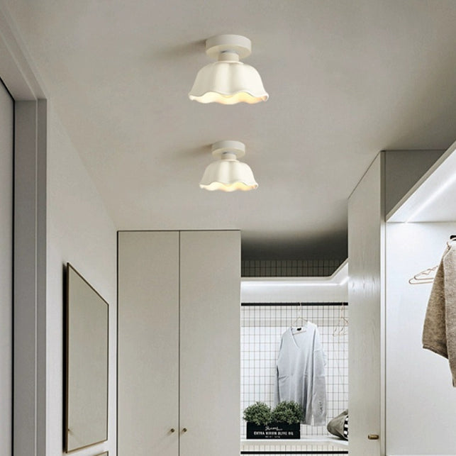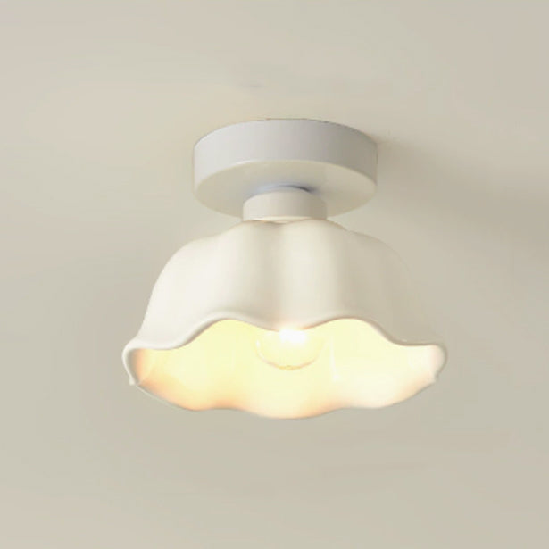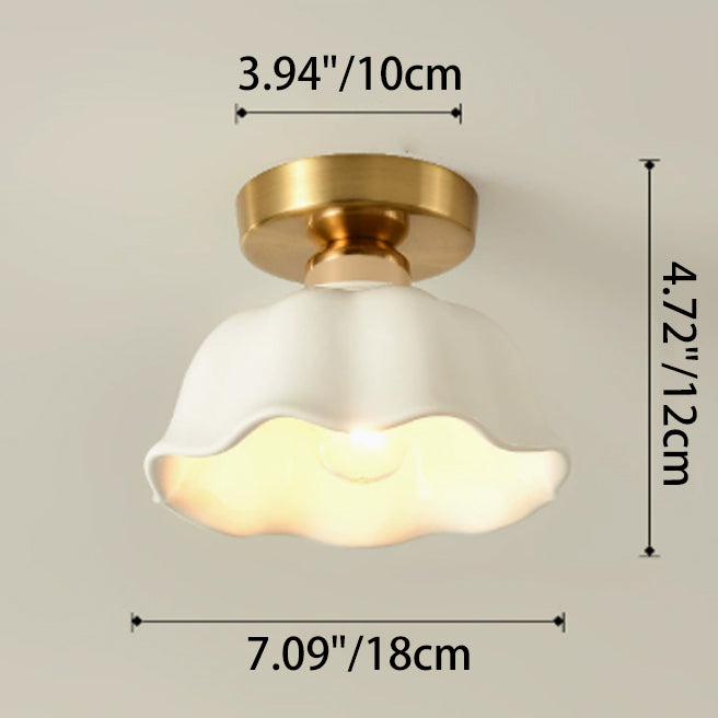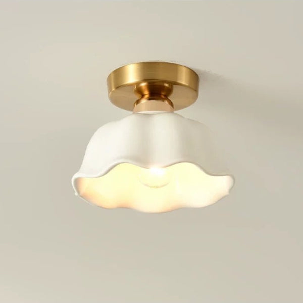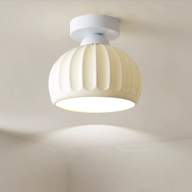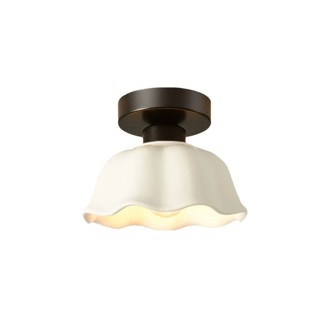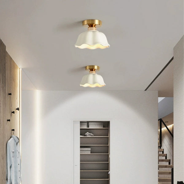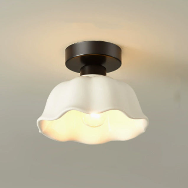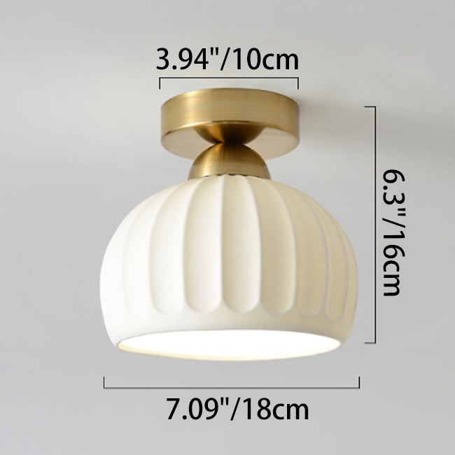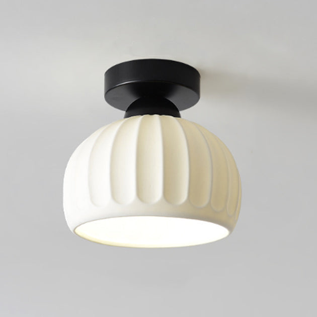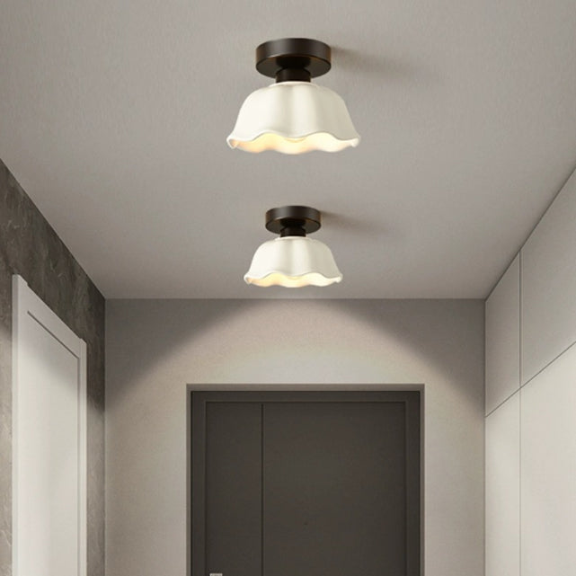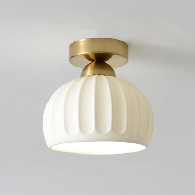 مصباح سقف دائري عصري بسيط من الحديد والسيراميك مزود بمصباح واحد وتركيب شبه مسطح للممر