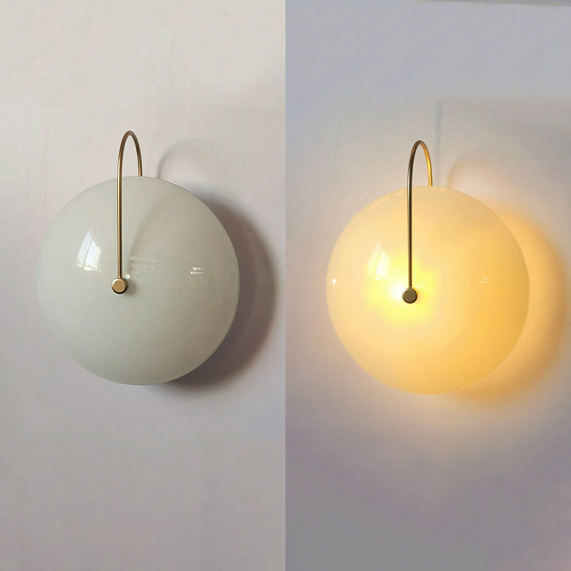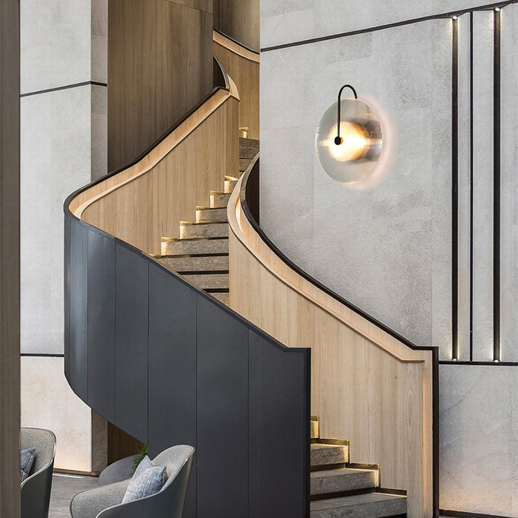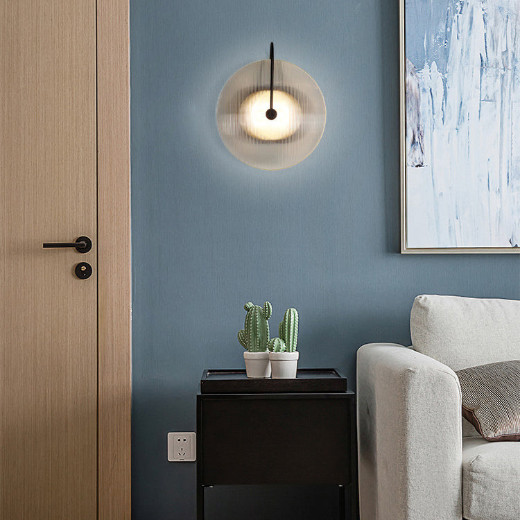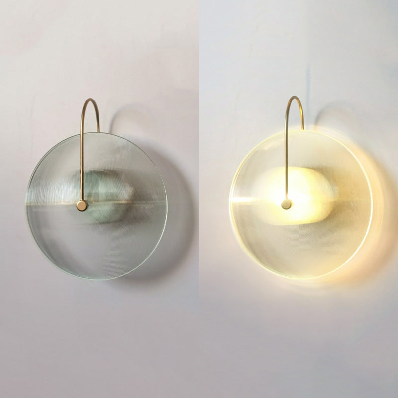مصباح حائط دائري عصري بسيط من الزجاج والحديد مزود بإضاءة واحدة للممر