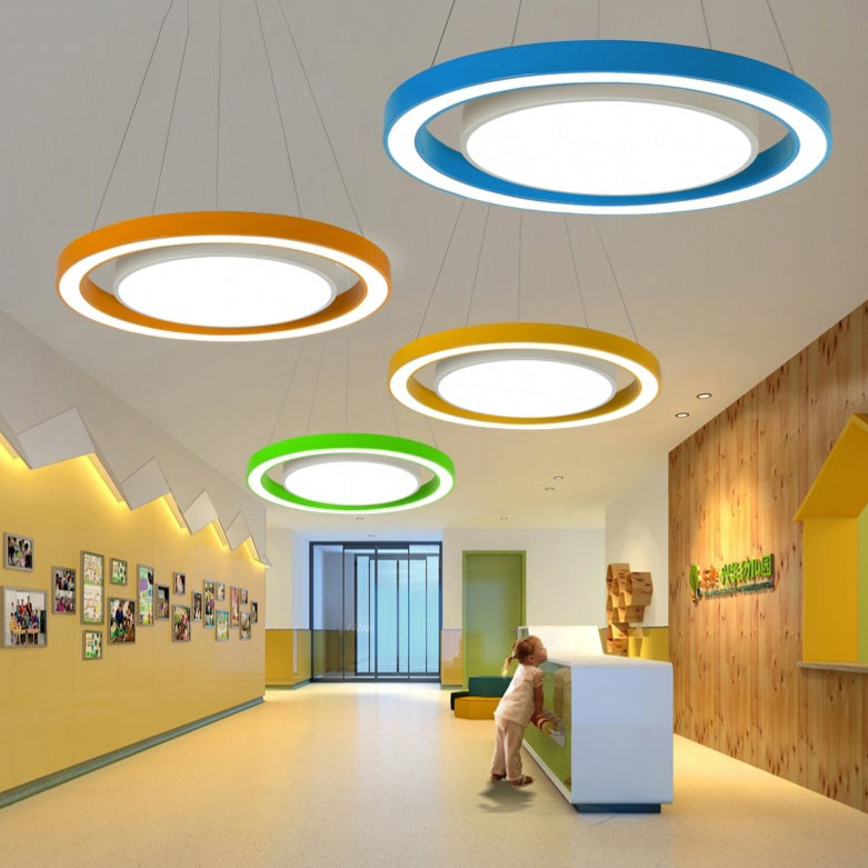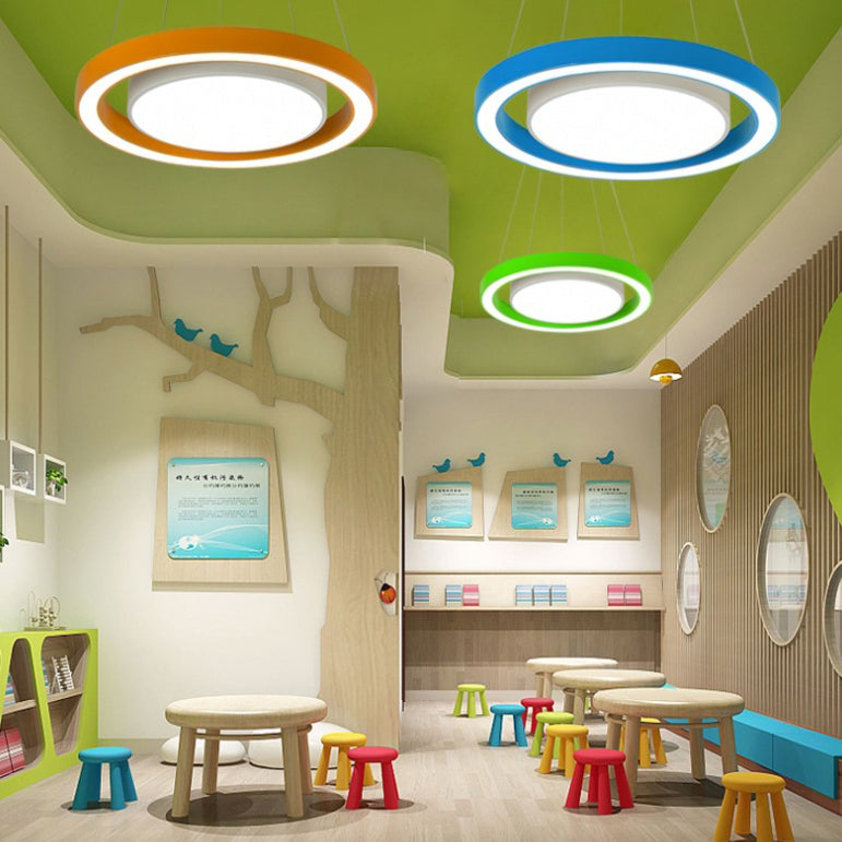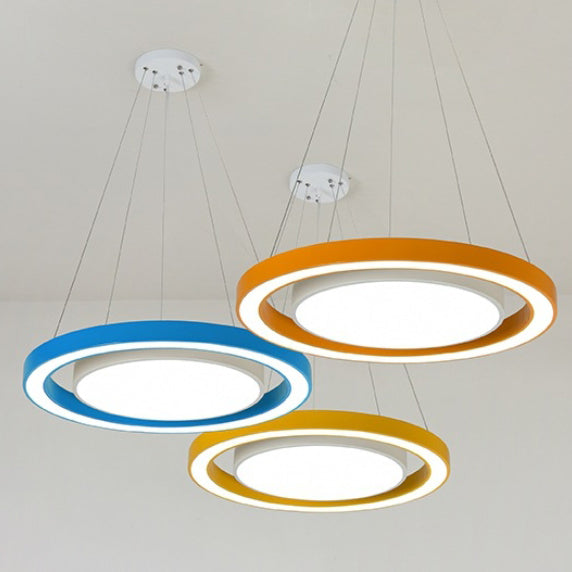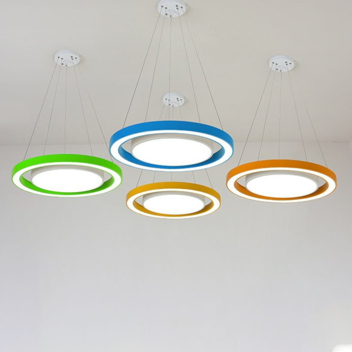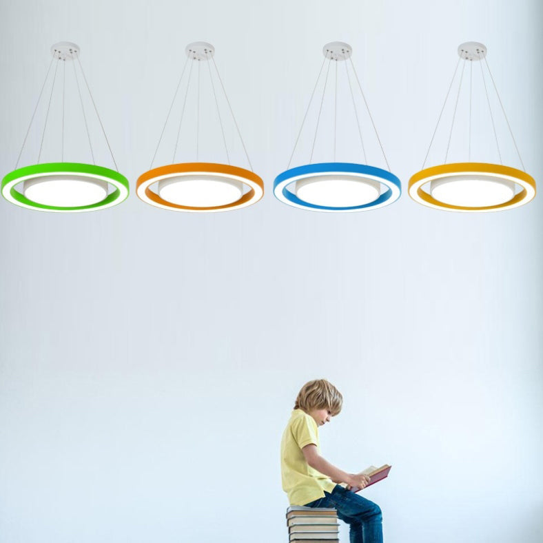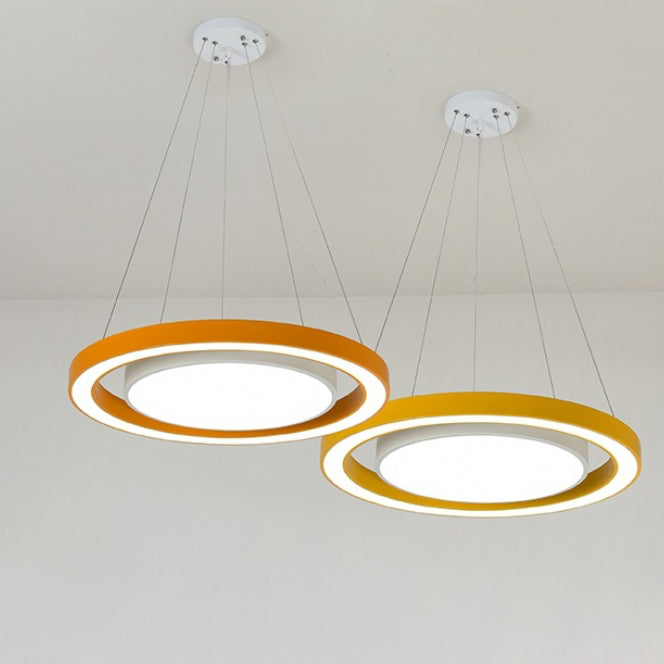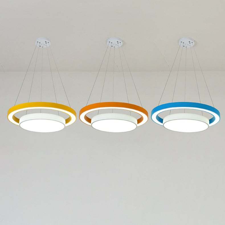 ثريا جزيرة LED دائرية حديثة بسيطة من الحديد والألومنيوم والأكريليك بجانب السرير