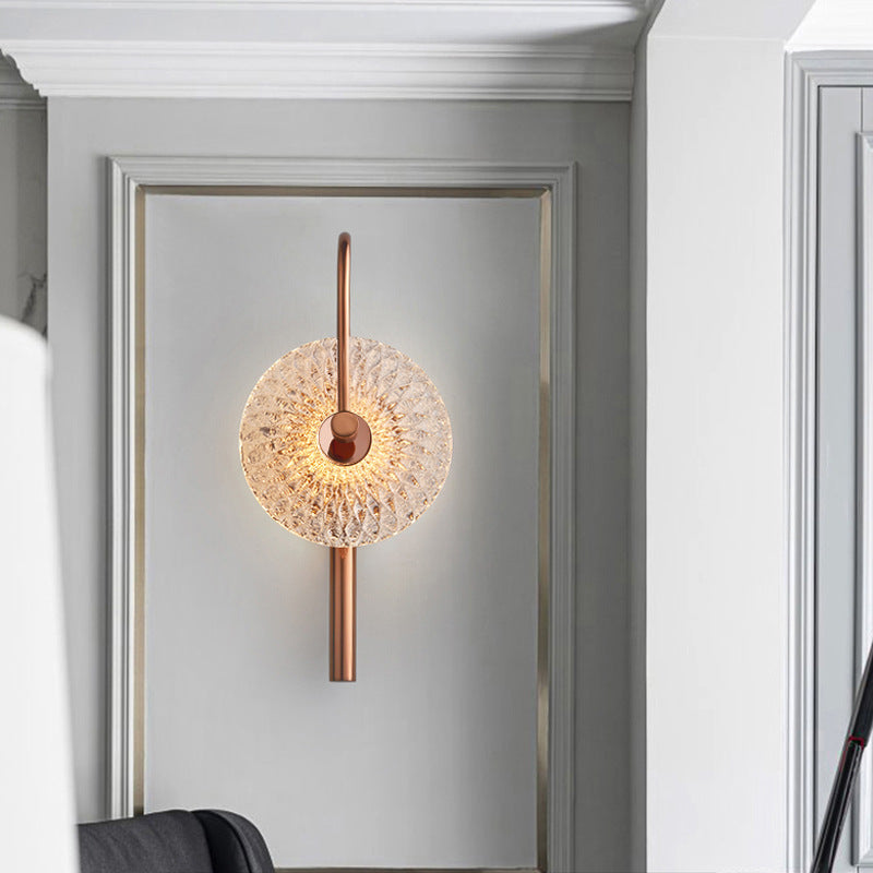 مصباح حائط LED دائري عصري بسيط من الفولاذ المقاوم للصدأ والزجاج لغرفة النوم
