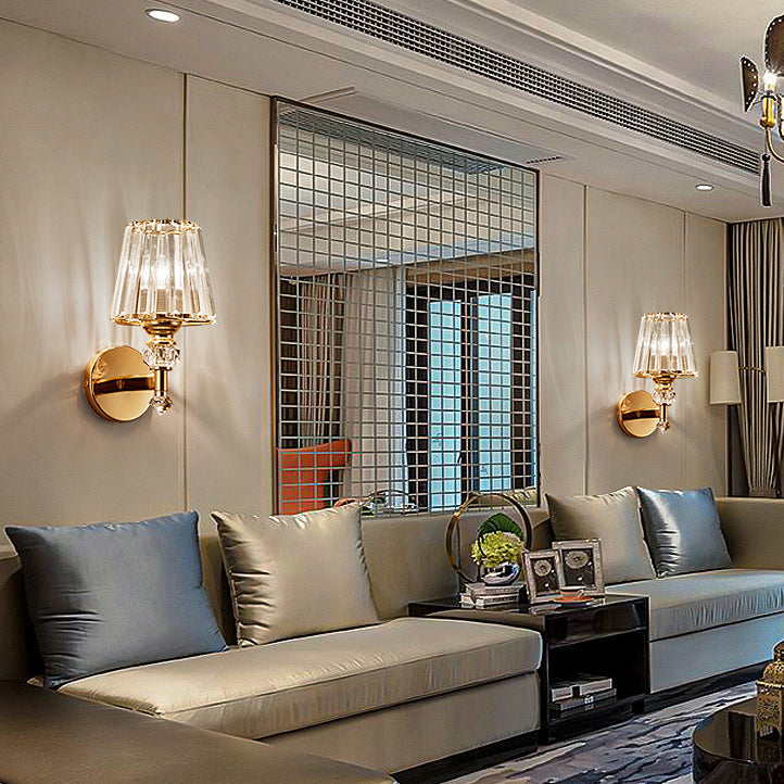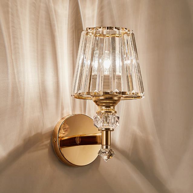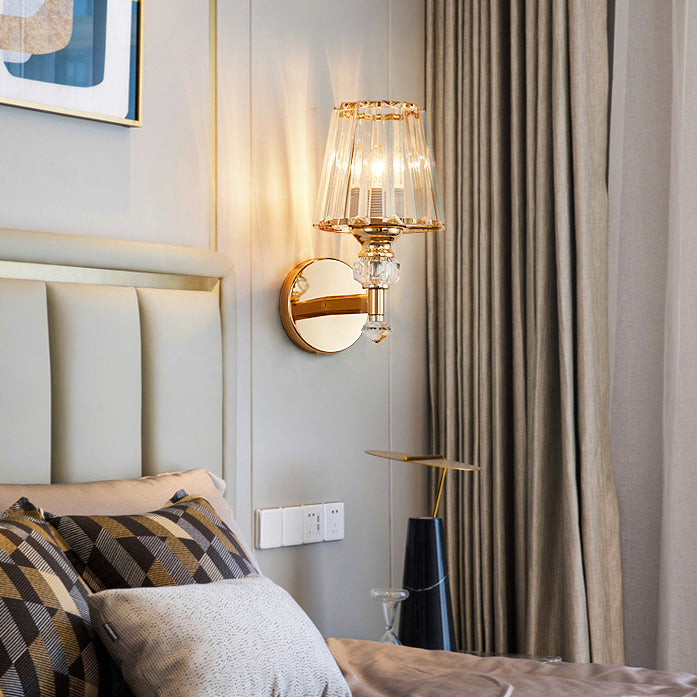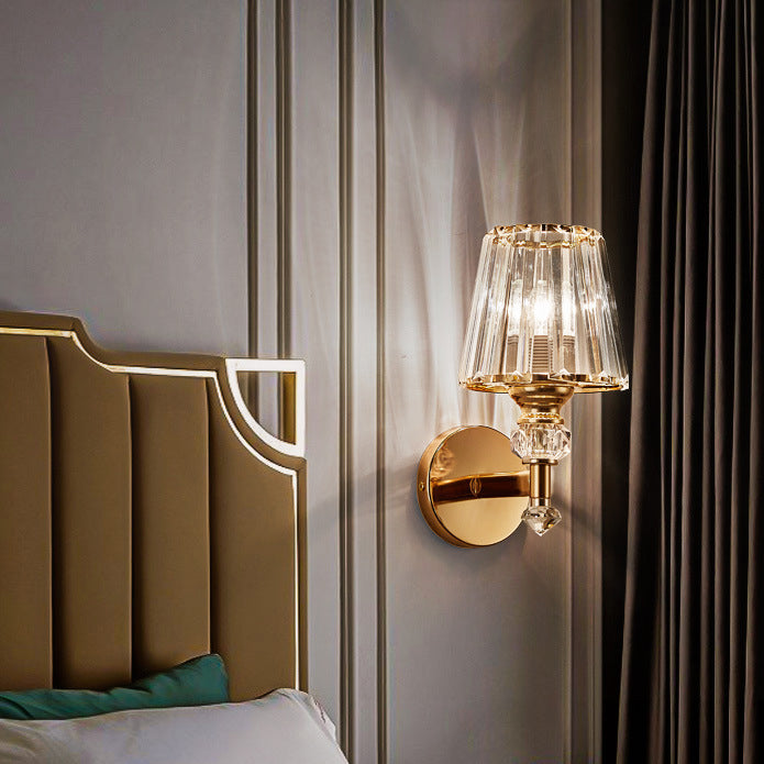 مصباح حائطي حديث بسيط على شكل شبه منحرف من الكريستال مزود بمصباح واحد لغرفة النوم