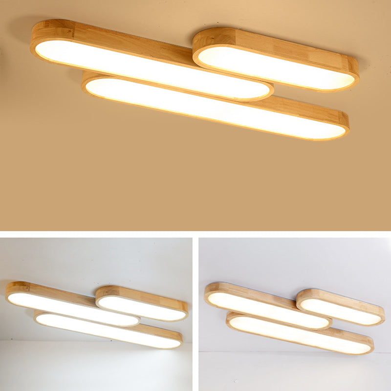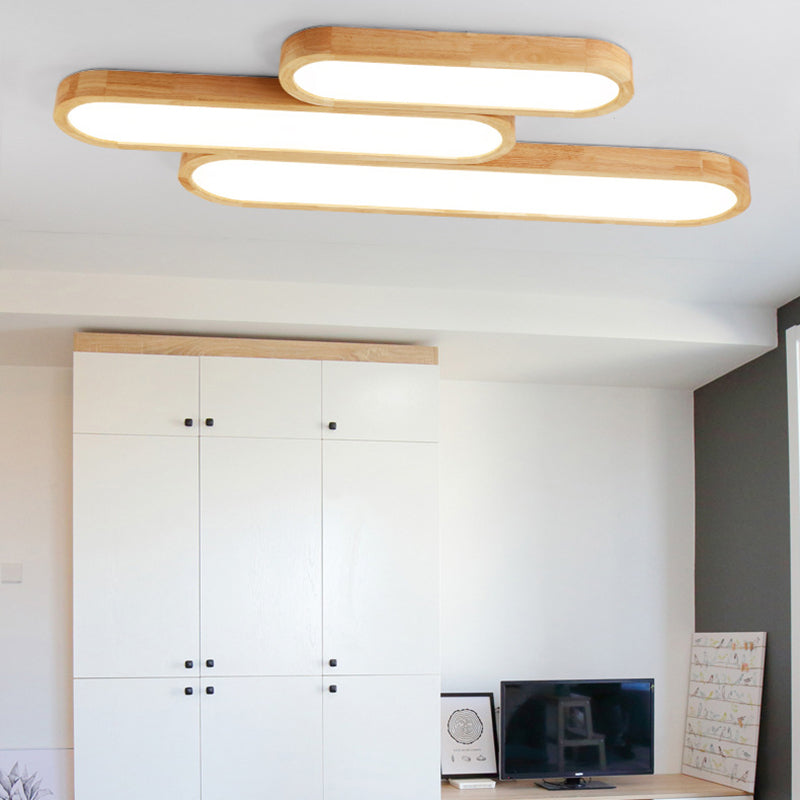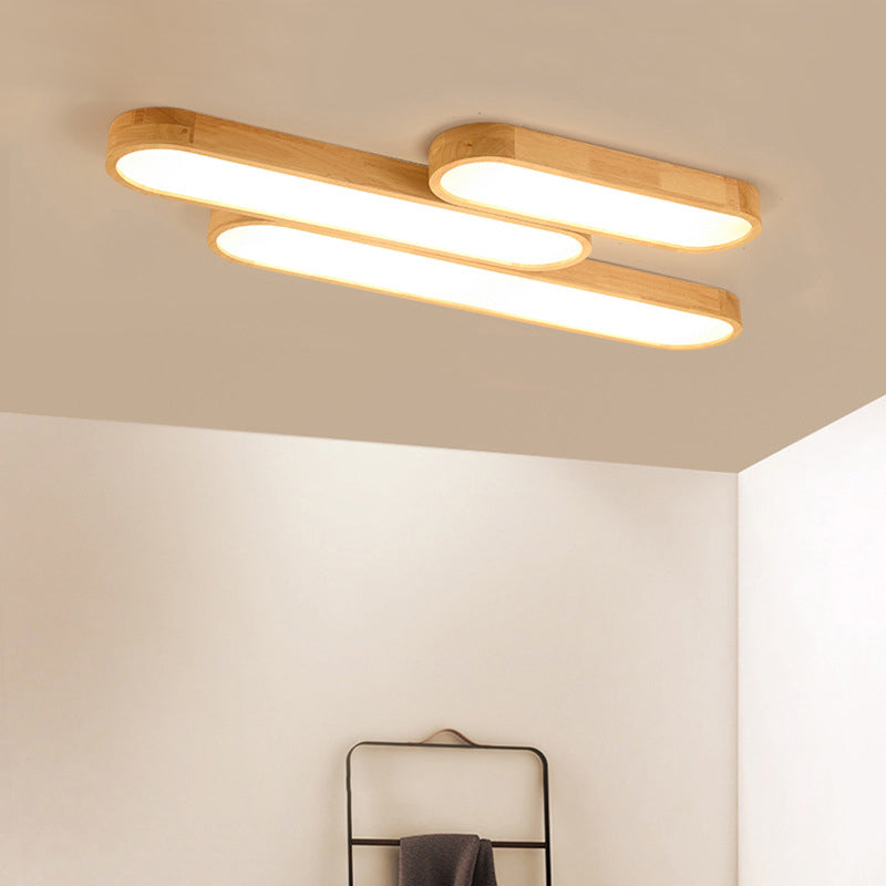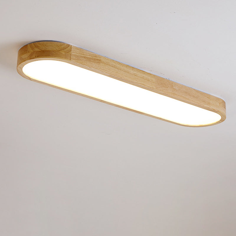 مصباح سقف LED بيضاوي الشكل بتصميم عصري بسيط من خشب المطاط والأكريليك لغرفة النوم وغرفة المعيشة