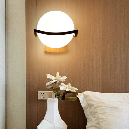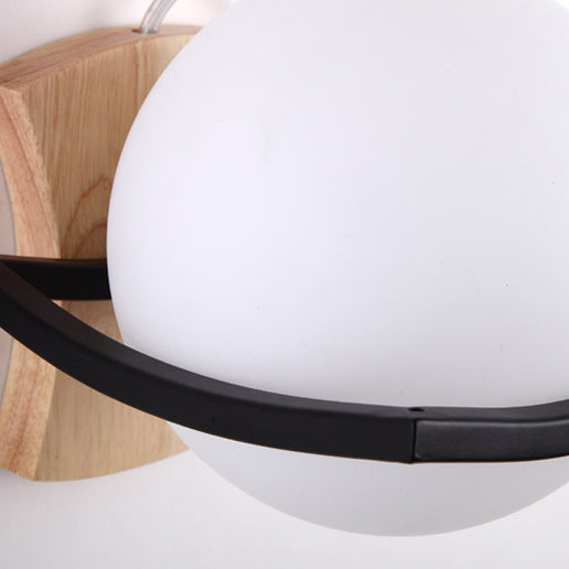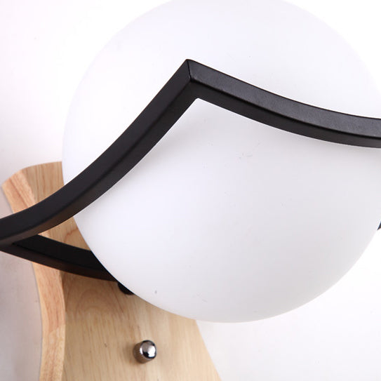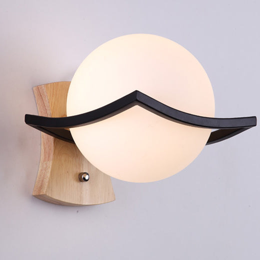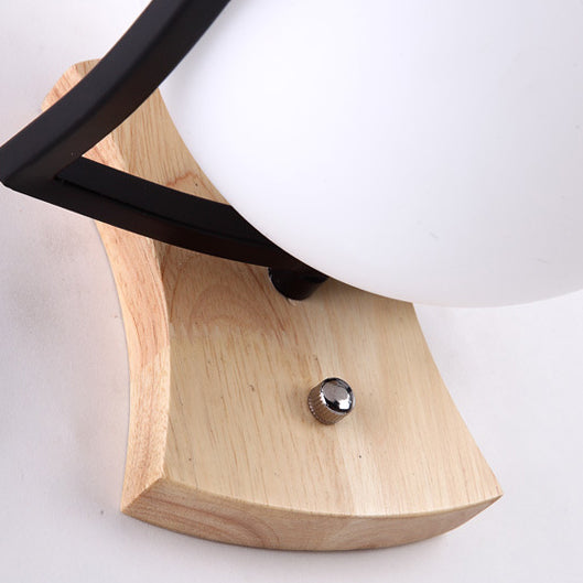 مصباح حائط كروي خشبي زجاجي حديث بسيط بإضاءة واحدة لغرفة النوم