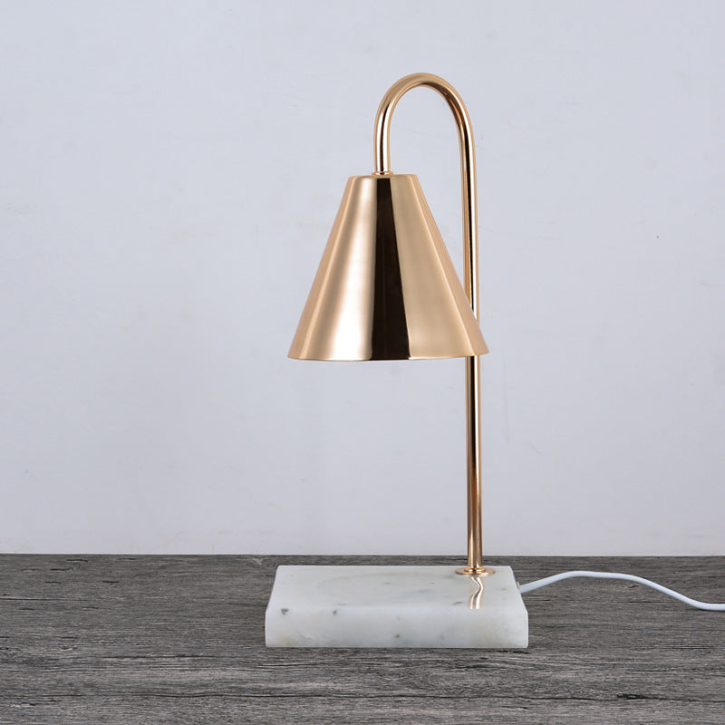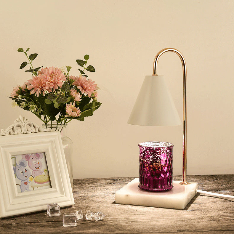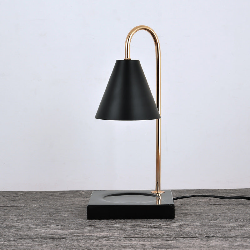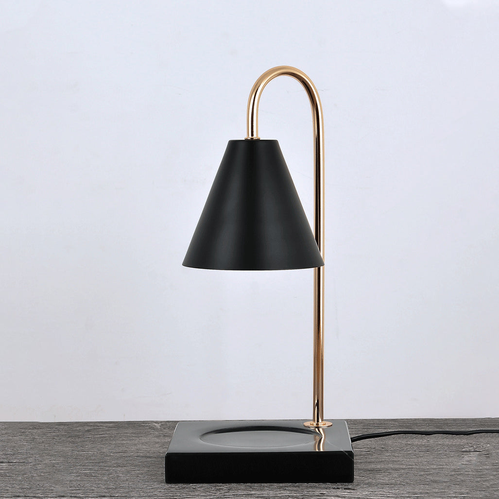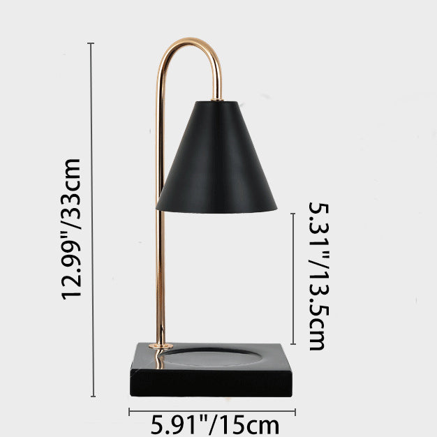 Modern Minimalist Square Conical Curved Metal Marble 1-Light Melting Wax Table Lamp For Living Room
