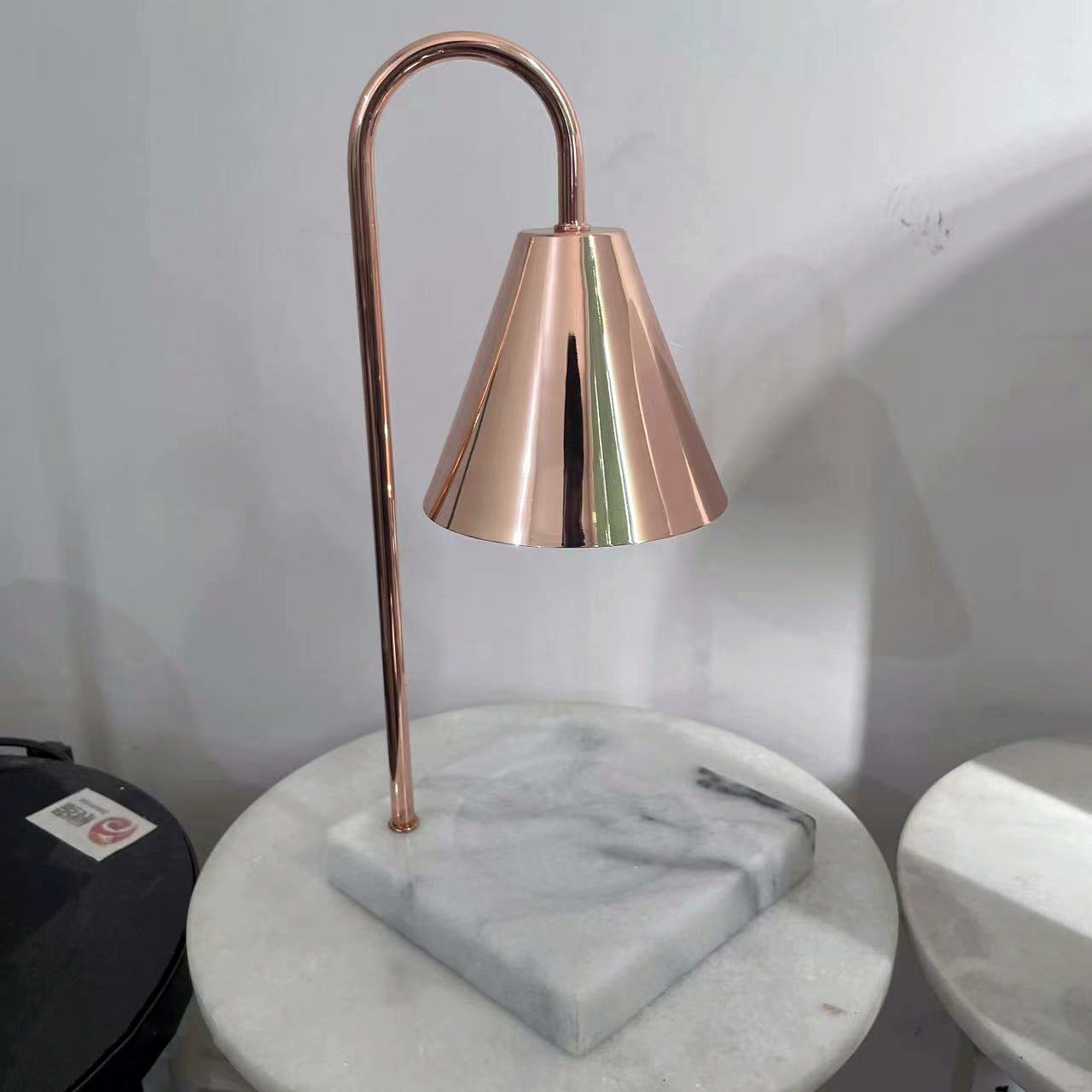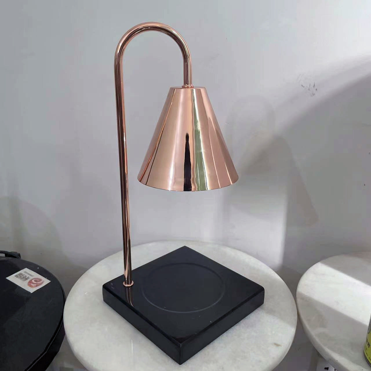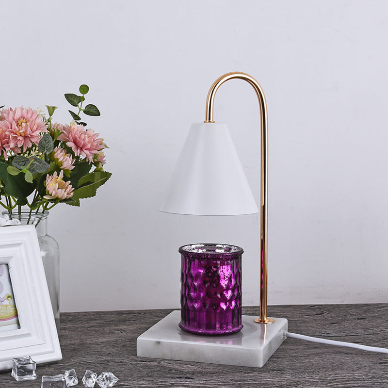 Modern Minimalist Square Conical Curved Metal Marble 1-Light Melting Wax Table Lamp For Living Room