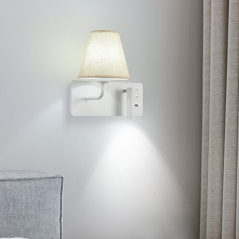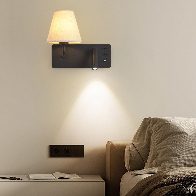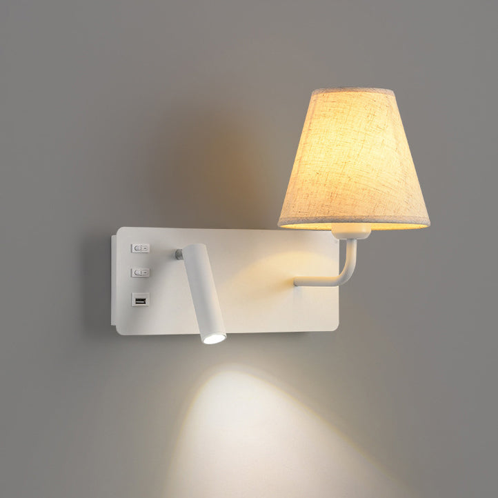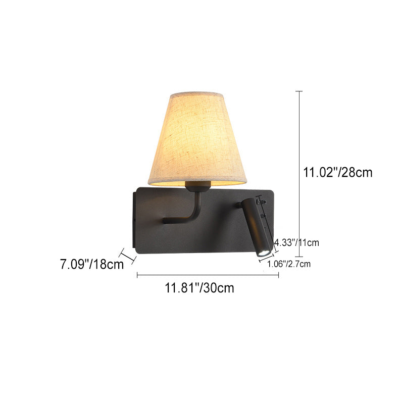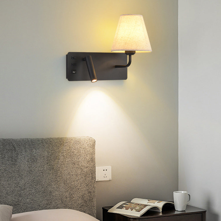 مصباح حائط LED أحادي الإضاءة مصنوع من قماش من الحديد والألومنيوم بتصميم أسطواني مربع عصري بسيط لغرفة النوم