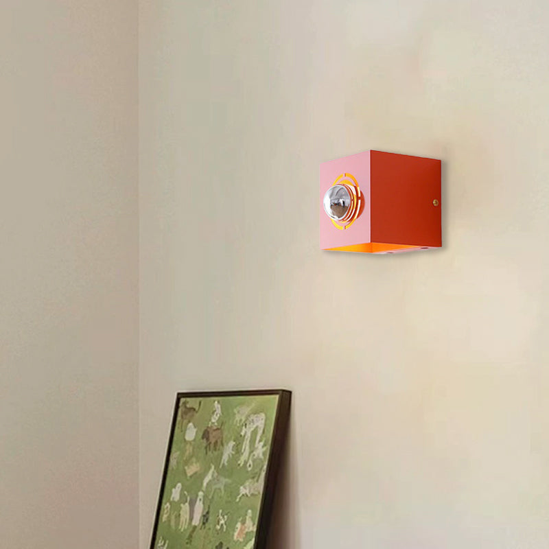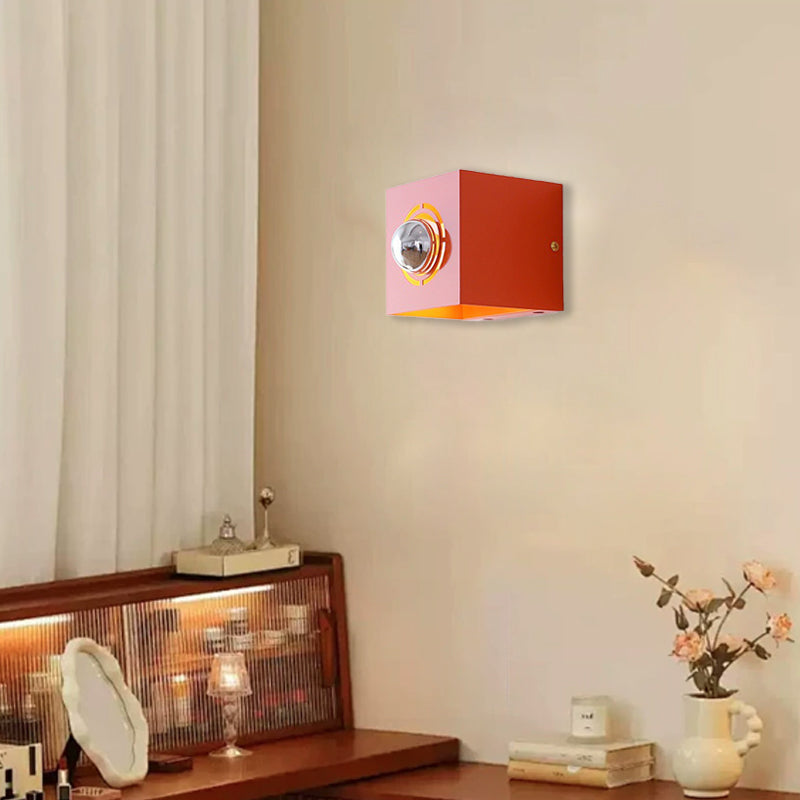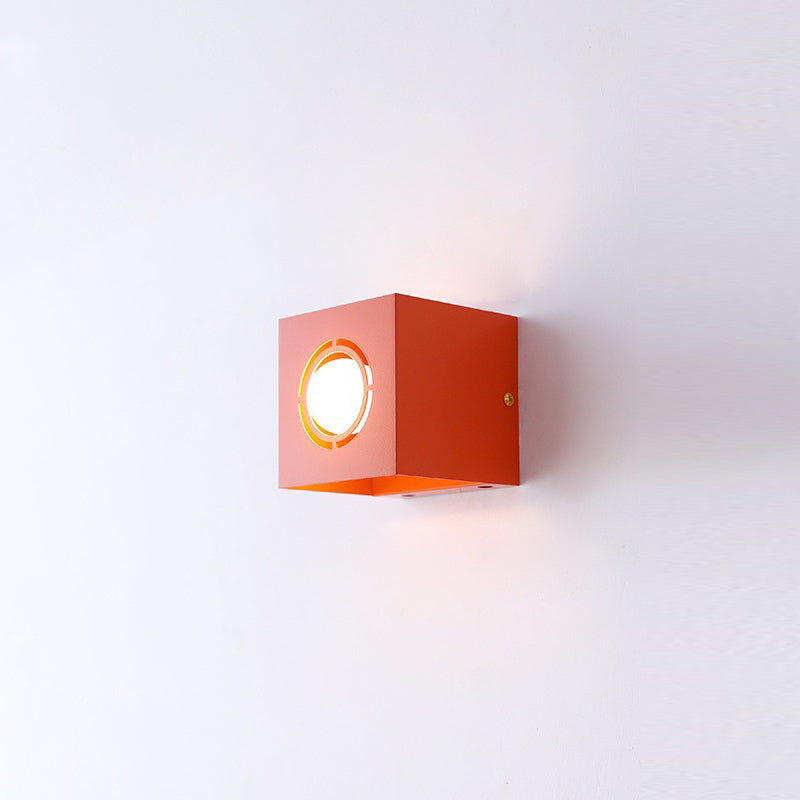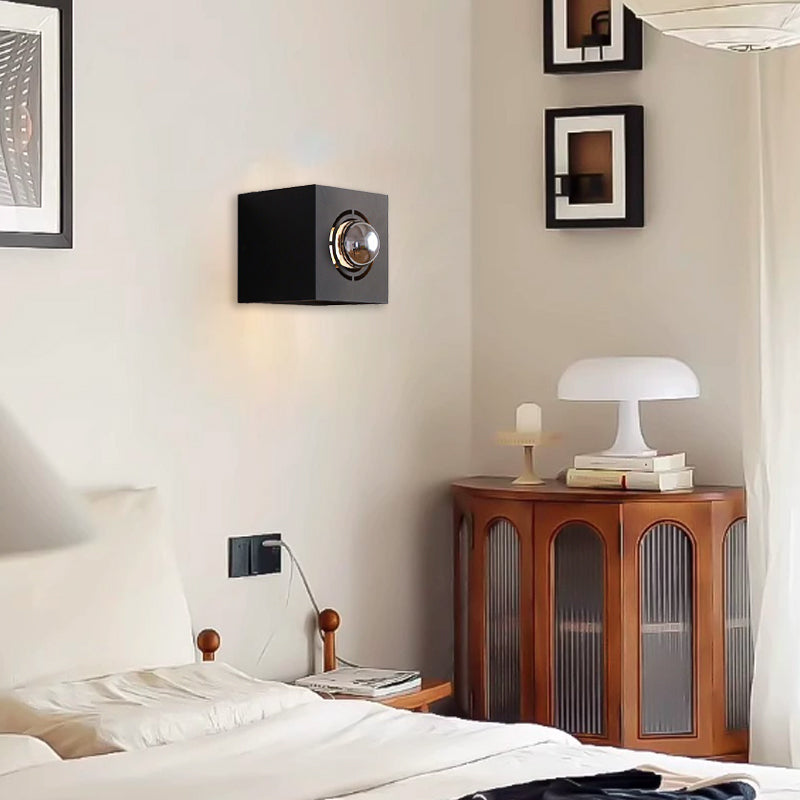 مصباح حائطي عصري بسيط مربع الشكل من الحديد، مزود بإضاءة واحدة، لغرفة النوم