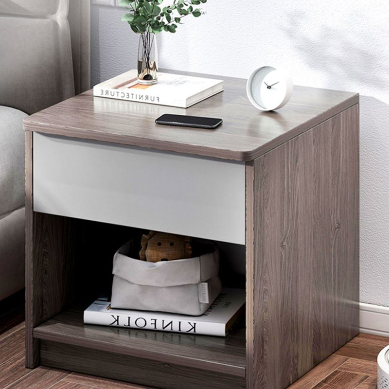 Modern Minimalist Square Table Top High Density Panel Nightstand 1-Drawer For Bedroom