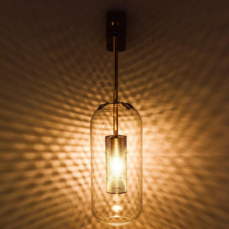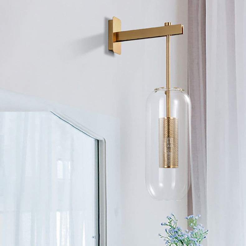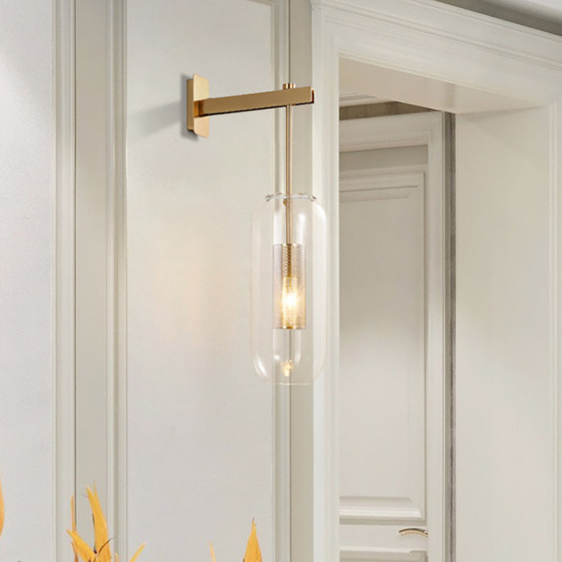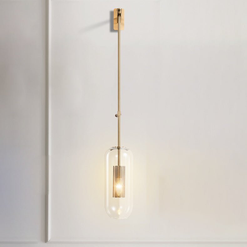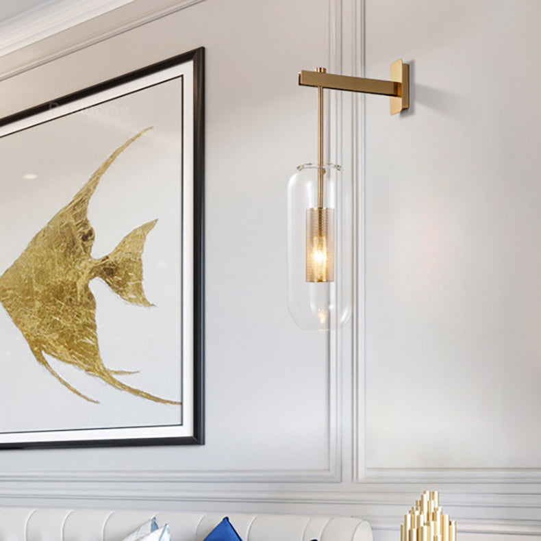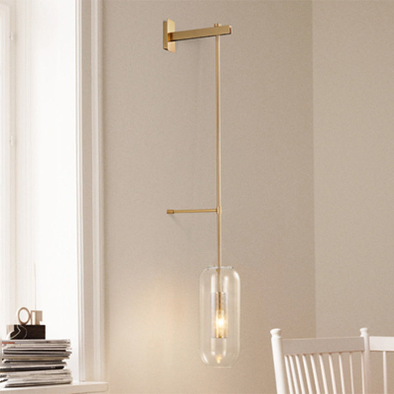 مصباح حائطي حديث بسيط مصنوع من شريط أسطواني من الحديد والزجاج مزود بإضاءة واحدة لغرفة المعيشة