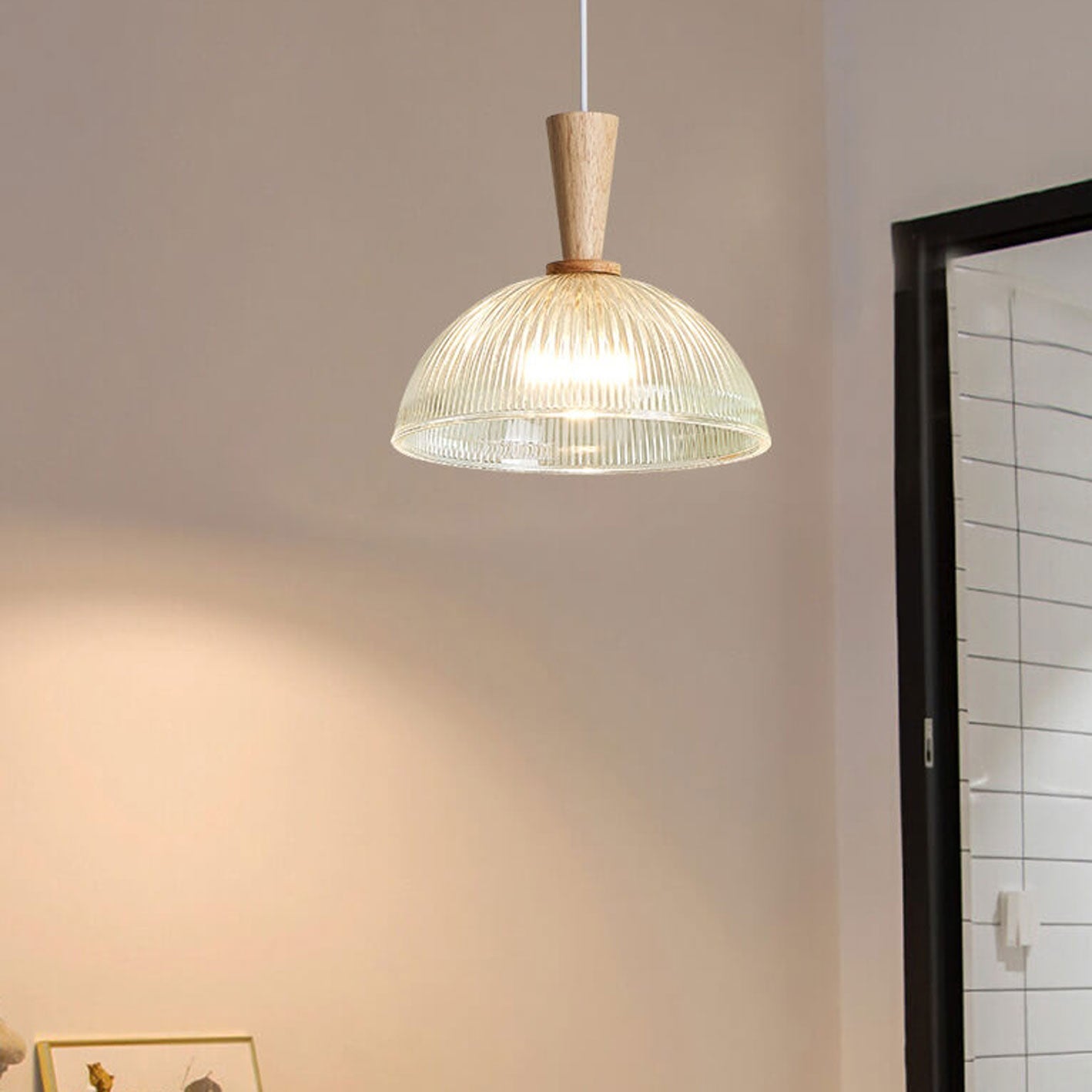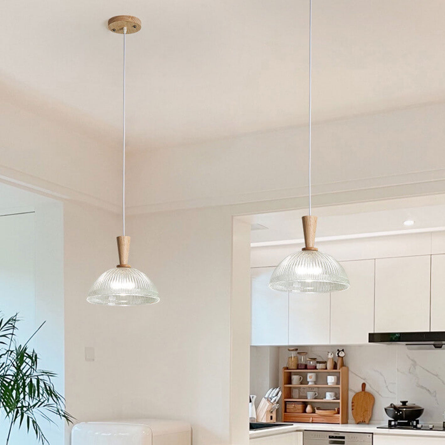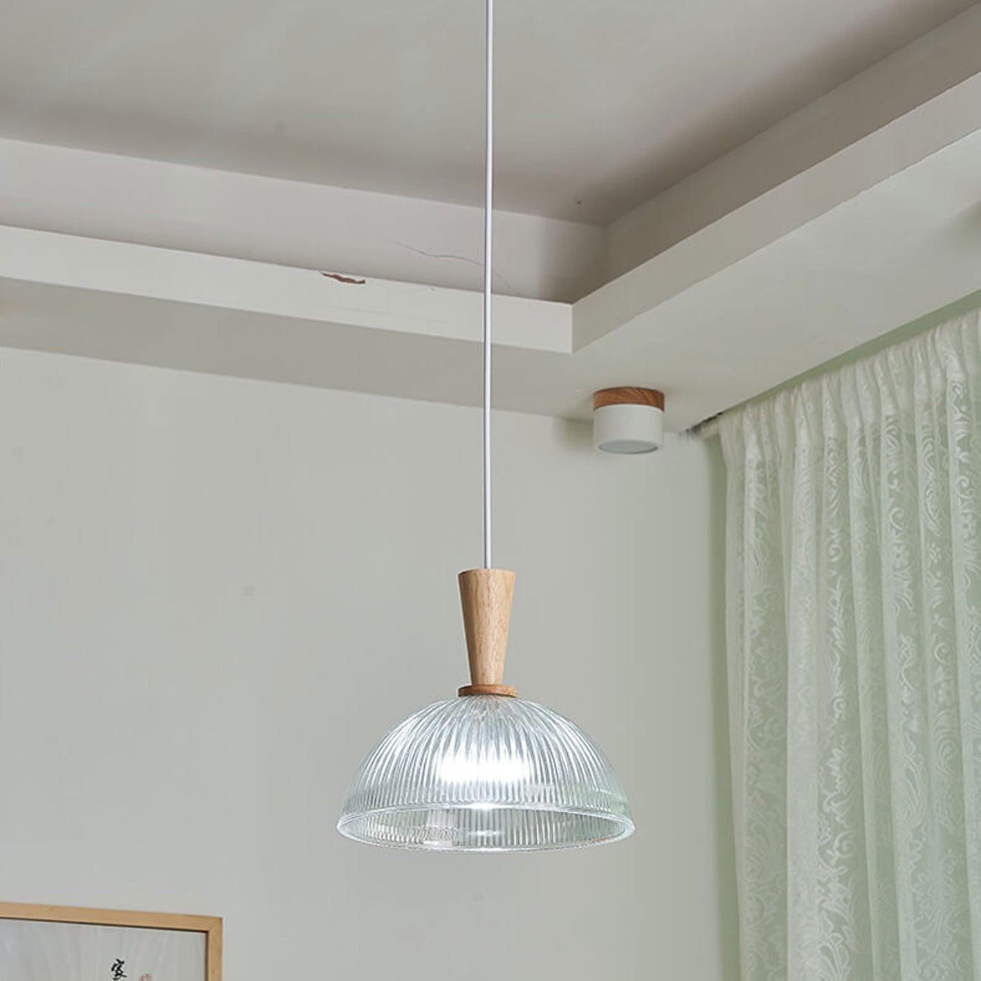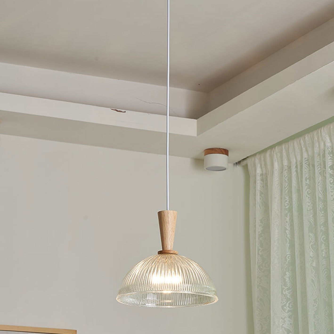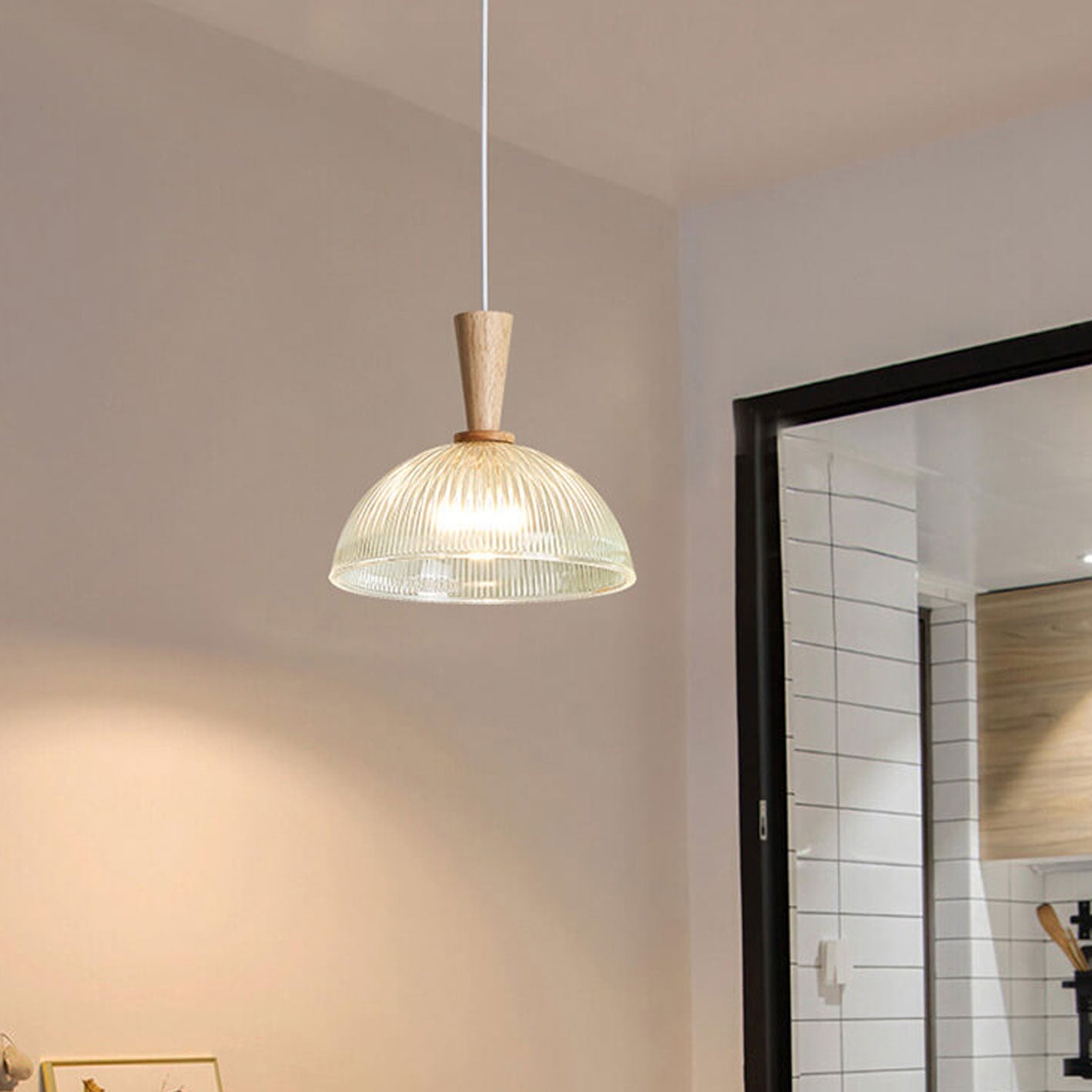 مصباح معلق حديث بسيط بمقبض خشبي وقبة زجاجية من مادة واحدة
