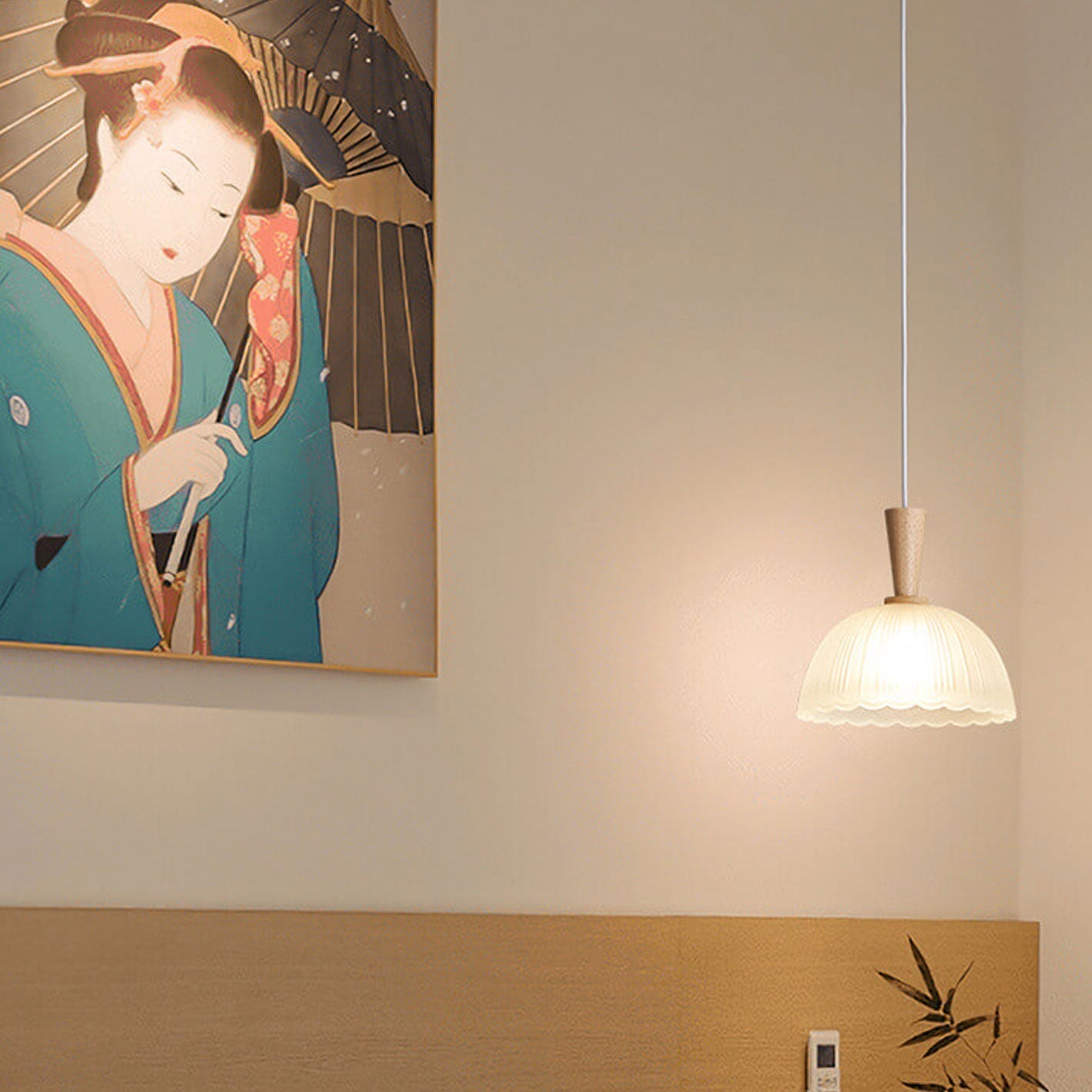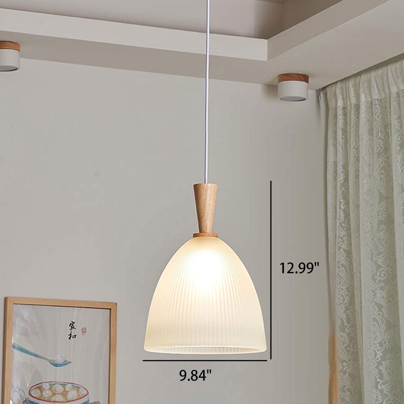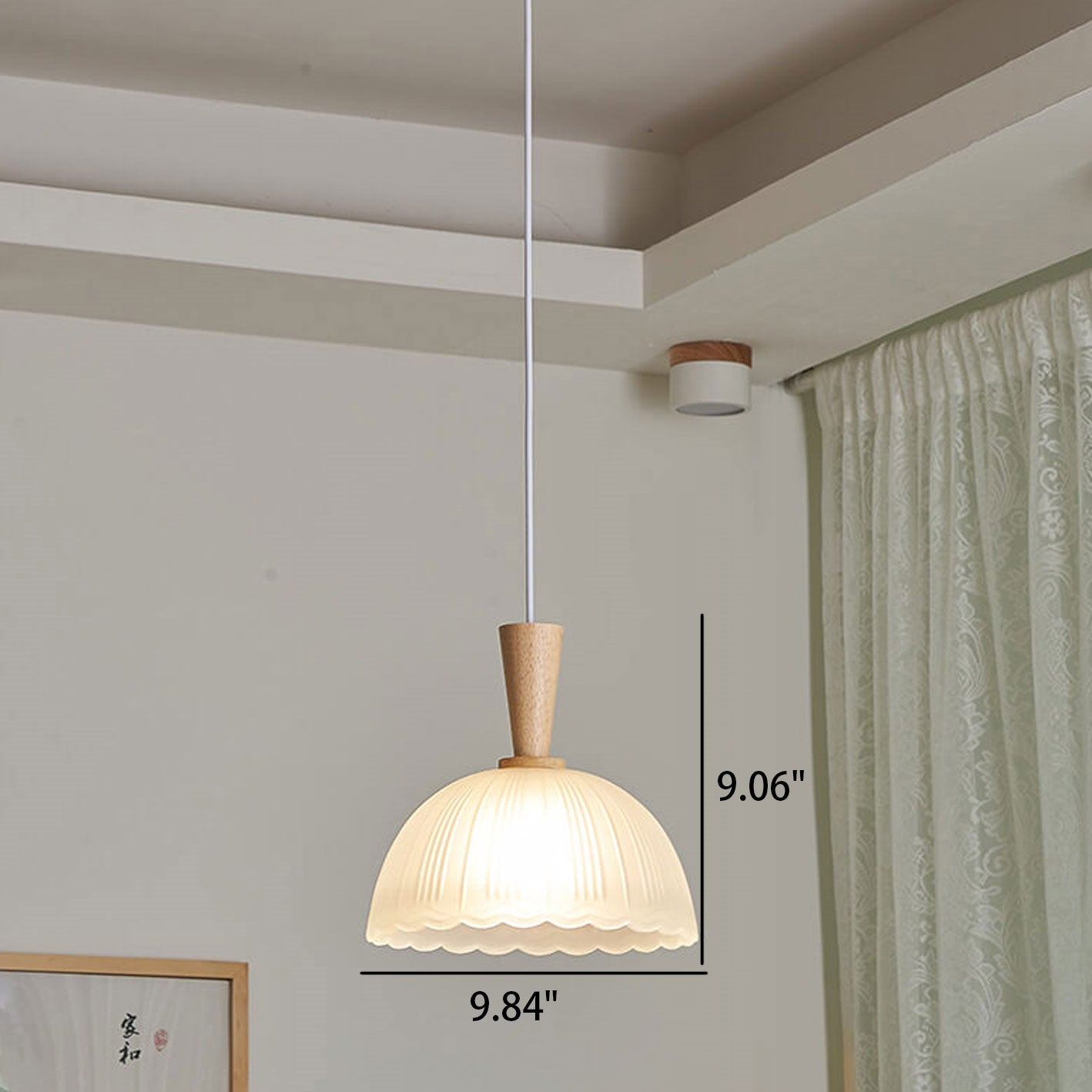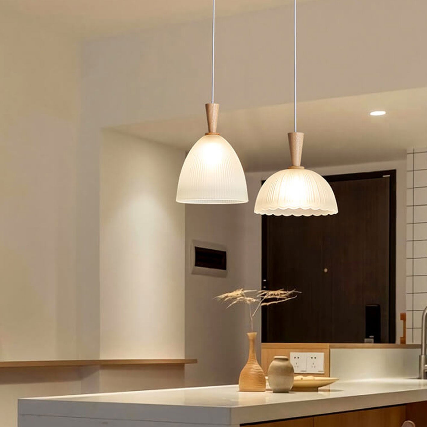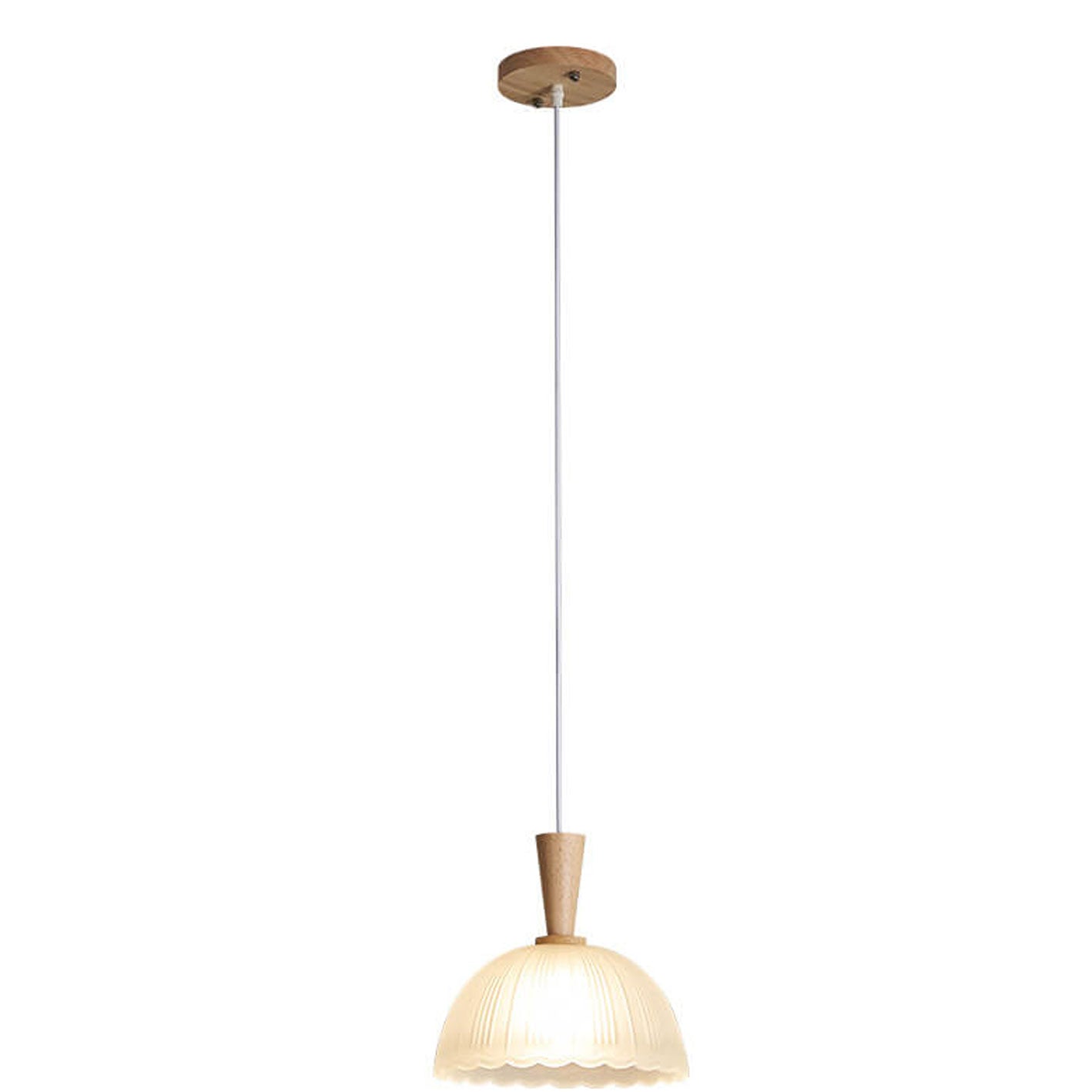 مصباح معلق حديث بسيط بمقبض خشبي وقبة زجاجية من مادة واحدة