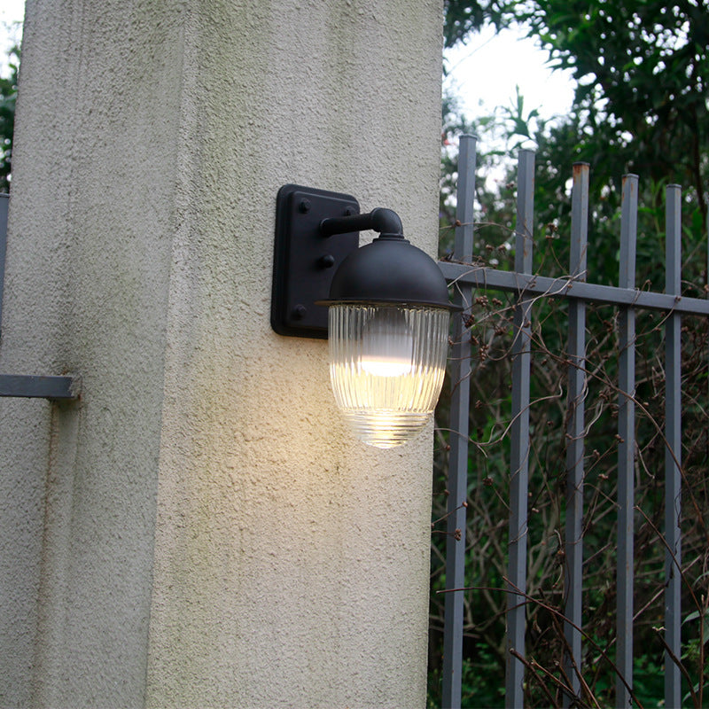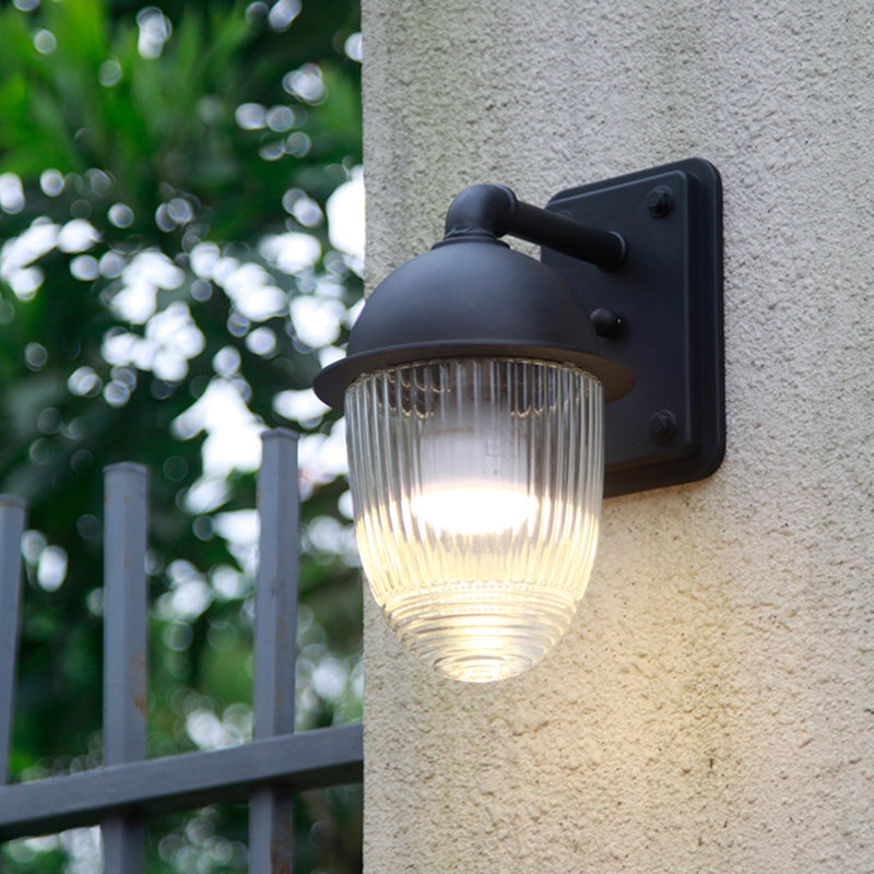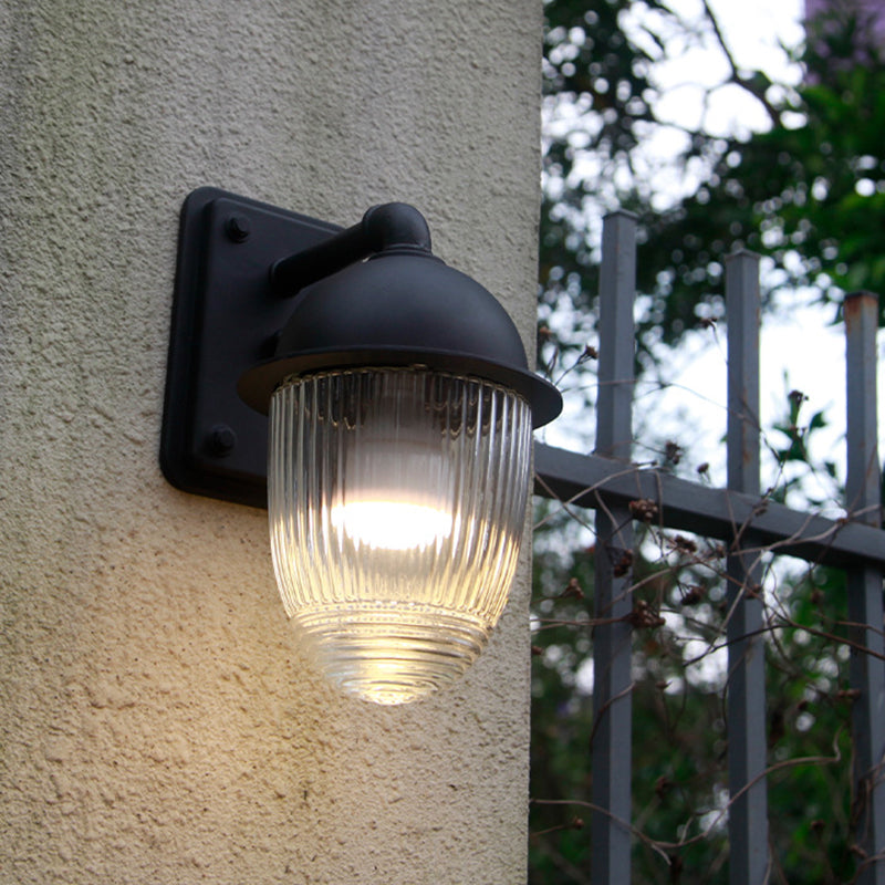 مصباح حائط خارجي عصري بسيط مقاوم للماء مصنوع من الألومنيوم والزجاج على شكل صمولة ومصباح واحد للحدائق
