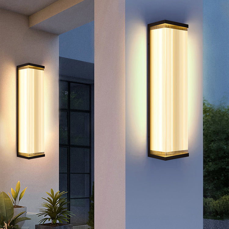 مصباح حائط خارجي LED مستطيل الشكل مصنوع من الفولاذ المقاوم للصدأ والأكريليك بتصميم عصري بسيط ومقاوم للماء للفناء الخارجي