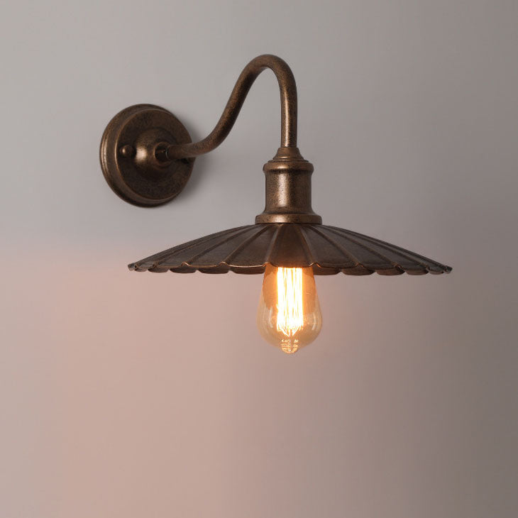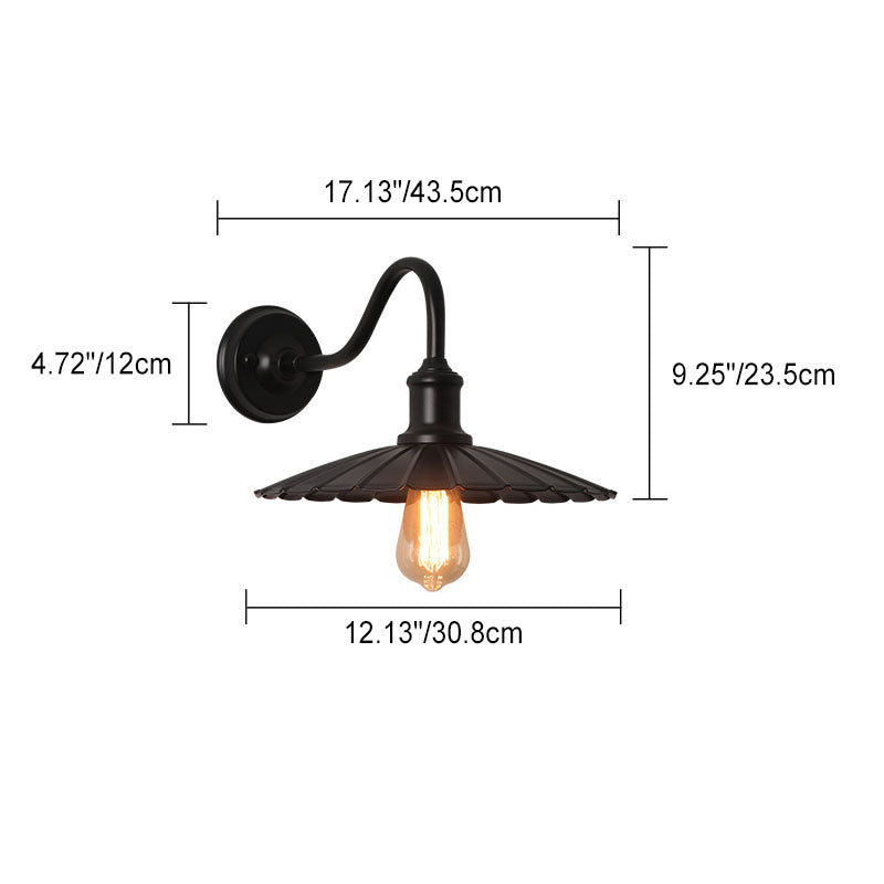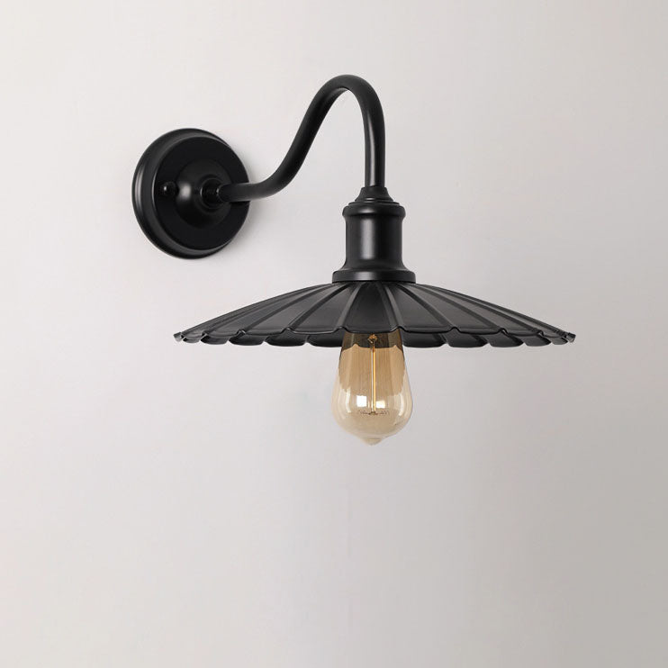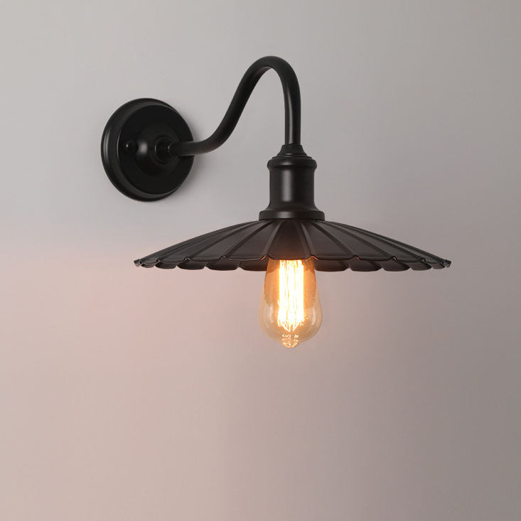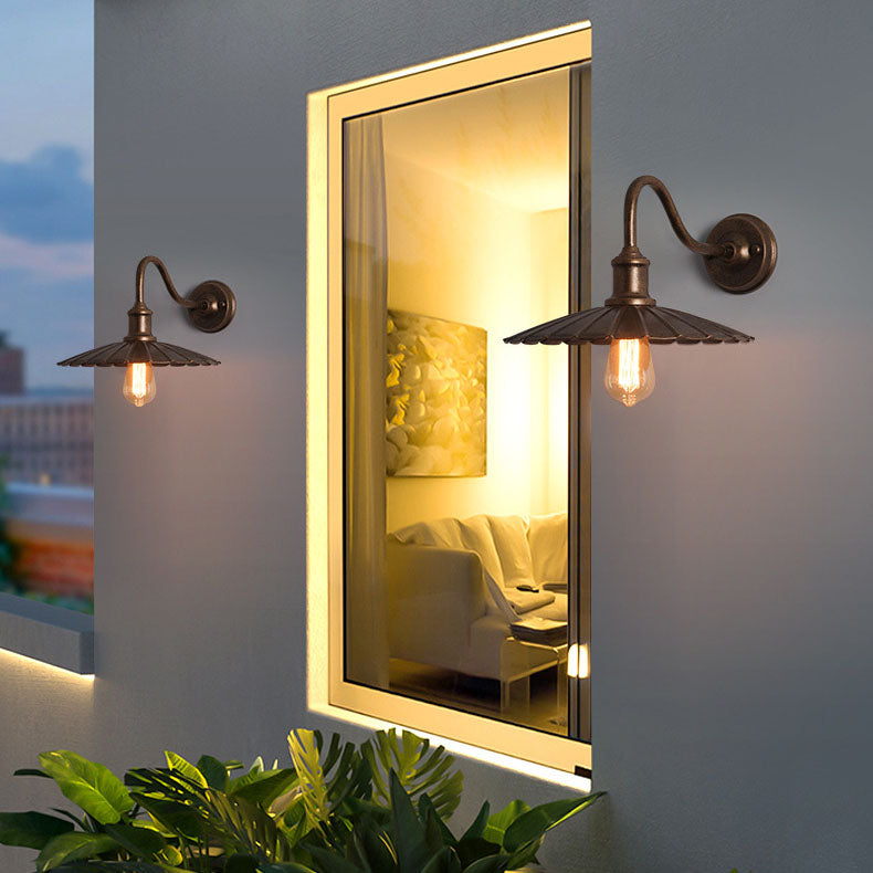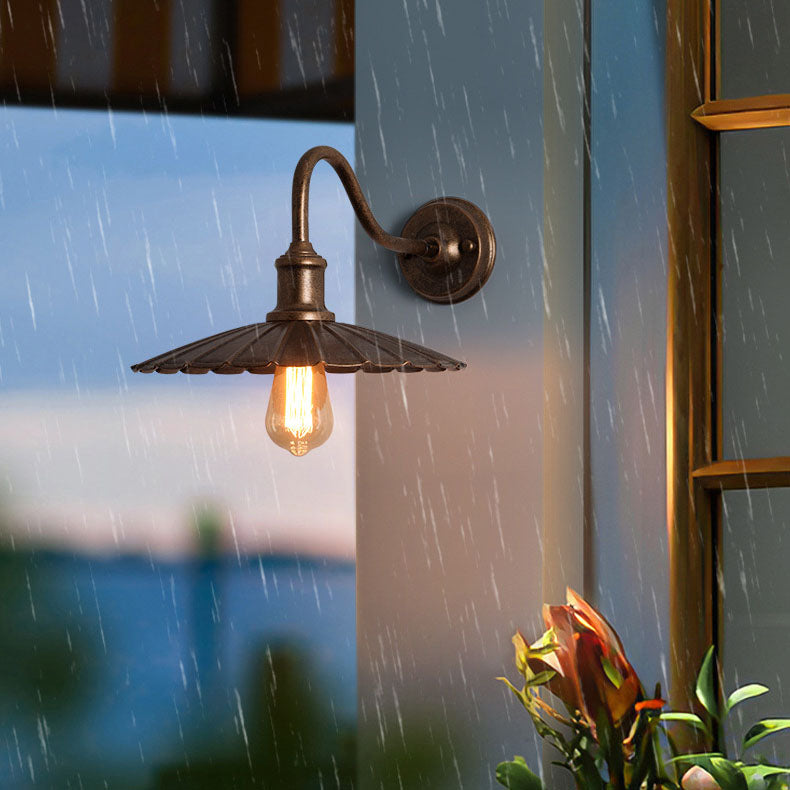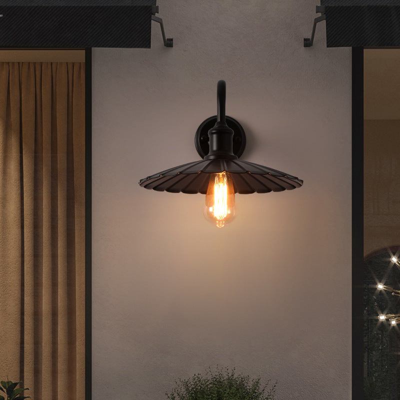 مصباح حائطي دائري مطوي من الحديد بتصميم عصري بسيط ومقاوم للماء، مزود بمصباح واحد، مناسب للفناء الخارجي