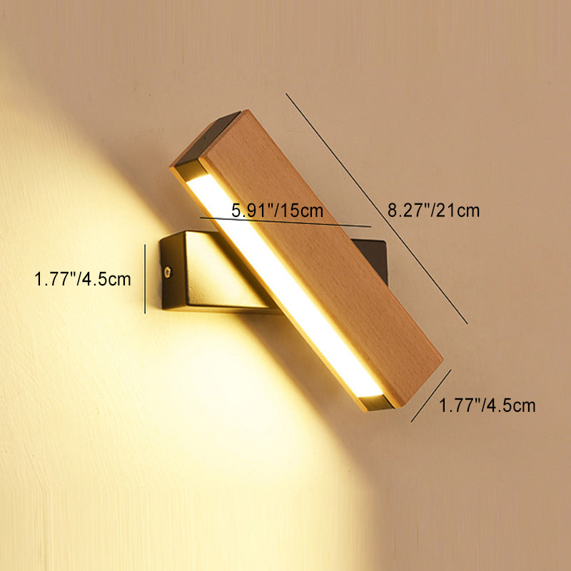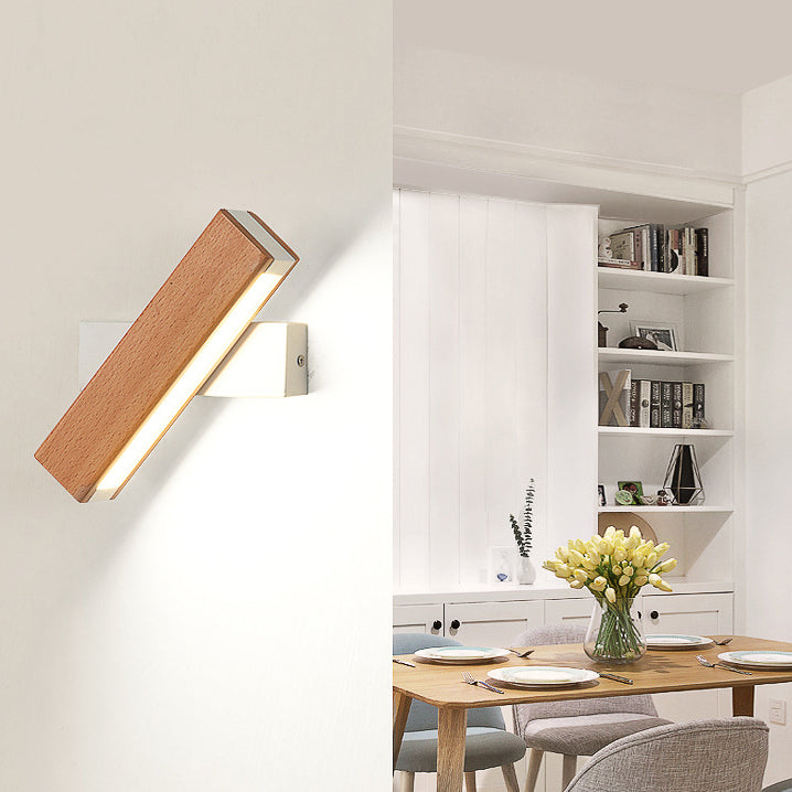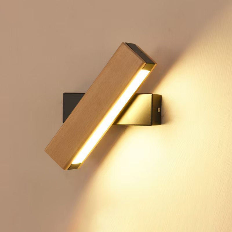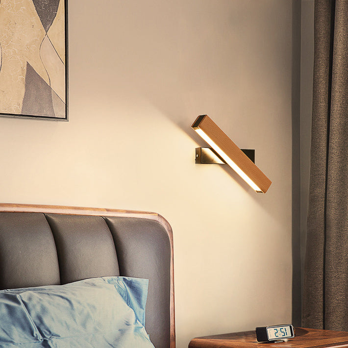 مصباح حائط دوار LED طويل من الألومنيوم بحبيبات خشبية بسيطة وحديثة لغرفة النوم