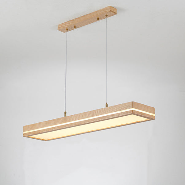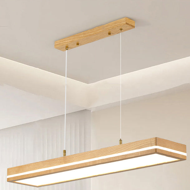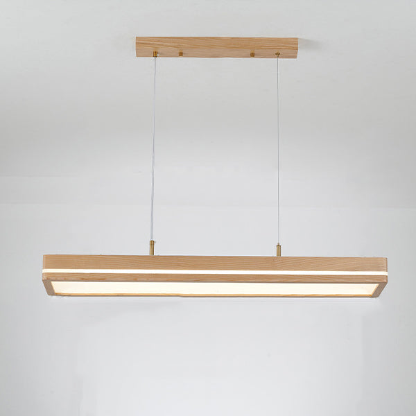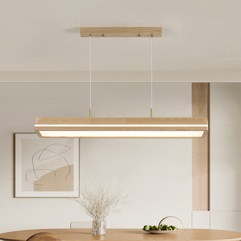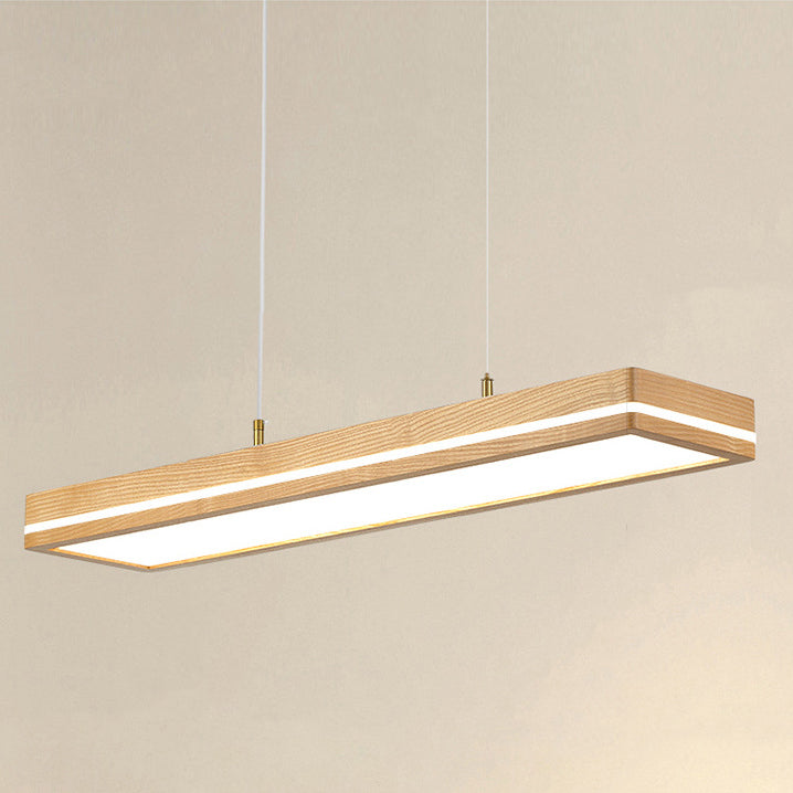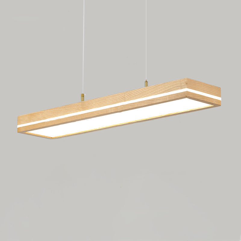 ثريات LED مستطيلة الشكل مصنوعة من خشب الدردار بتصميم عصري بسيط لغرفة الطعام
