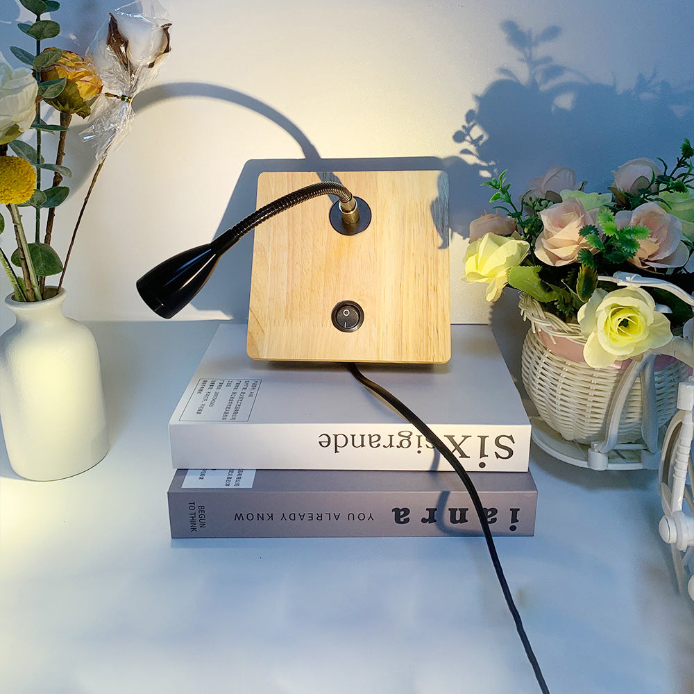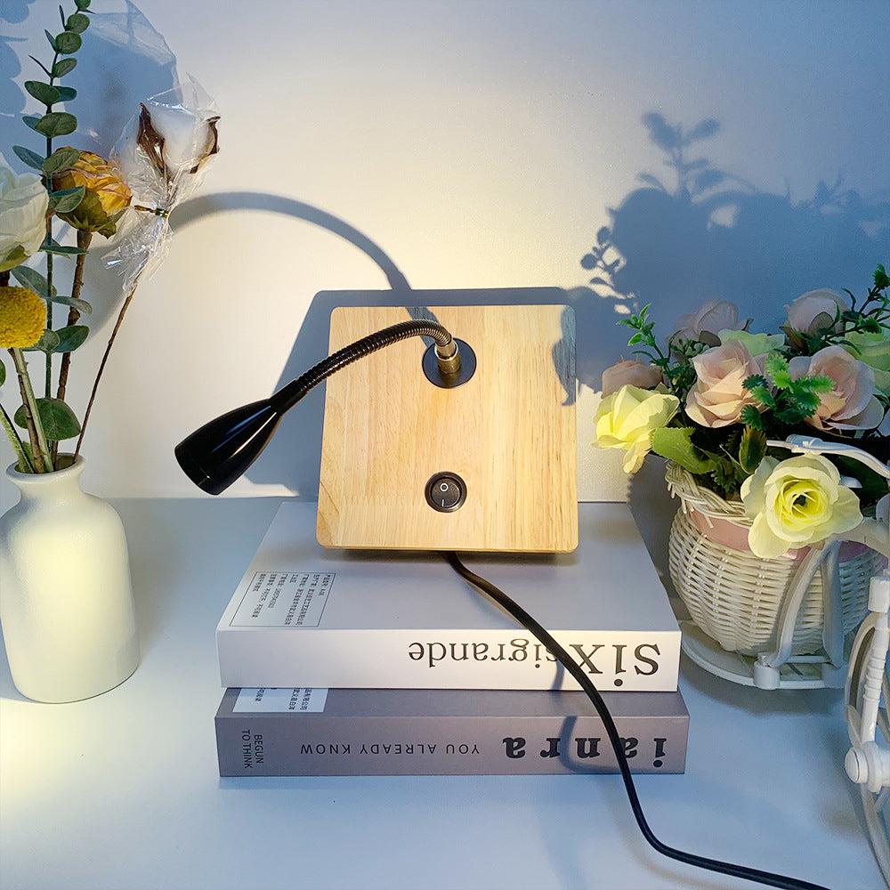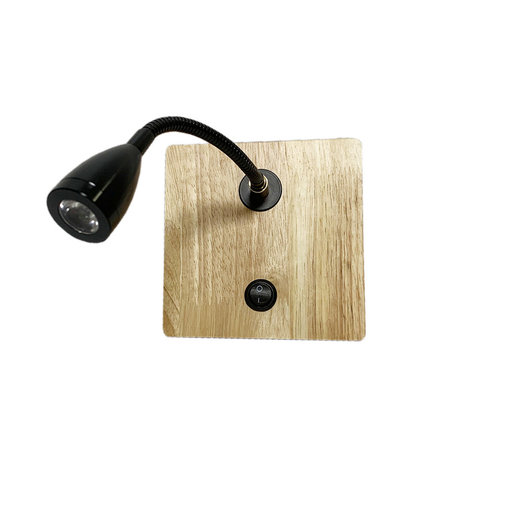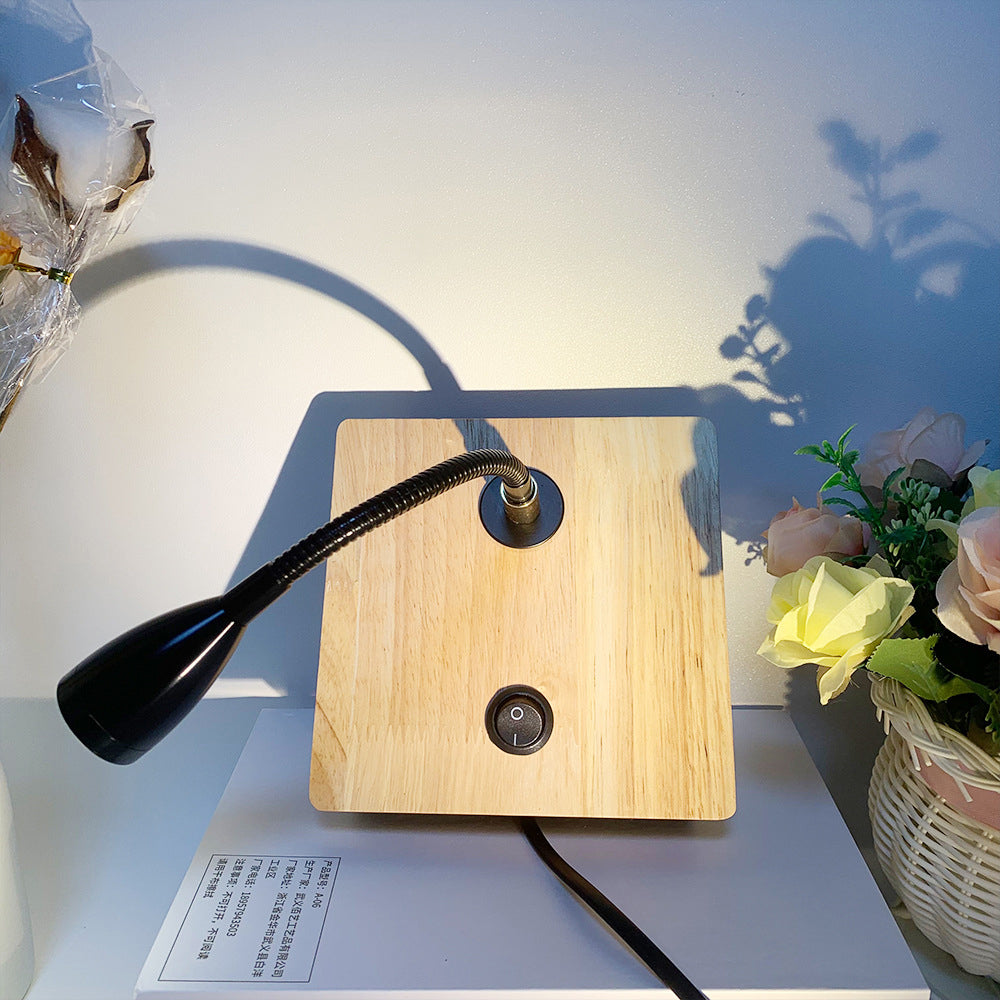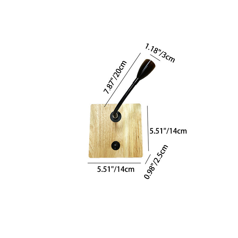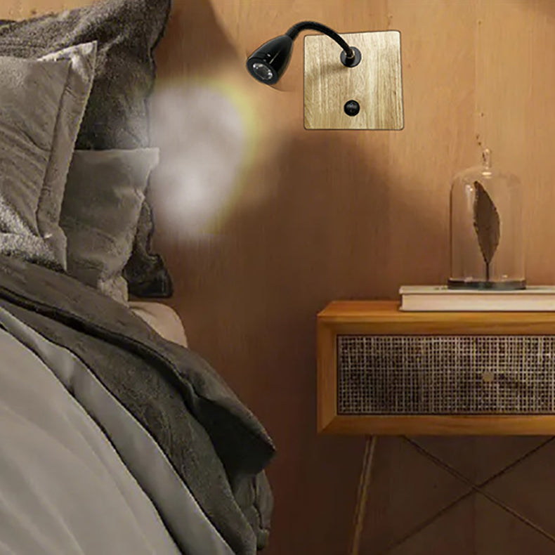 مصباح حائط LED مربع الشكل مصنوع من الحديد والألومنيوم والخشب بتصميم عصري بسيط لوضعه بجانب السرير