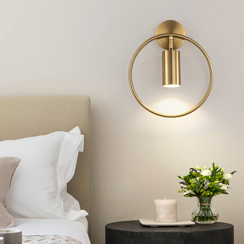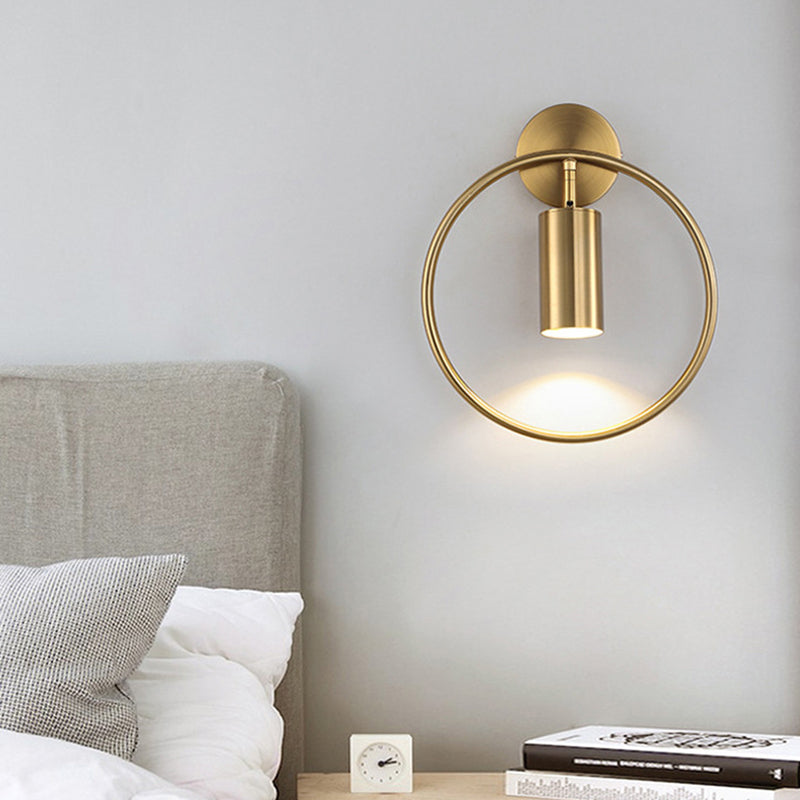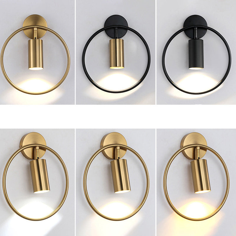 مصباح حائطي بسيط عصري على شكل أسطوانة دائرية من الحديد، مزود بإضاءة واحدة، مناسب لجانب السرير