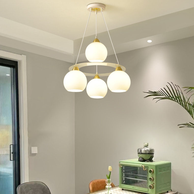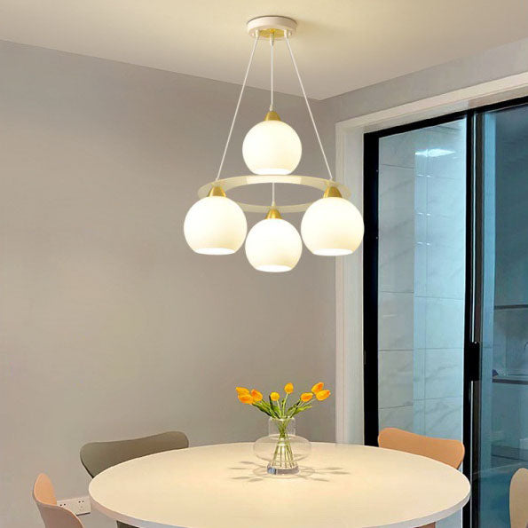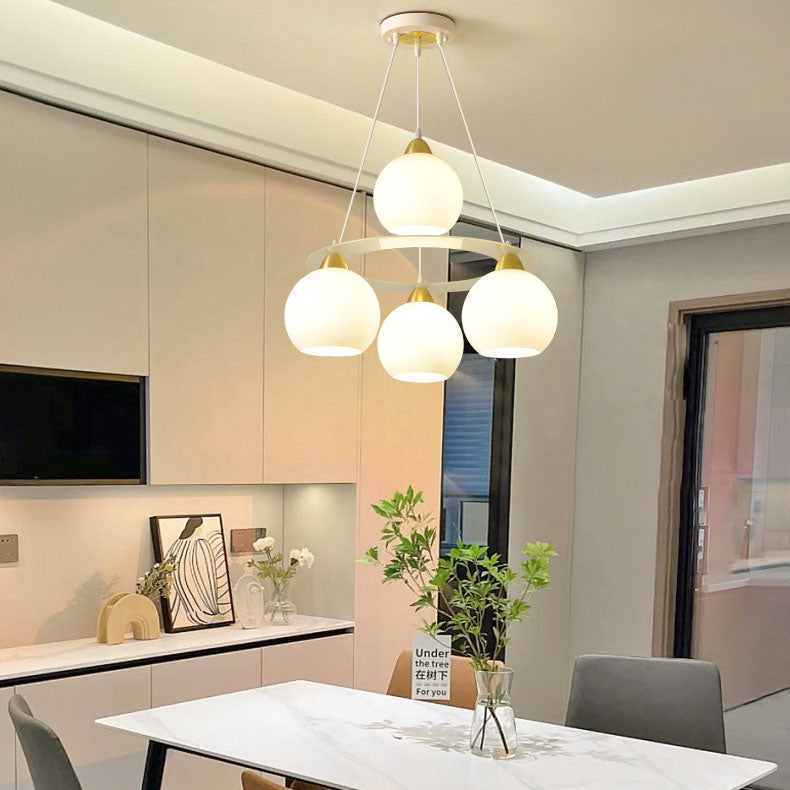 ثريا عصرية بسيطة من الحديد والزجاج بأربعة مصابيح لغرفة الطعام