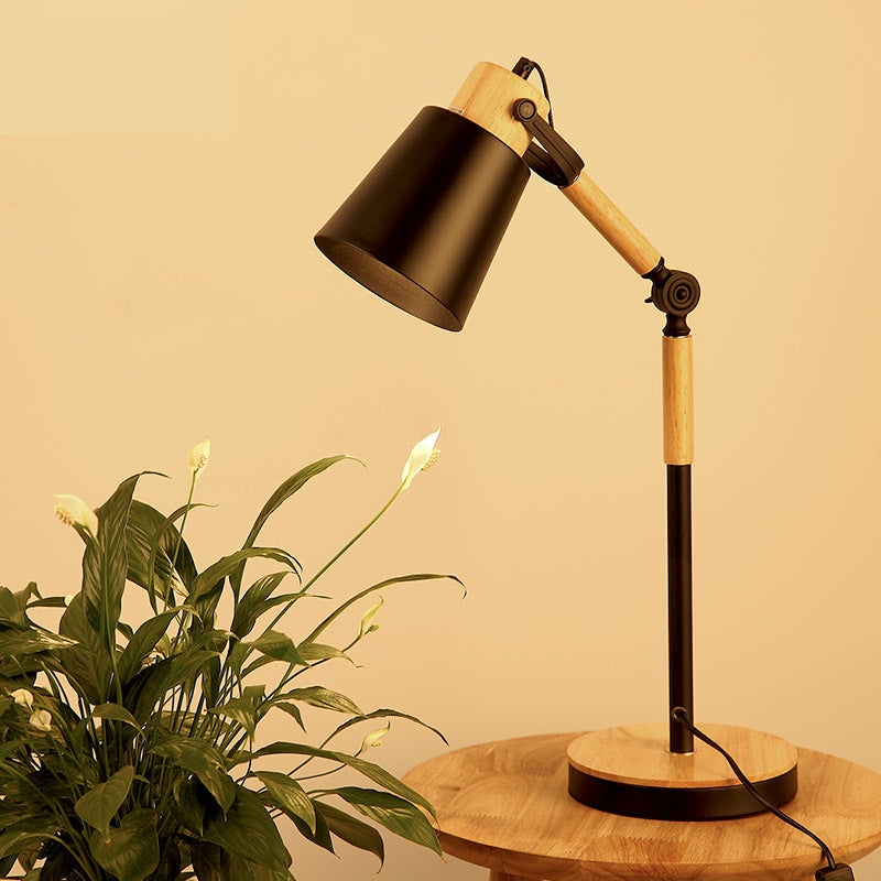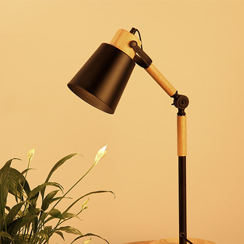 Modern Simplicity Trapezoid Bendable Iron Lampshade Solid Wood Base 1 - Light Table Lamp For Bedroom