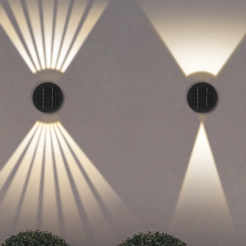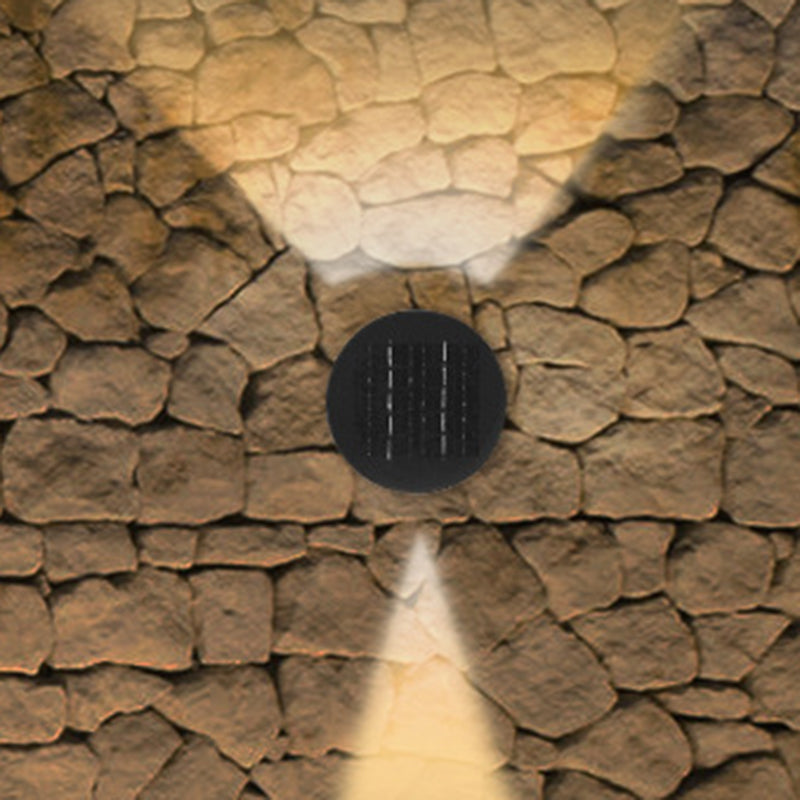 مصباح حائط خارجي دائري من الزجاج ABS قابل للتعديل ومضاد للماء يعمل بالطاقة الشمسية بتصميم بسيط وعصري لإضاءة المناظر الطبيعية للحديقة