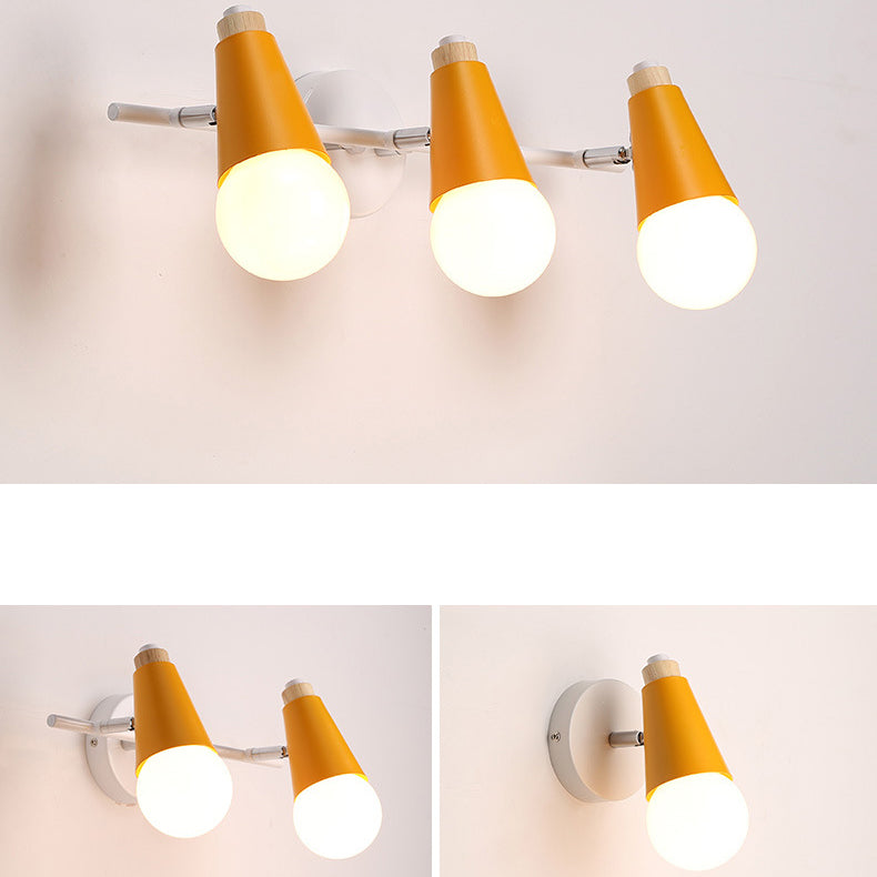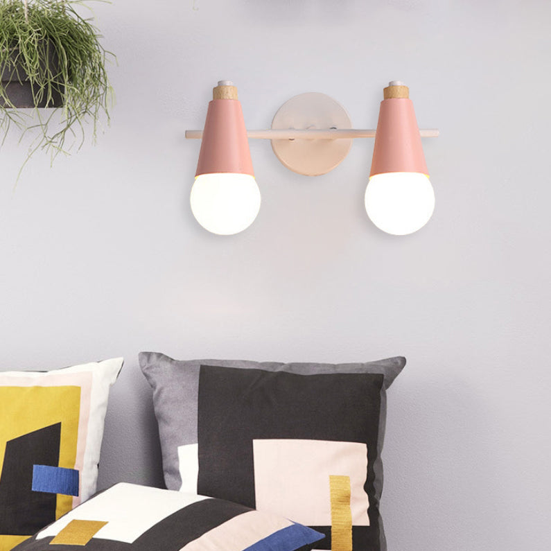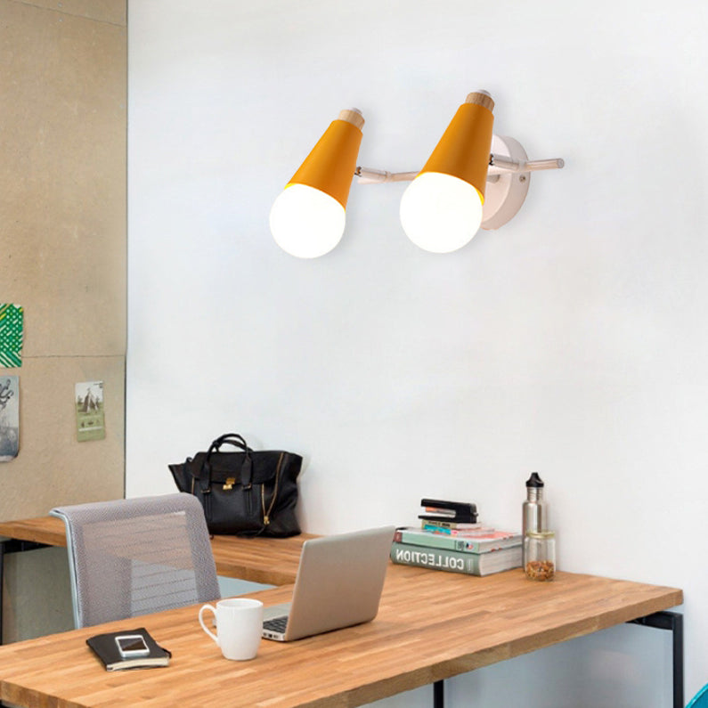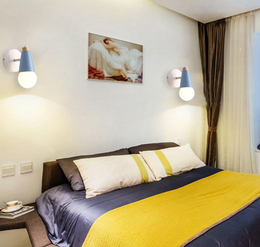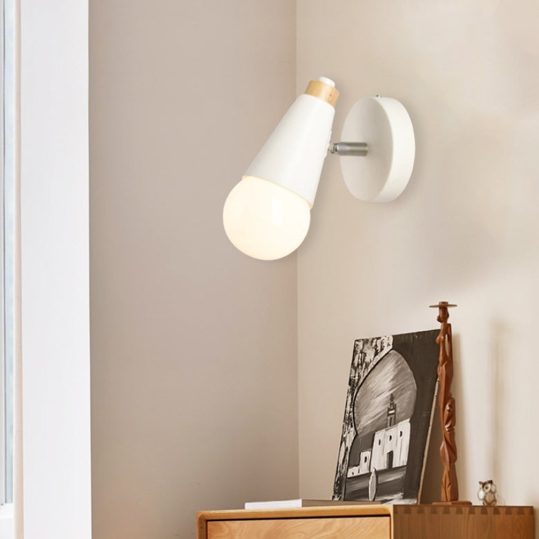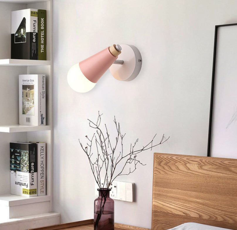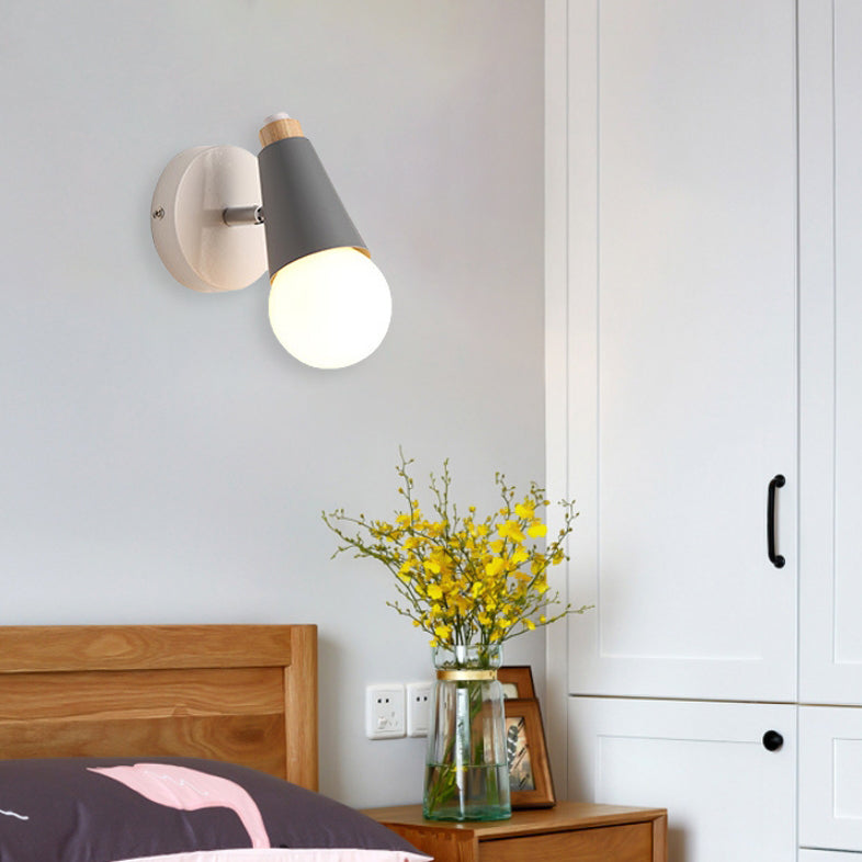 مصباح حائطي بتصميم مخروطي بسيط من الخشب والحديد، مزود بإضاءة 1/2/3، مناسب لجانب السرير