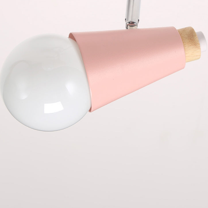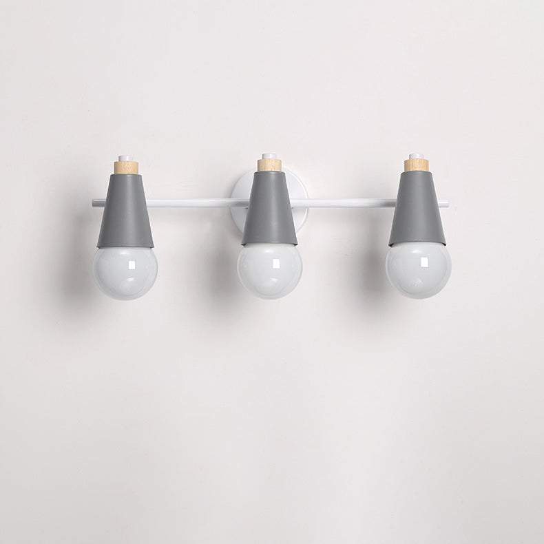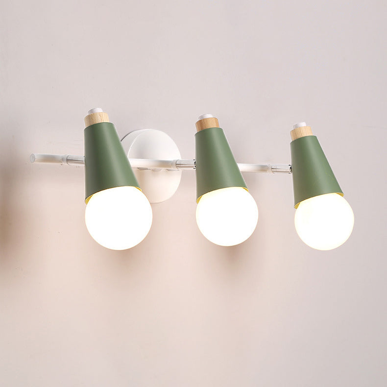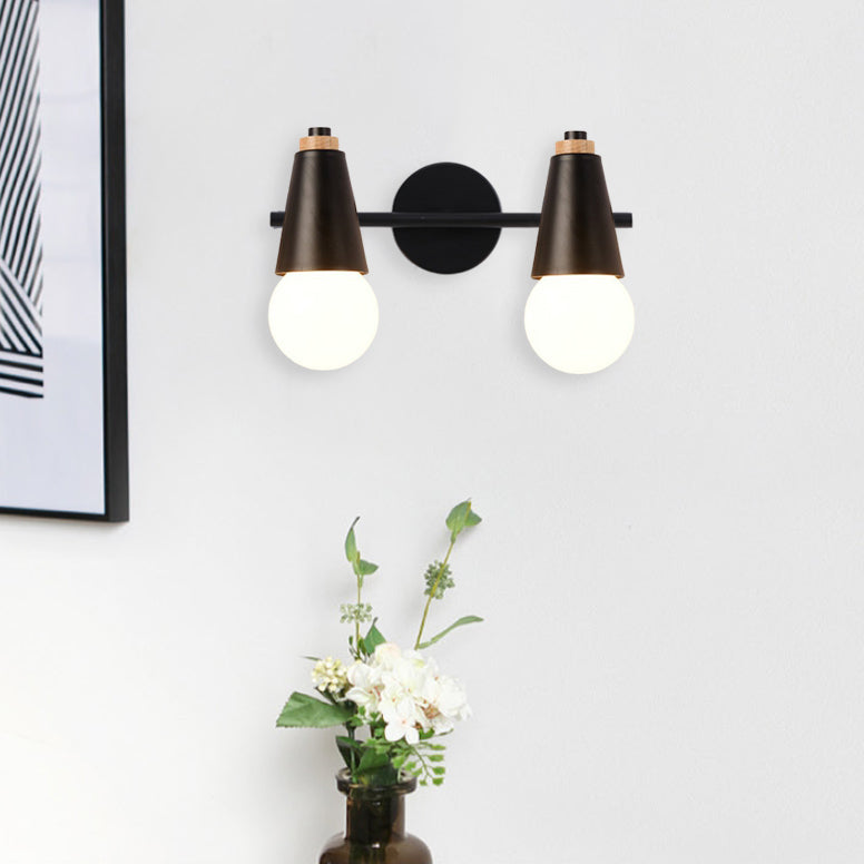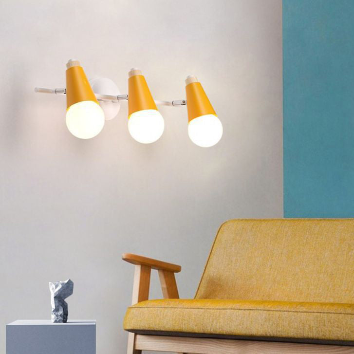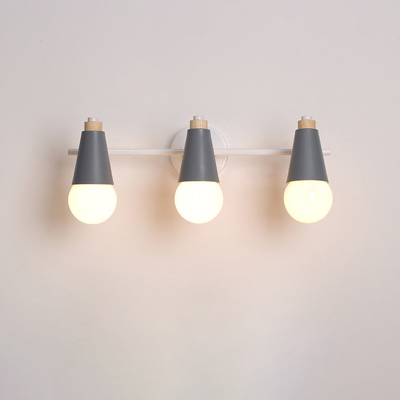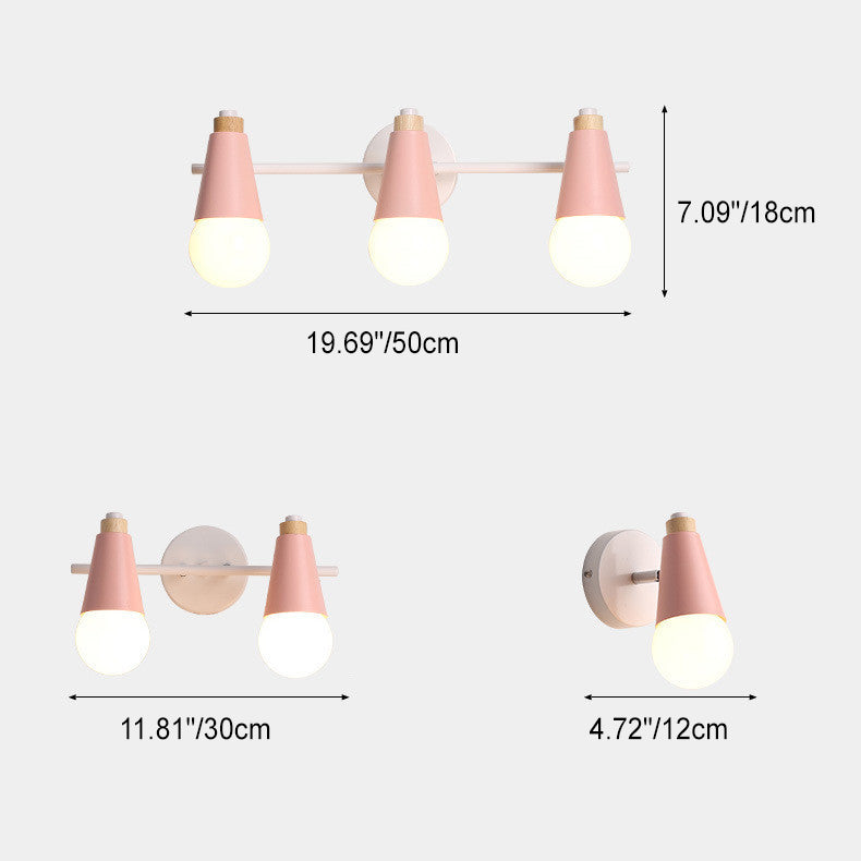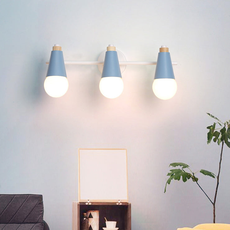 مصباح حائطي بتصميم مخروطي بسيط من الخشب والحديد، مزود بإضاءة 1/2/3، مناسب لجانب السرير