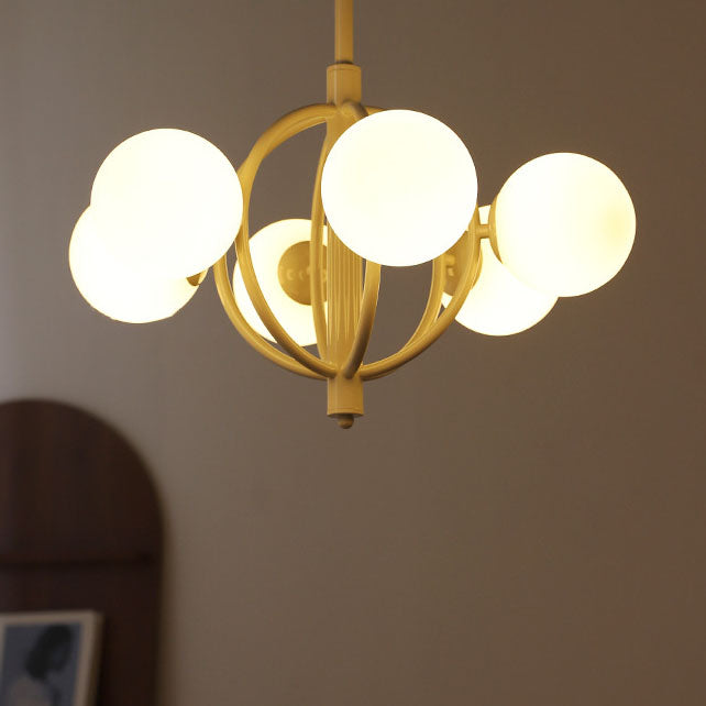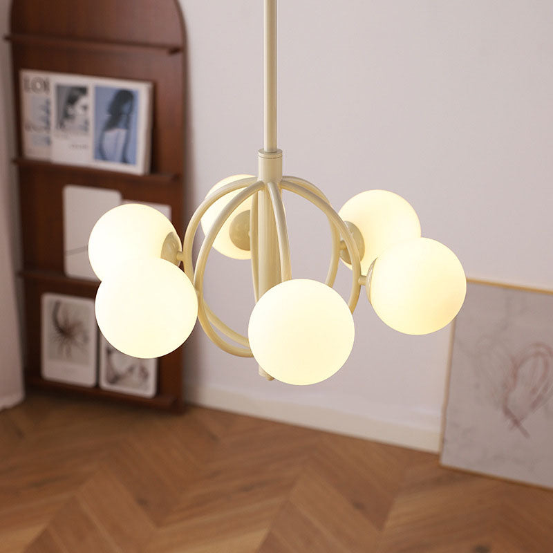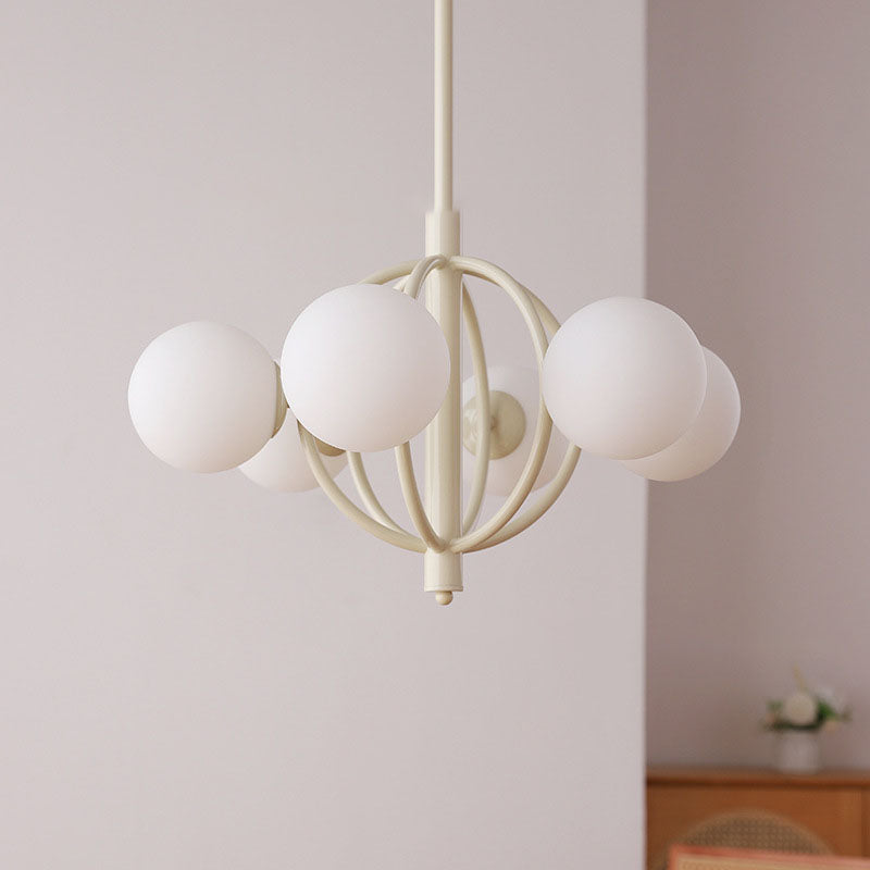 ثريا زجاجية حديدية بتصميم انتقالي حديث بستة مصابيح لغرفة المعيشة