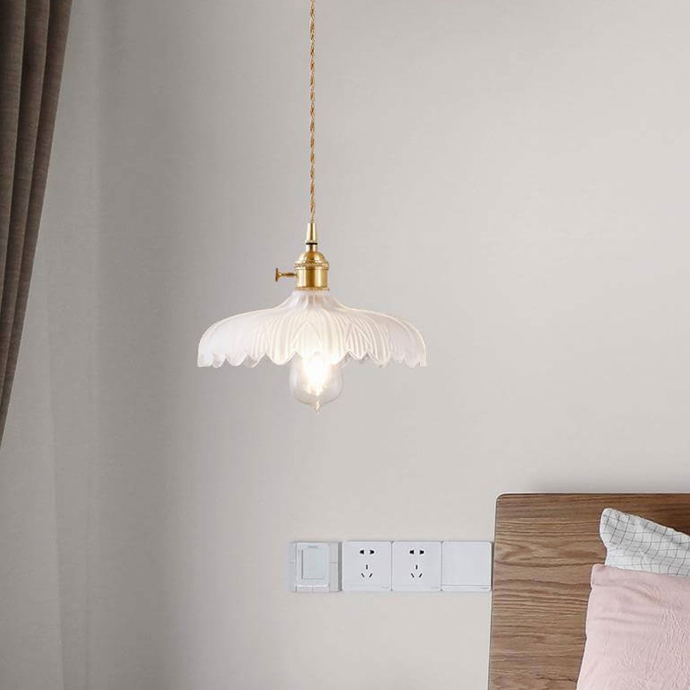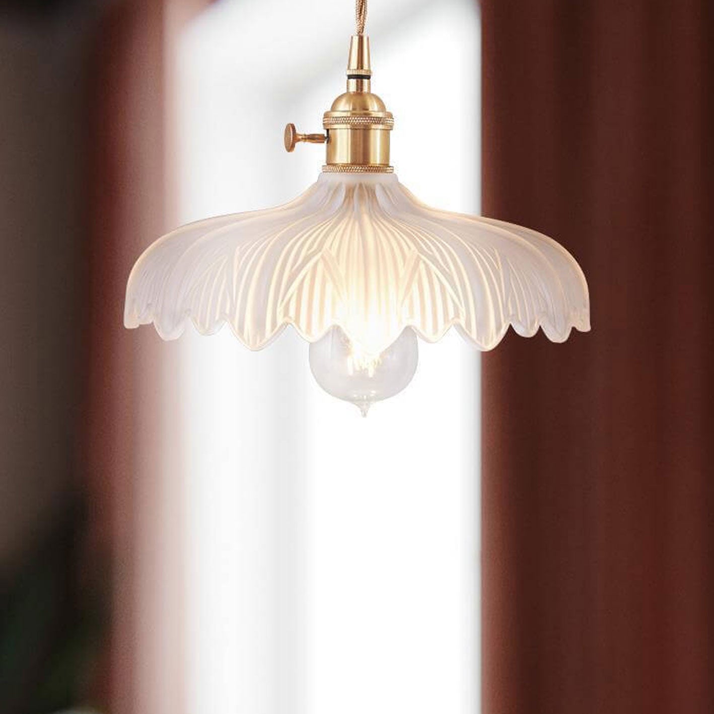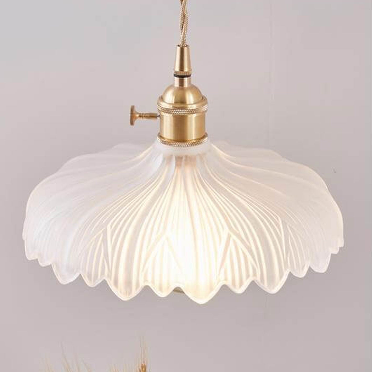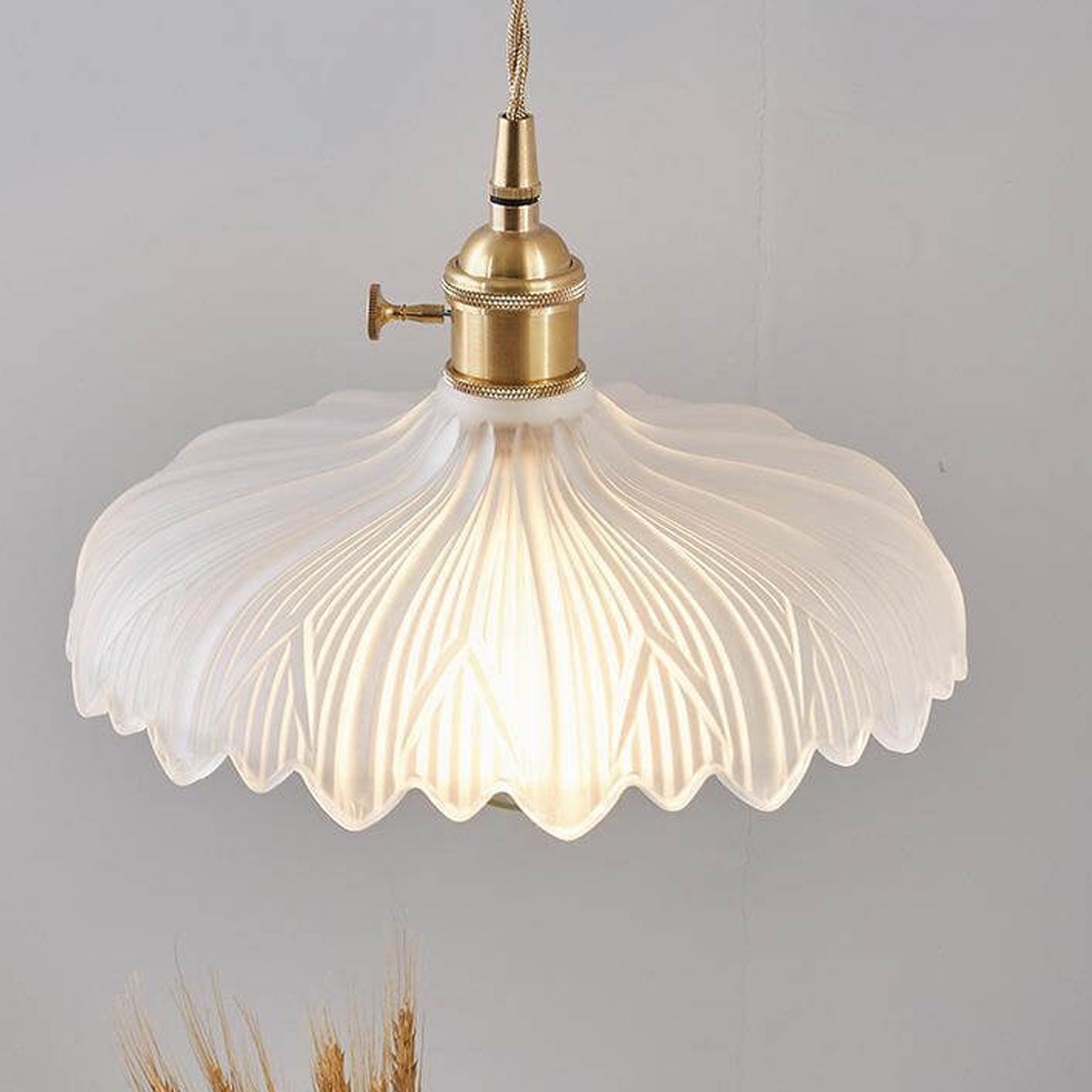 مصباح معلق نورديك منحوت على شكل بتلات زجاجية وقبة نحاسية، مزود بمصباح واحد