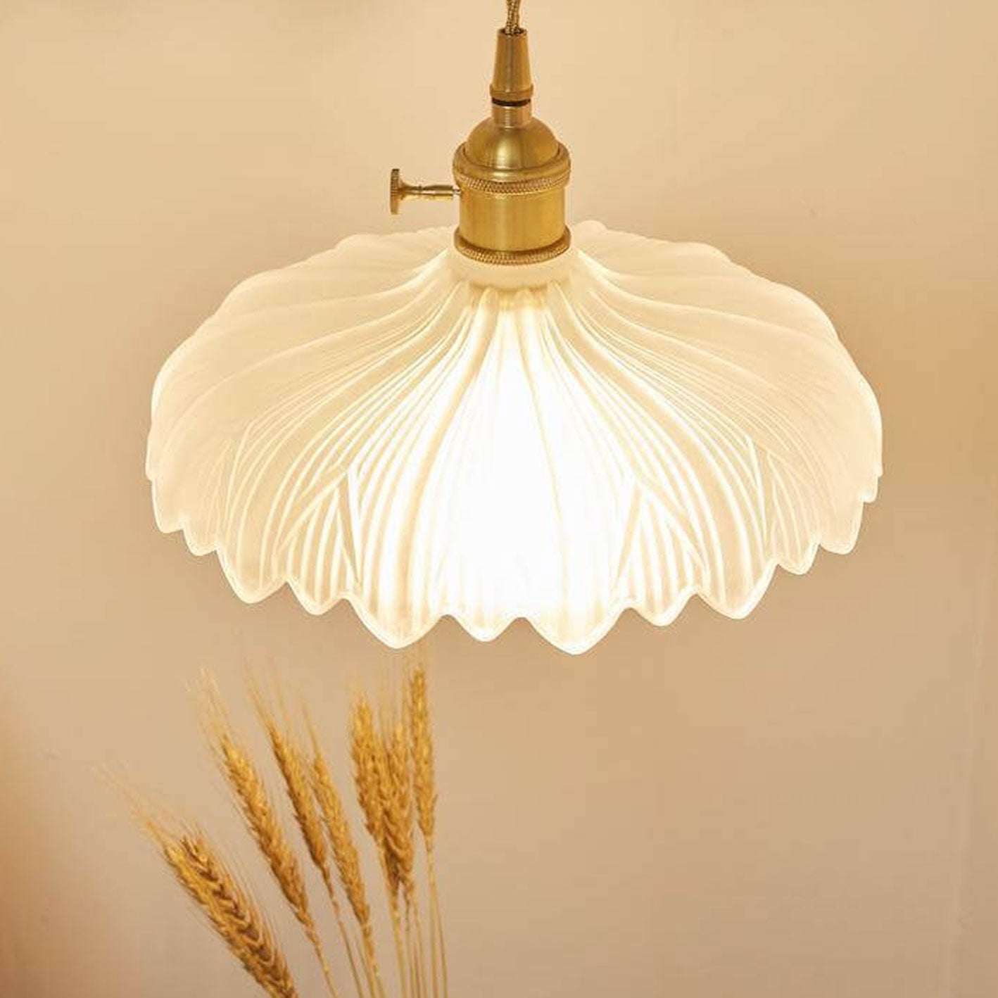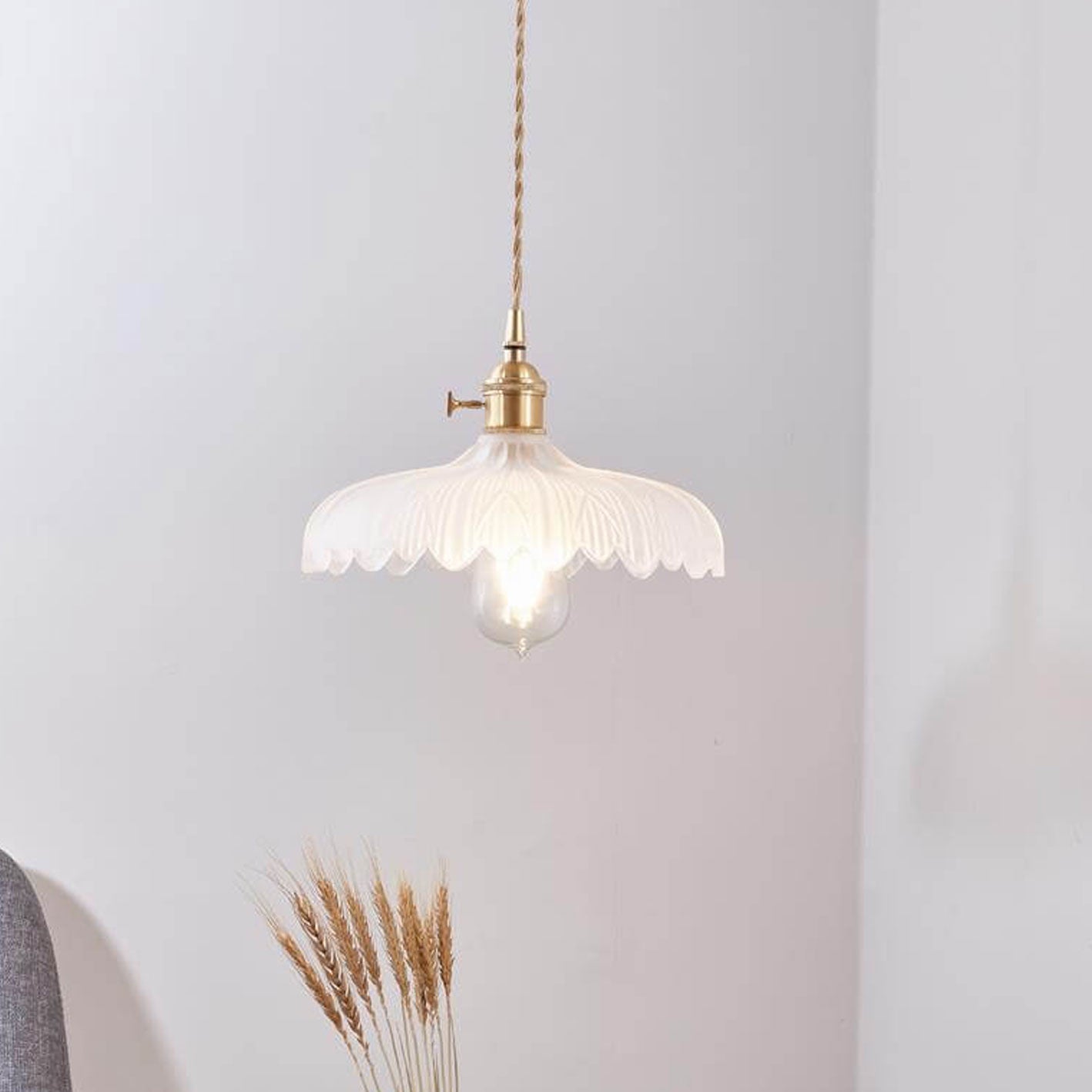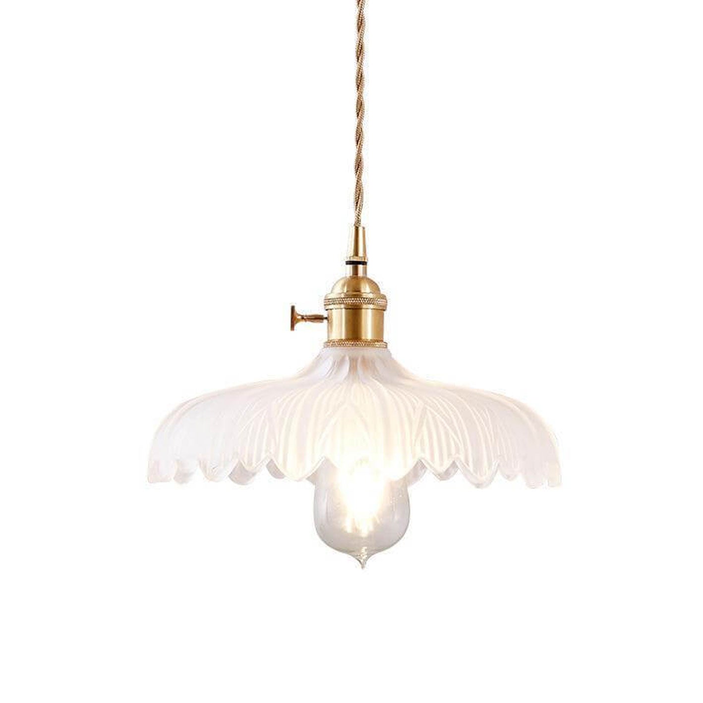 مصباح معلق نورديك منحوت على شكل بتلات زجاجية وقبة نحاسية، مزود بمصباح واحد