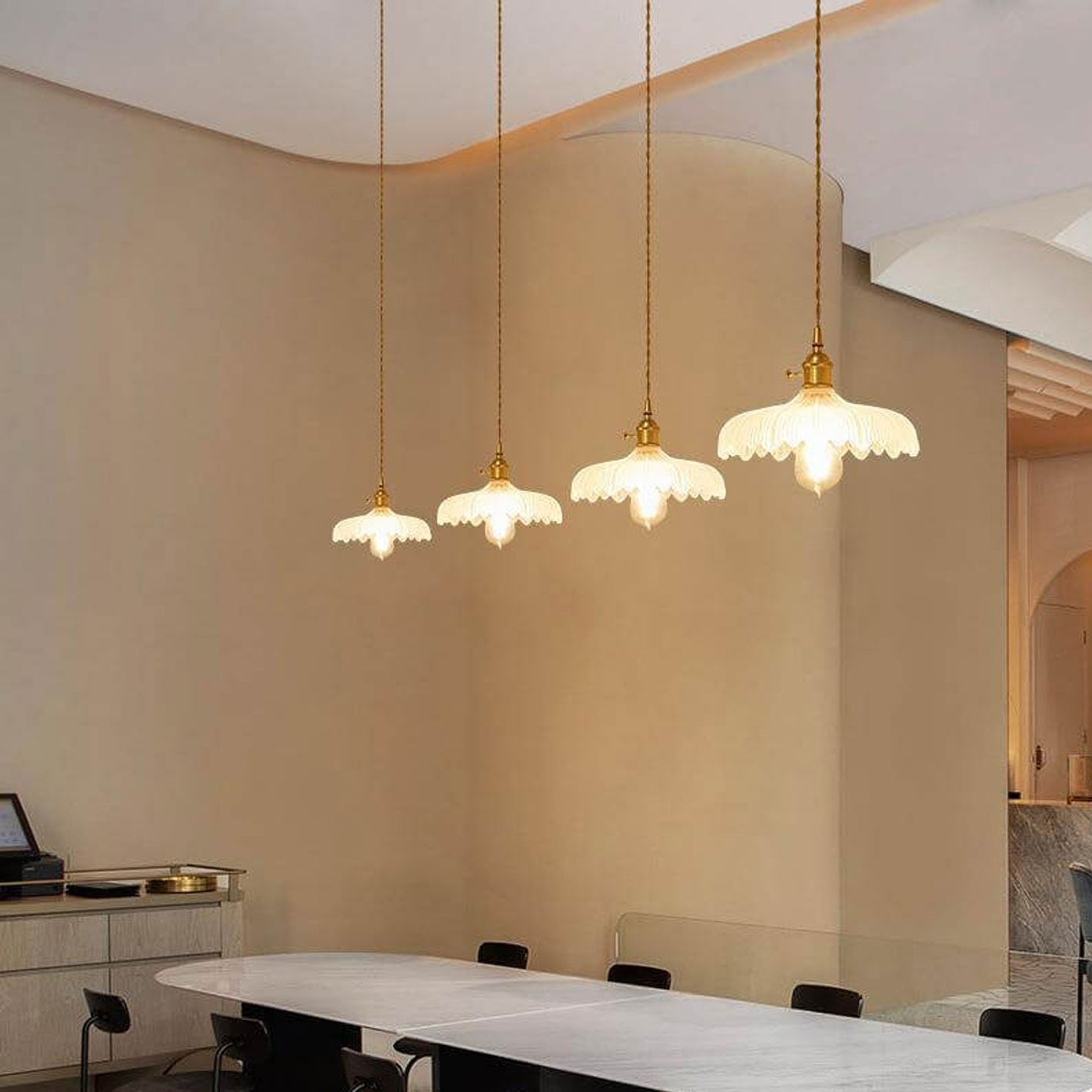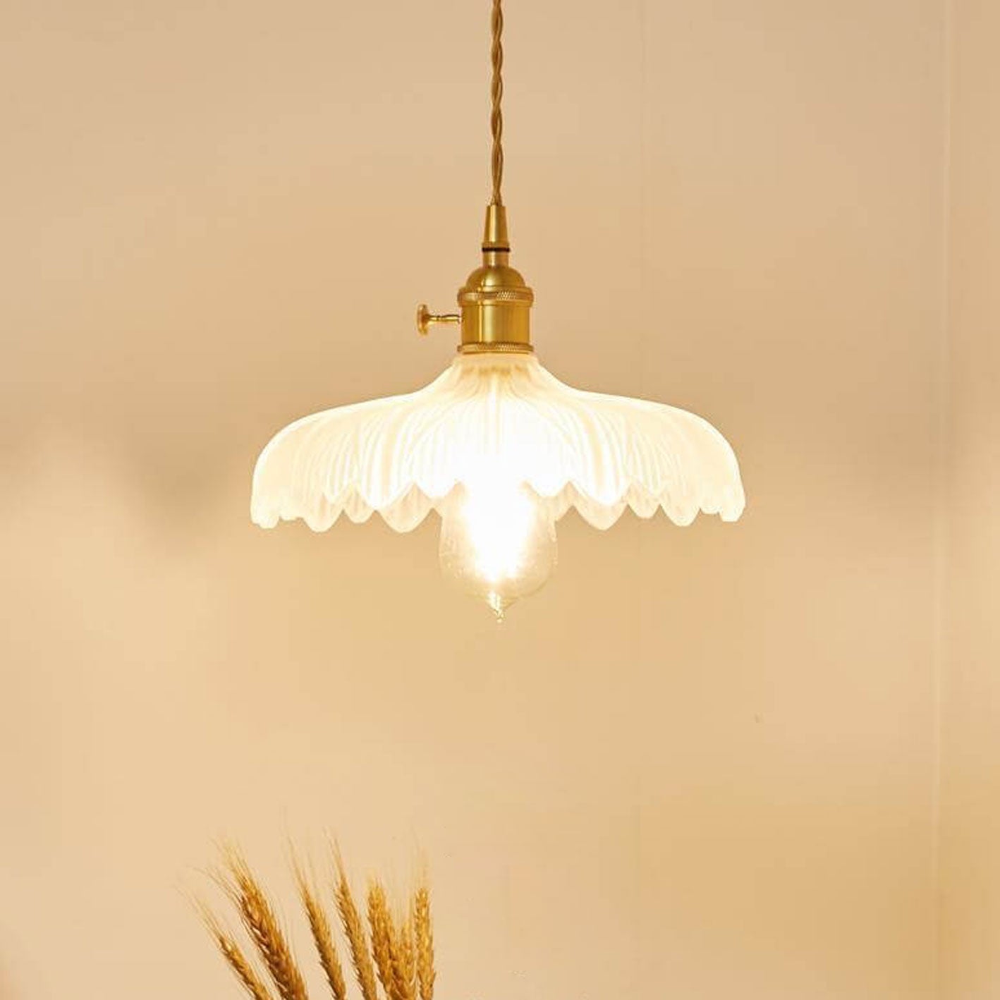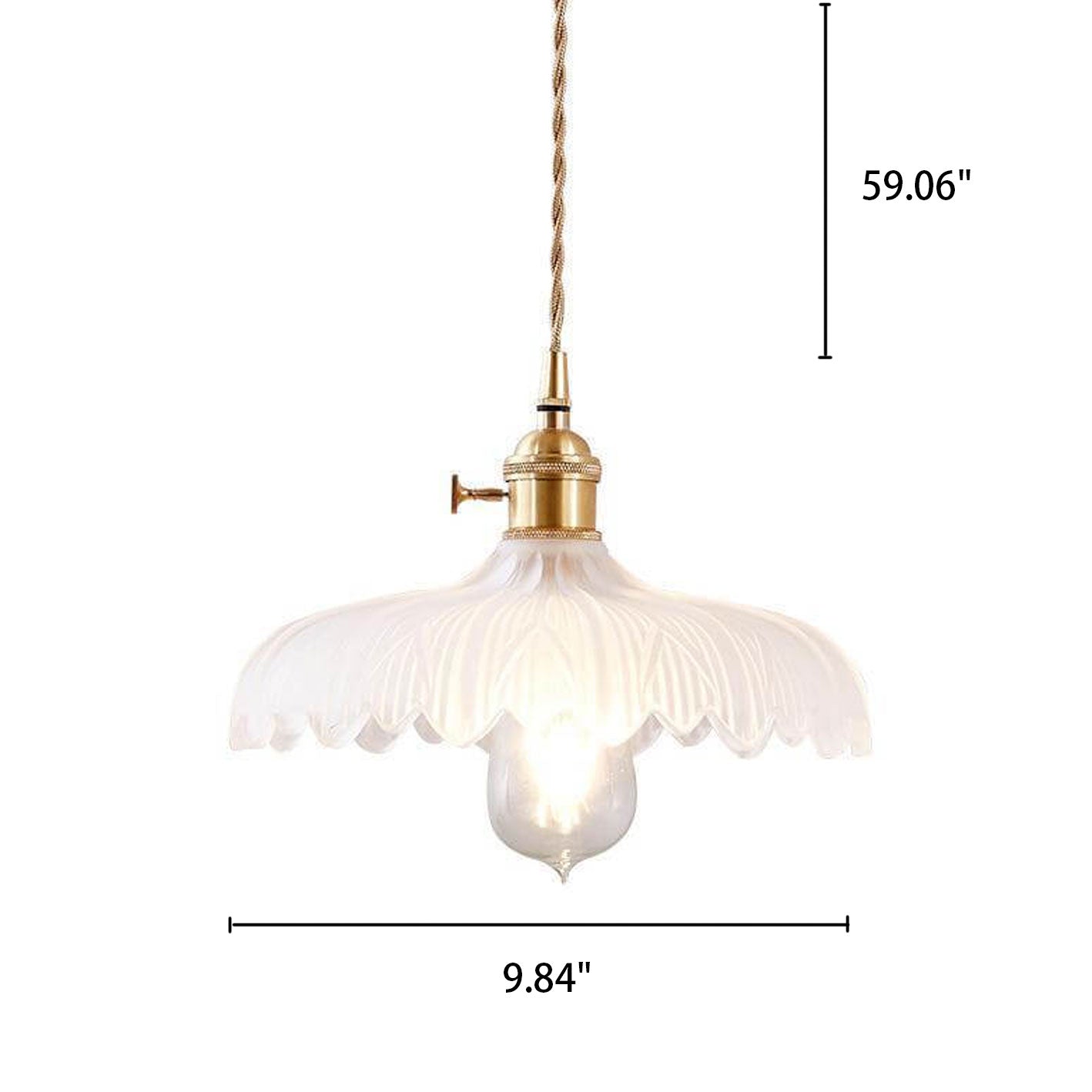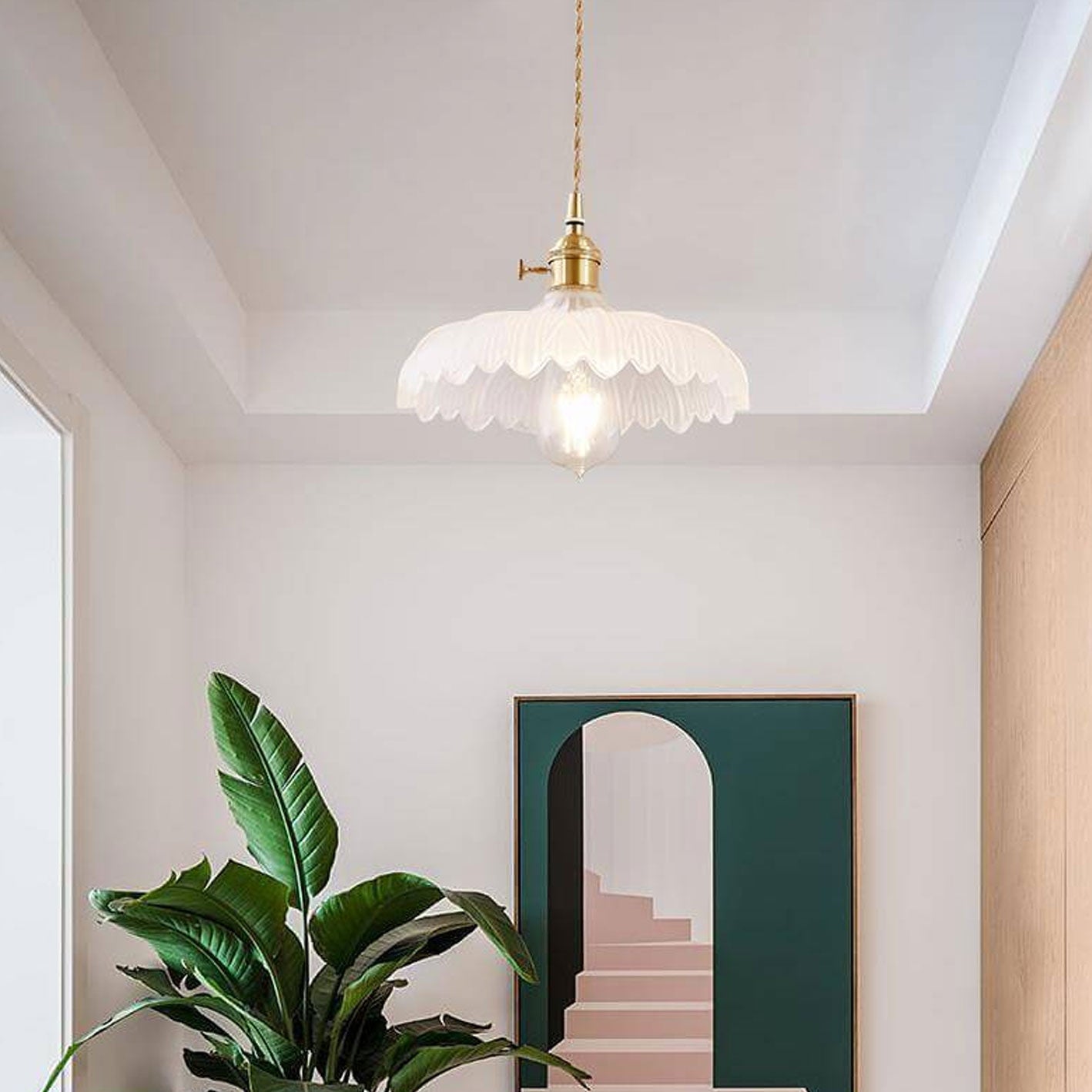 مصباح معلق نورديك منحوت على شكل بتلات زجاجية وقبة نحاسية، مزود بمصباح واحد