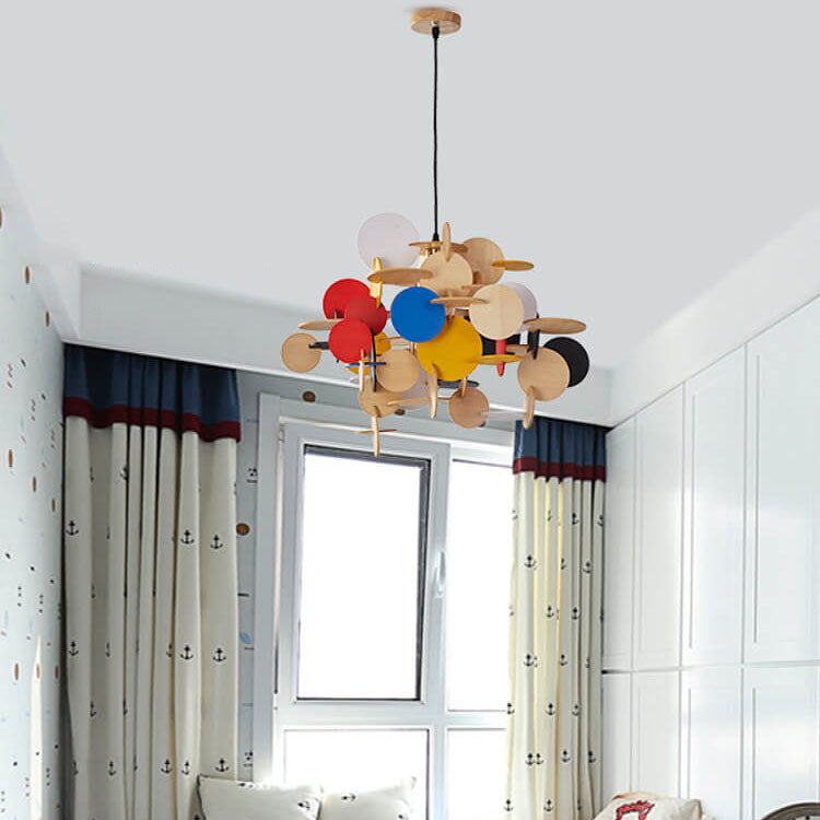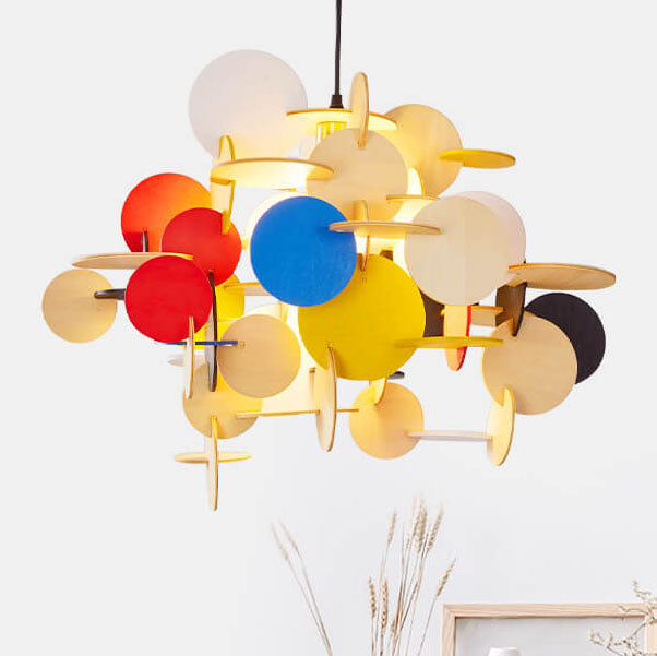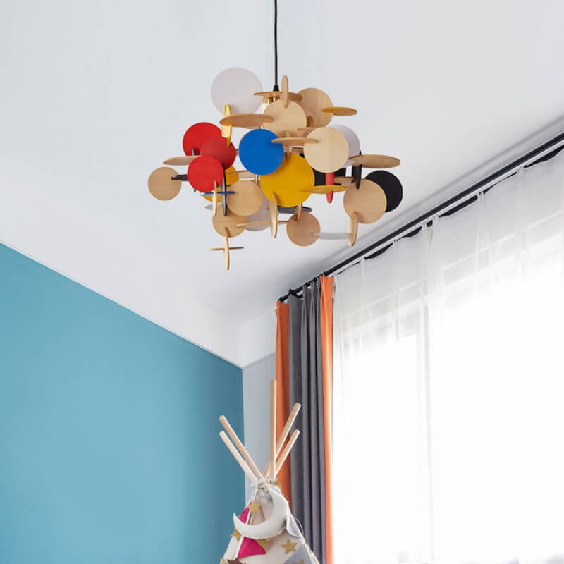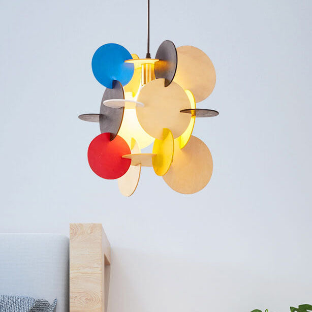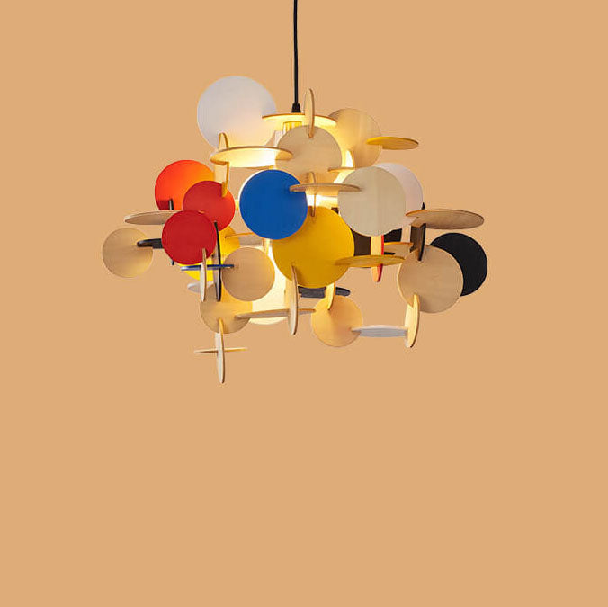 مصباح معلق دائري من الخشب الصلب بتصميم نورديك إبداعي، مزود بمصباح واحد