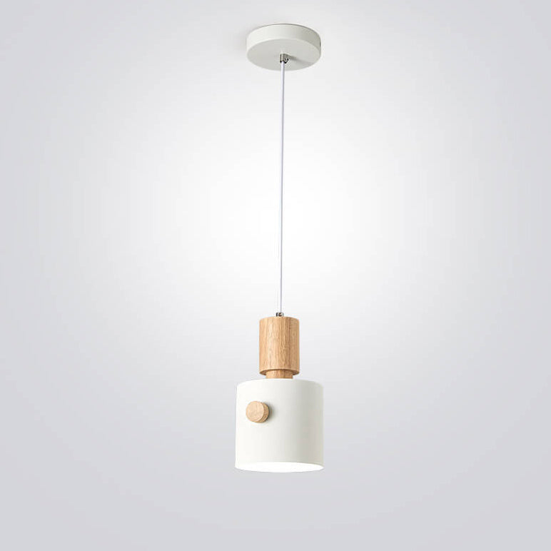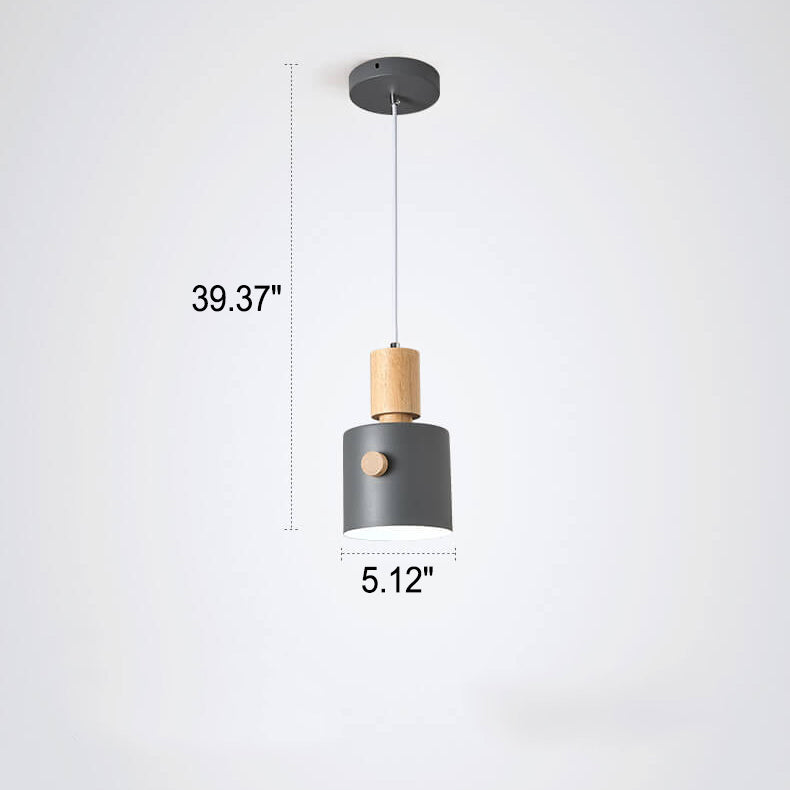 مصباح معلق أسطواني نورديك بمقبض خشبي من الماكارون، مصباح واحد