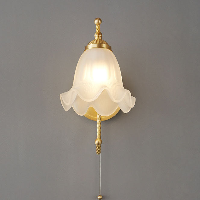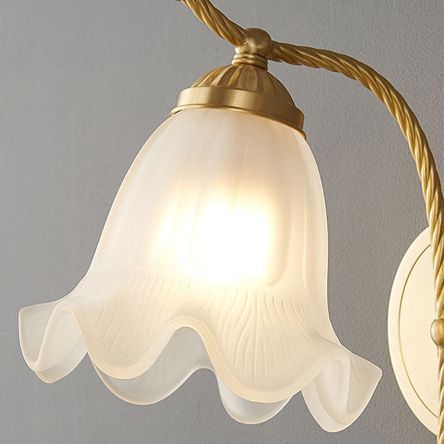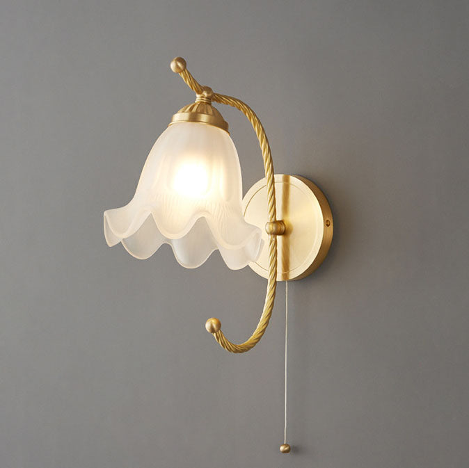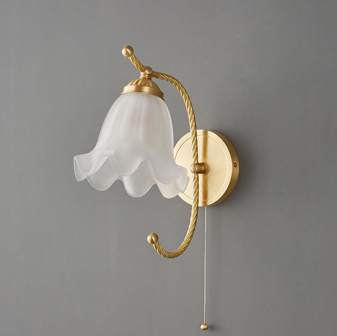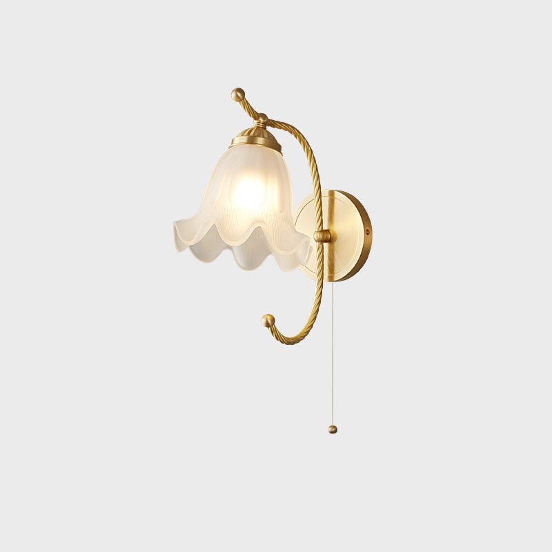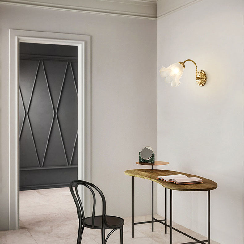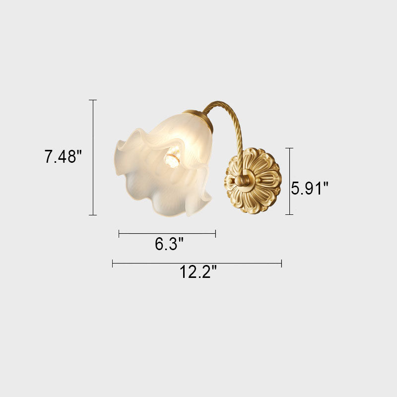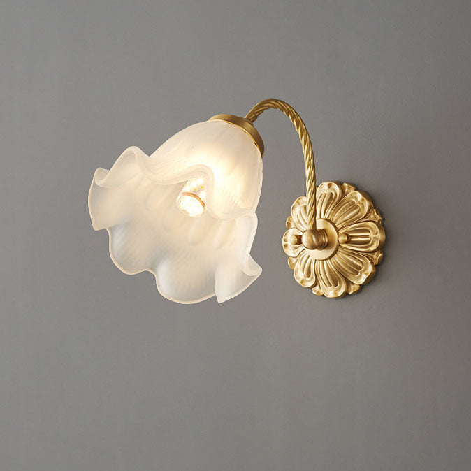 مصباح حائط نورديك كامل من النحاس والزجاج على شكل زهرة، مزود بمصباح واحد