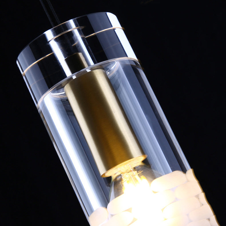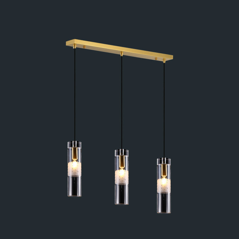 ثريا نورديك لايت الفاخرة ذات العمود الكريستالي النحاسي بإضاءة جزيرة 1/3