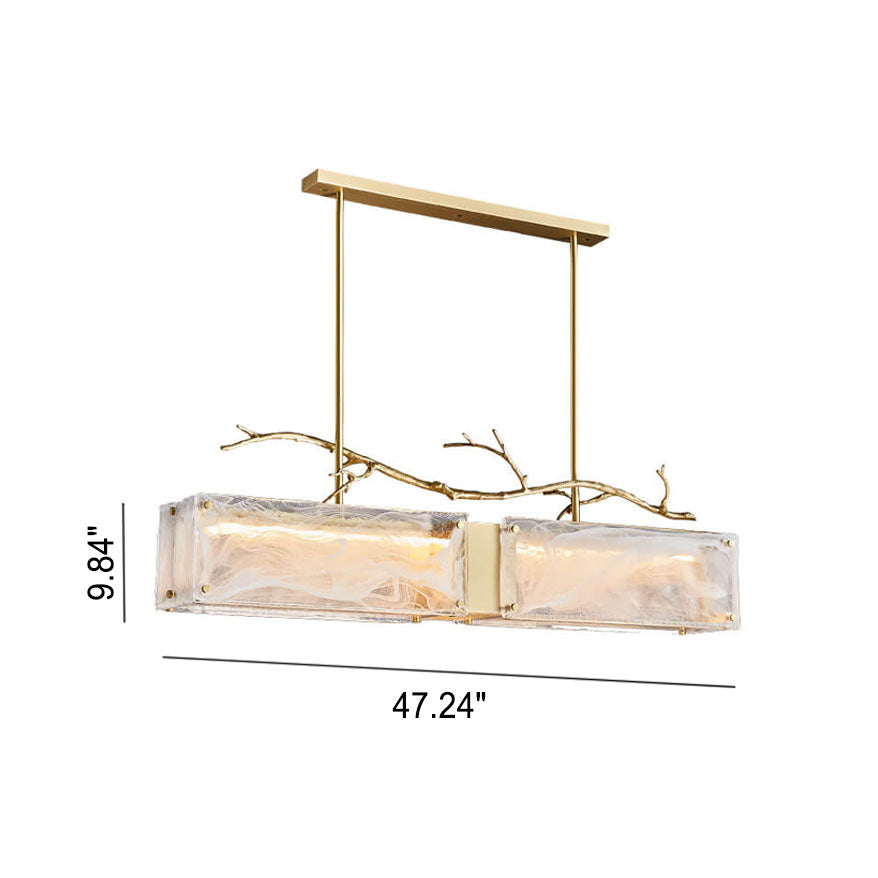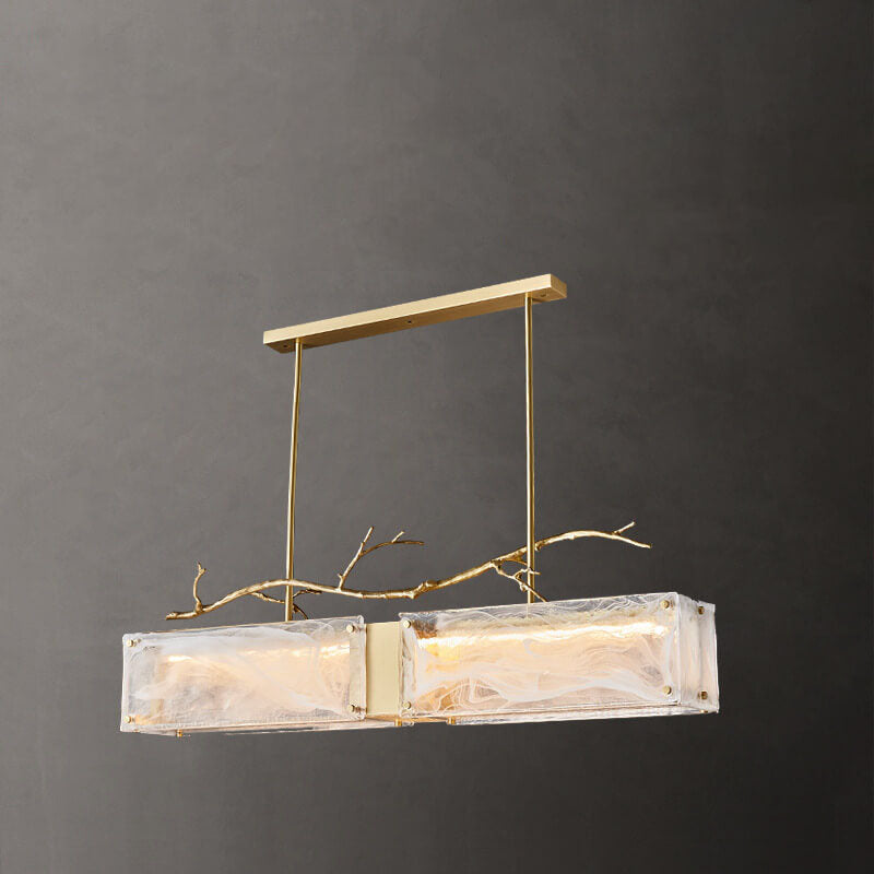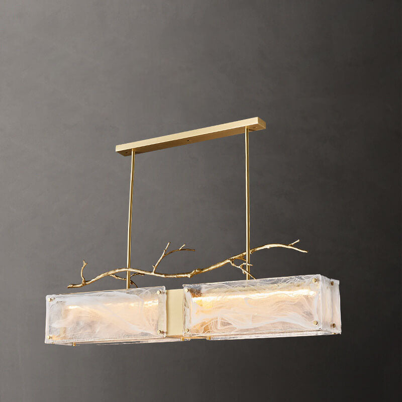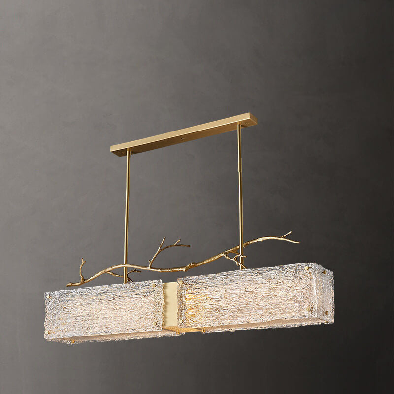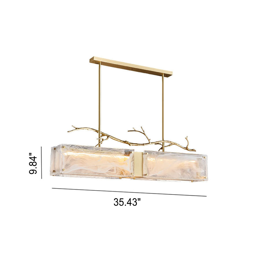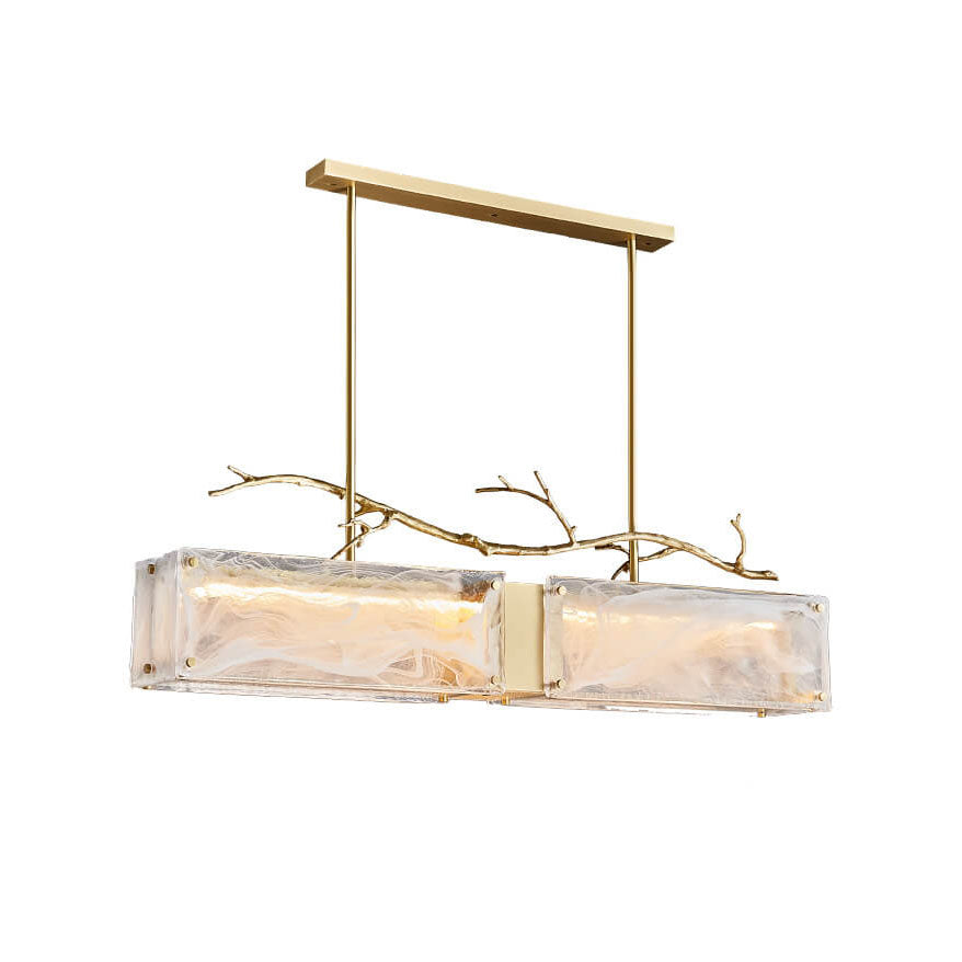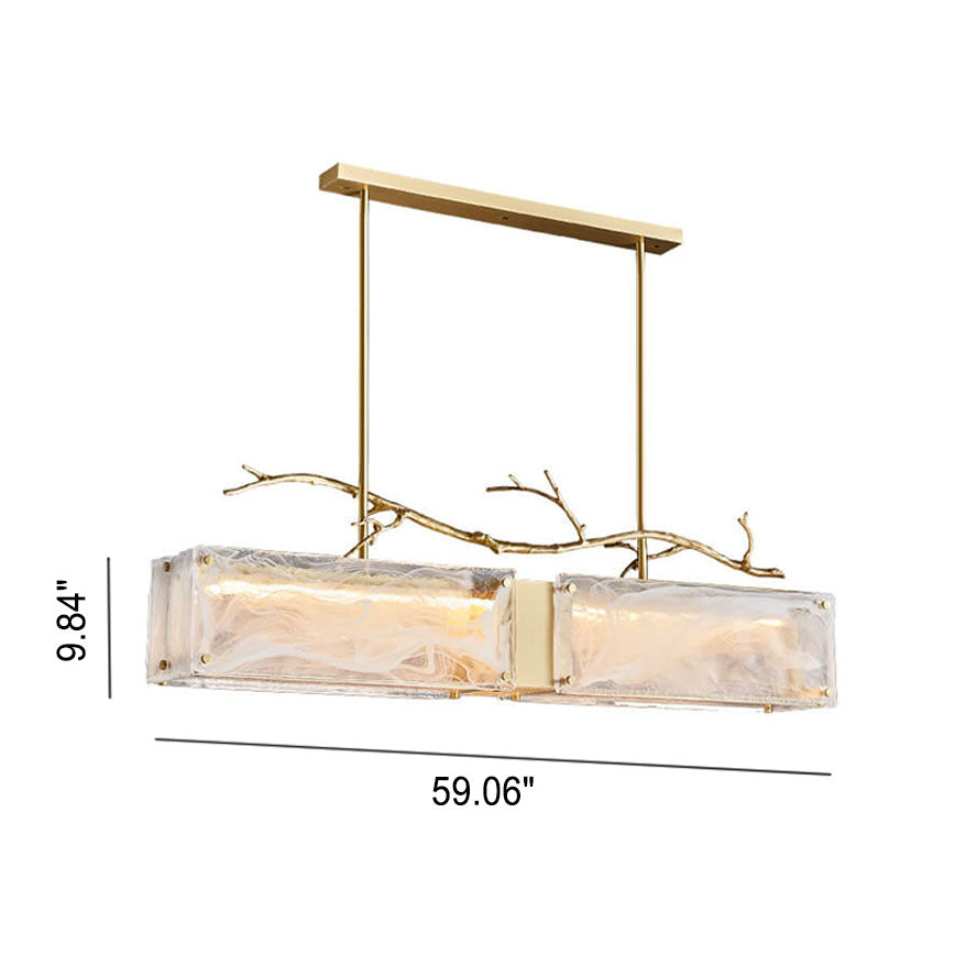 ثريا جزيرة LED زجاجية مستطيلة فاخرة من Nordic Light مصنوعة من النحاس بالكامل