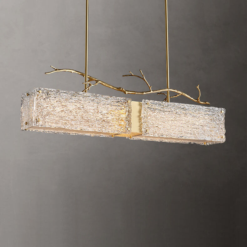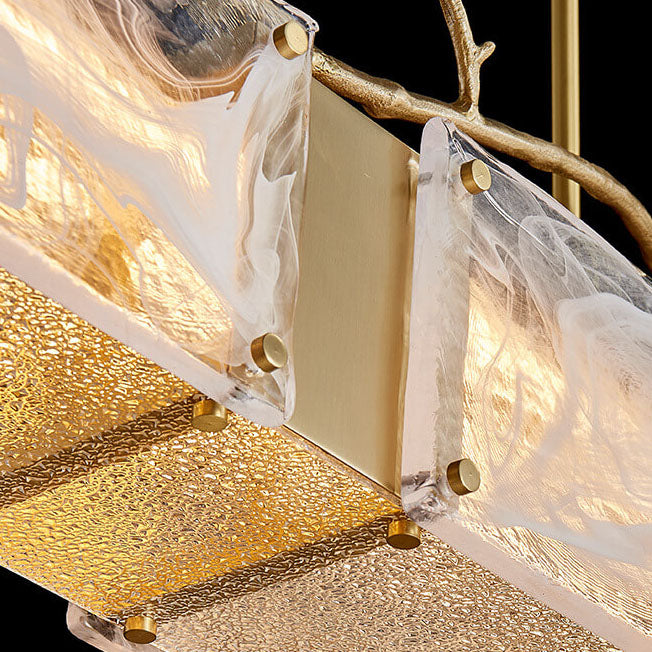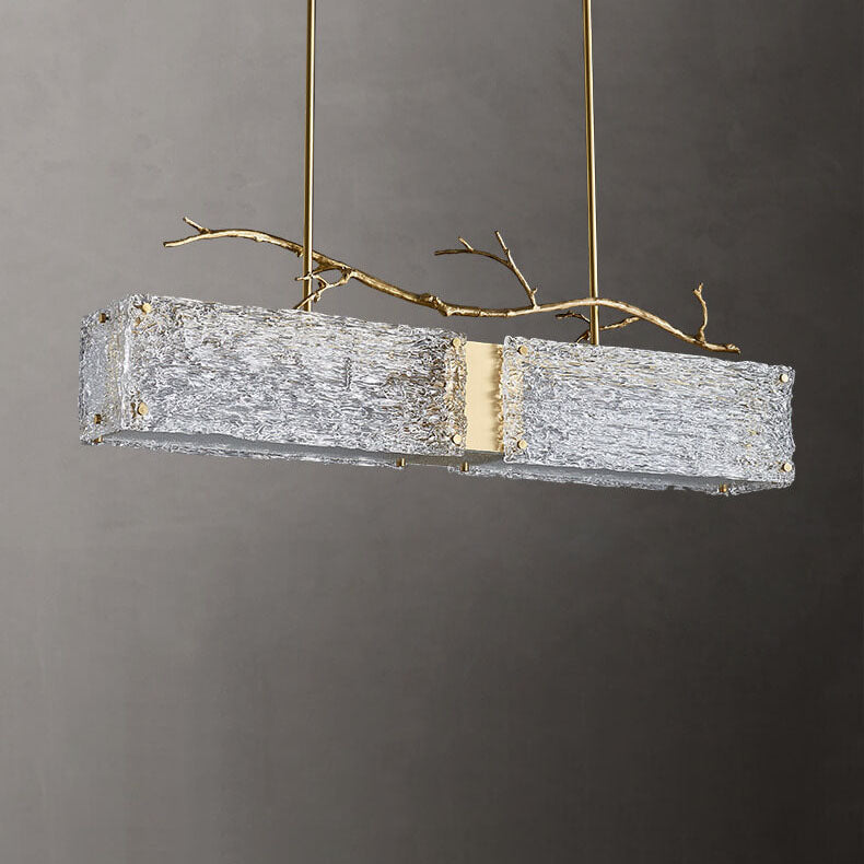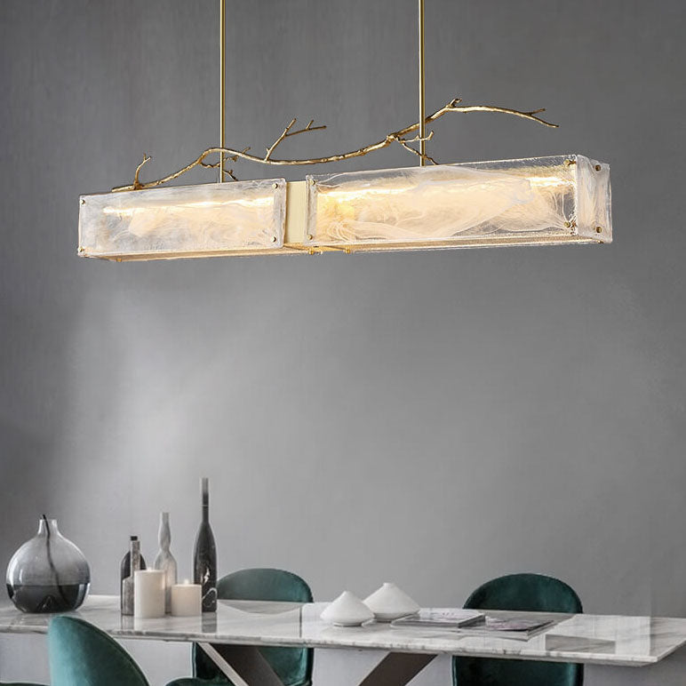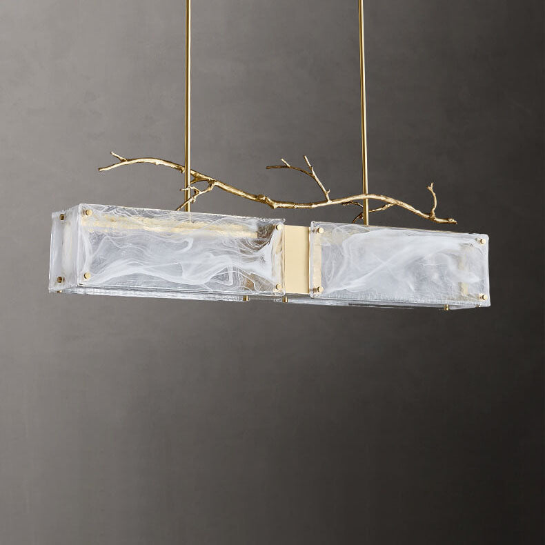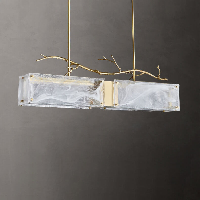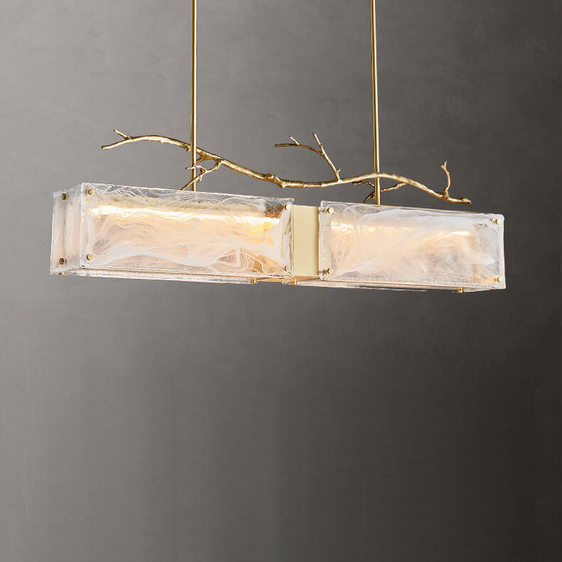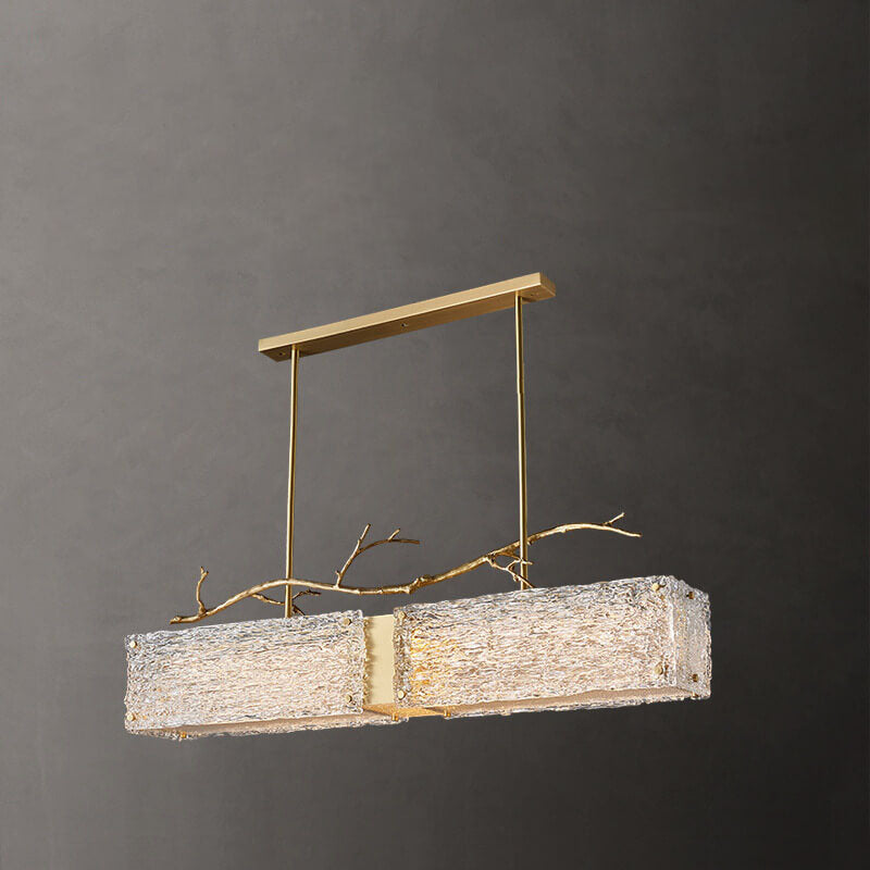 ثريا جزيرة LED زجاجية مستطيلة فاخرة من Nordic Light مصنوعة من النحاس بالكامل